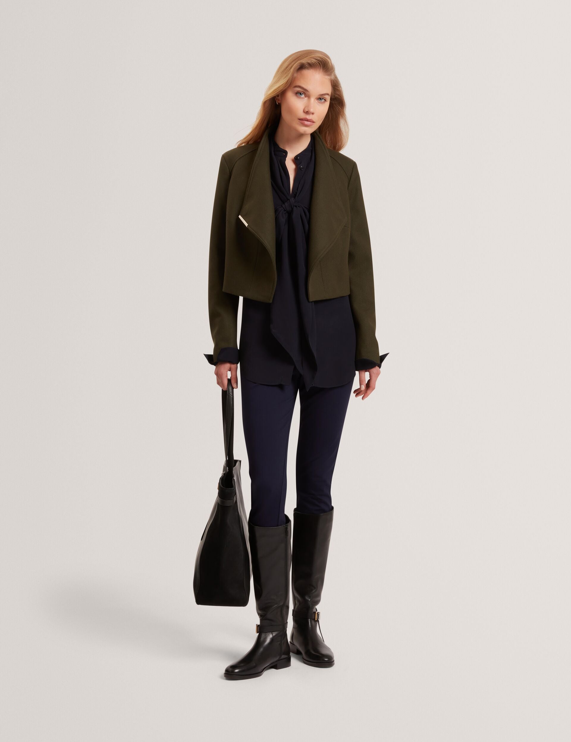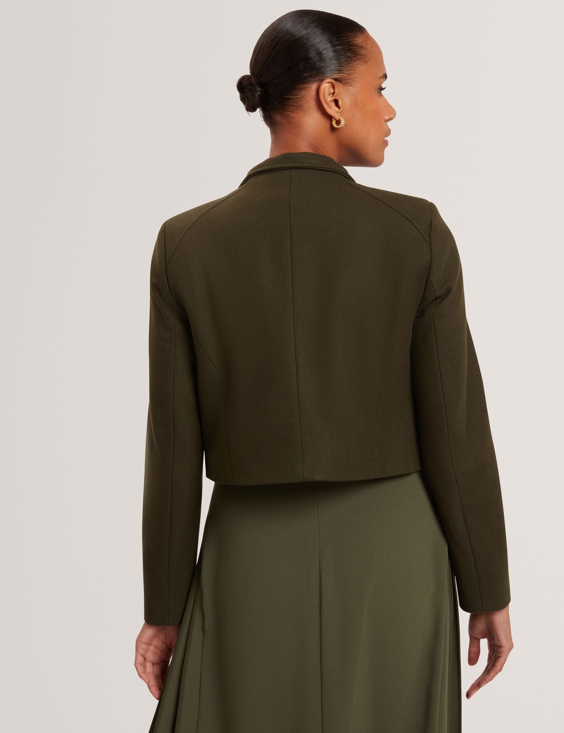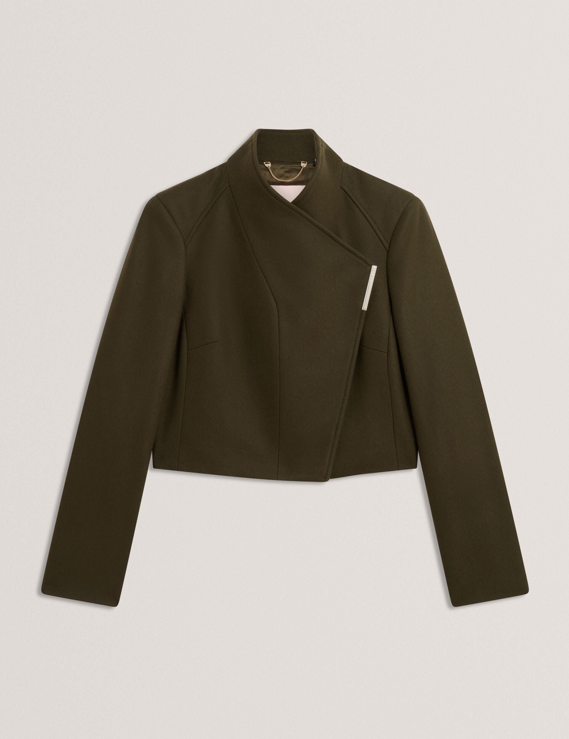 We'll keep it short, just like the ROSECEE jacket does. Designed in our signature wrap silhouette but in a shorter cropped length, it's the refined layer your transitional wardrobe needs. The luxurious Italian wool blend gives it the perfect amount of warmth, and the funnel neckline maintains those clean lines.