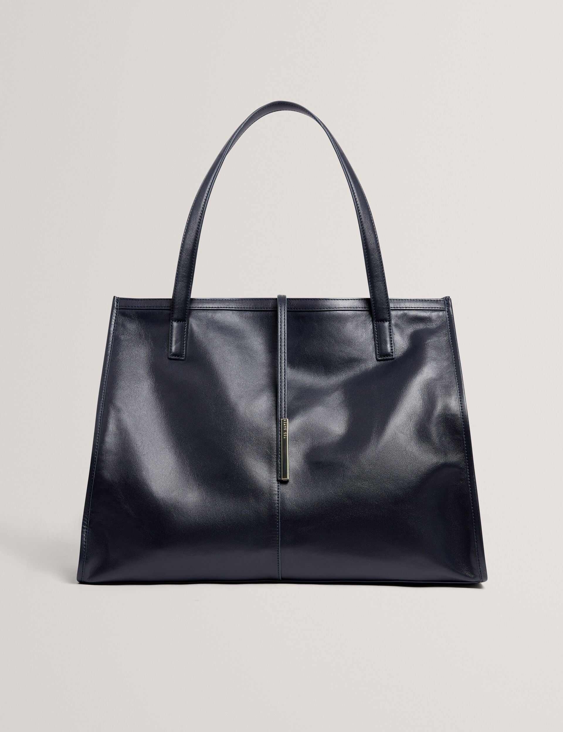 The RYLANN tote bag blends relaxed structure with refined detail. Crafted from soft leather and finished with a sleek metal bar accent, it offers generous space and laid-back luxury for everyday ease.