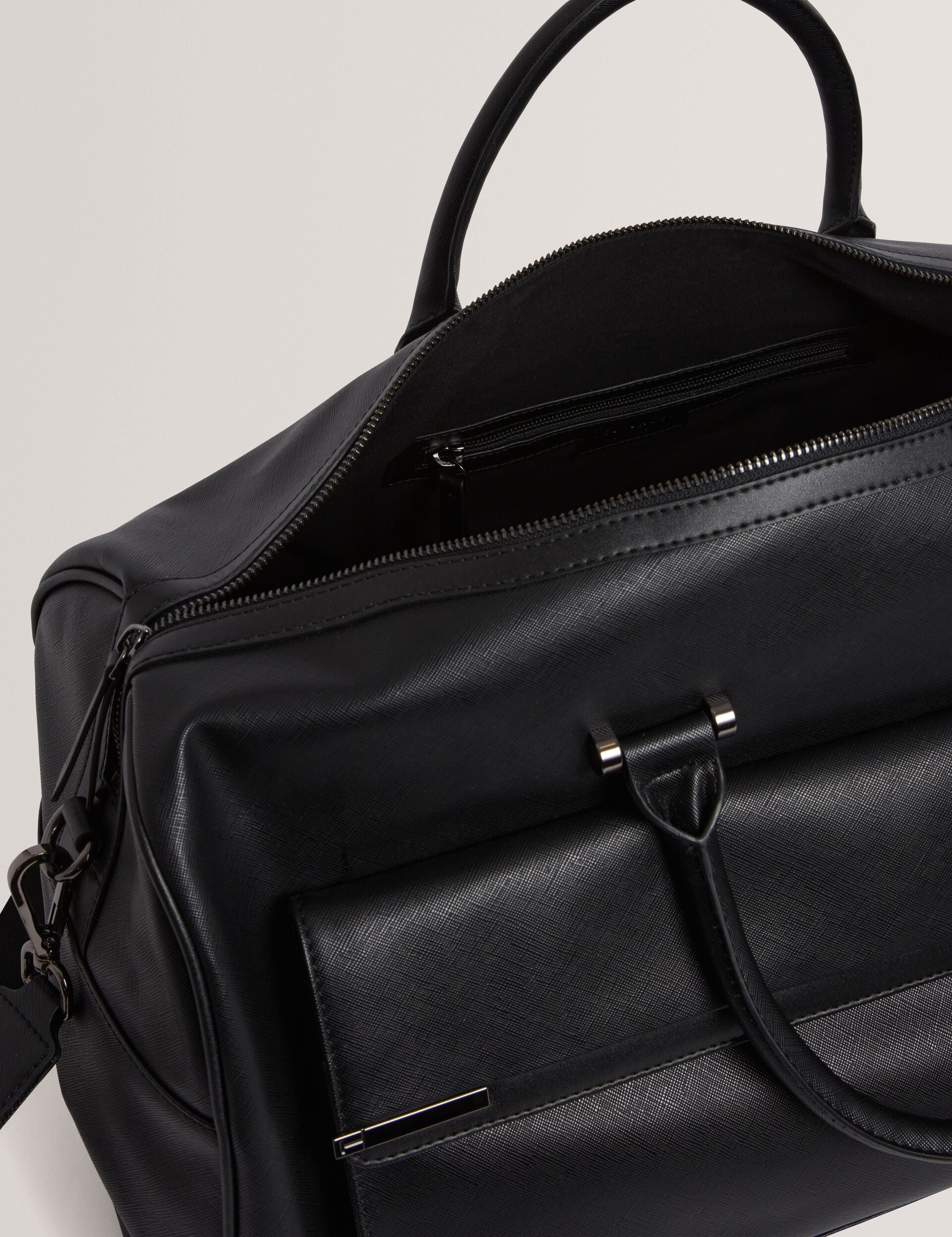 Featuring a refined crosshatch PU exterior with a polished tie-bar detail and spacious interior, the SAMBER holdall combines sleek style with travel-ready functionality. Carry with the sleek rolled top handles or clip on the adjustable shoulder strap for hands-free ease.