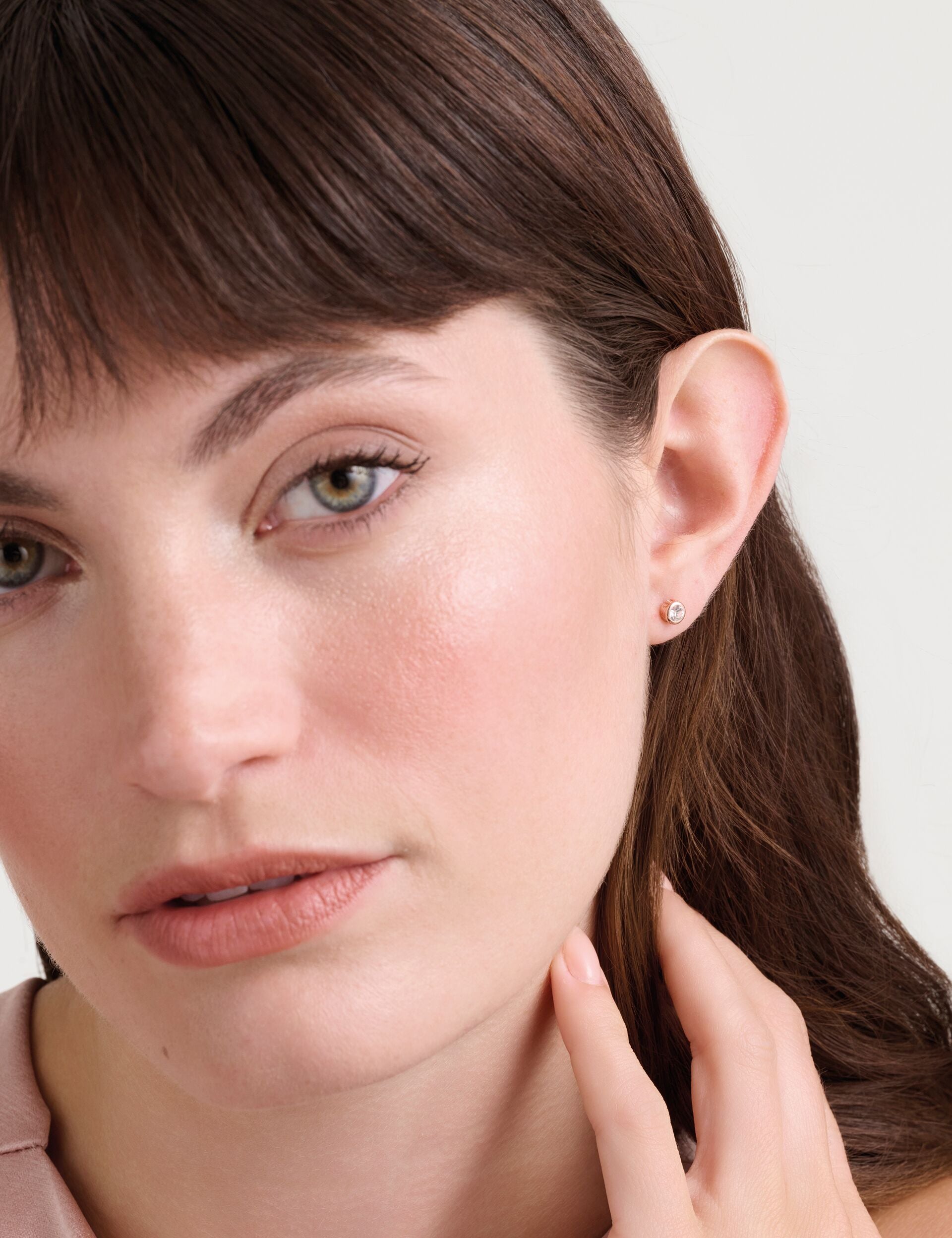 Add the perfect punctuation of sparkle with SINEE. Complete with clear European crystal and rose gold-tone plating, these versatile studs are perfect for day and evening. Hypoallergenic posts and secure butterfly backs keep them feeling comfortable.
