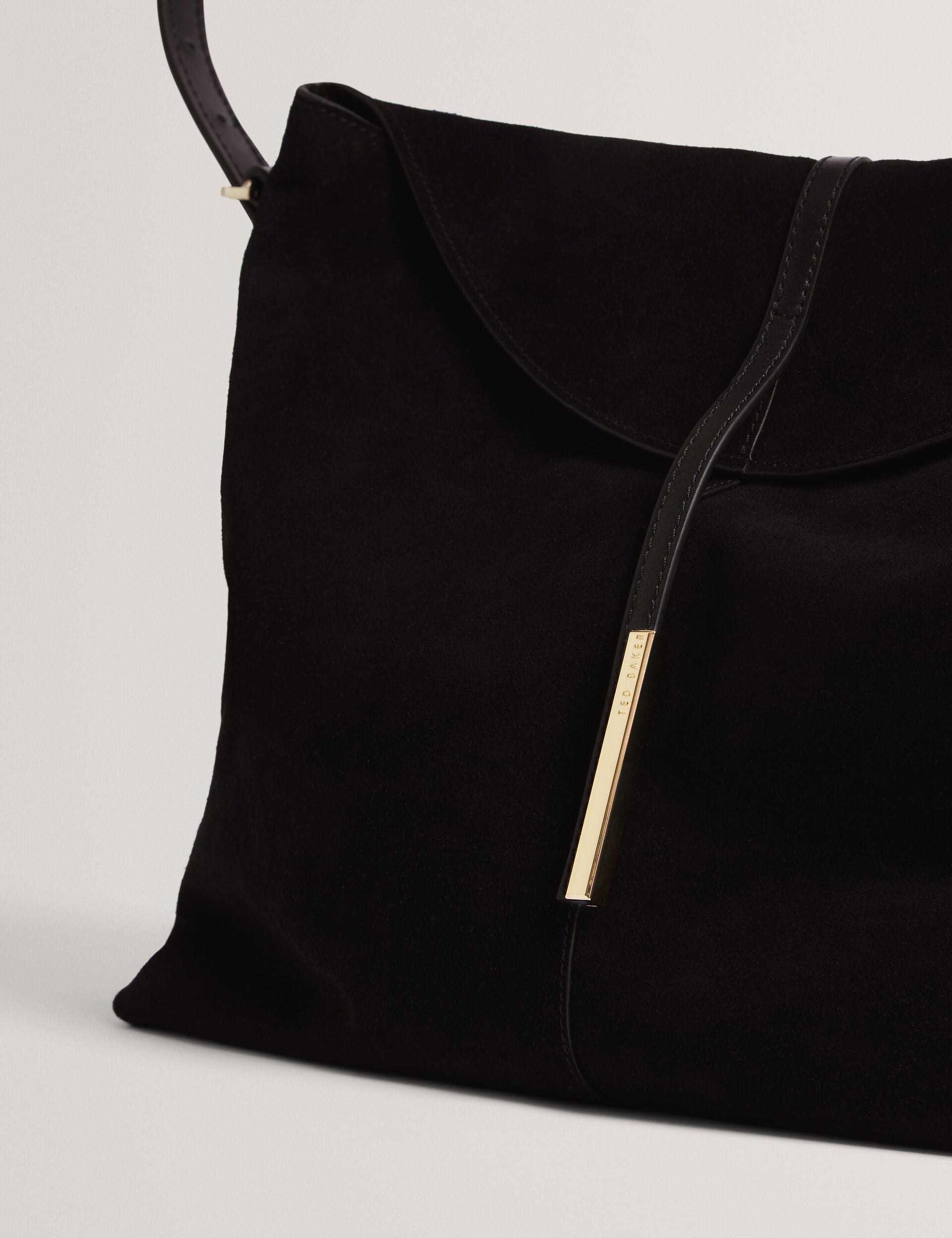 The SLLOANE shoulder bag is crafted from 100% suede leather for a velvety finish and a relaxed, slouchy silhouette. The natural draping is complement by the branded hardware bar dropped at the centre, giving it endless cool-girl appeal.