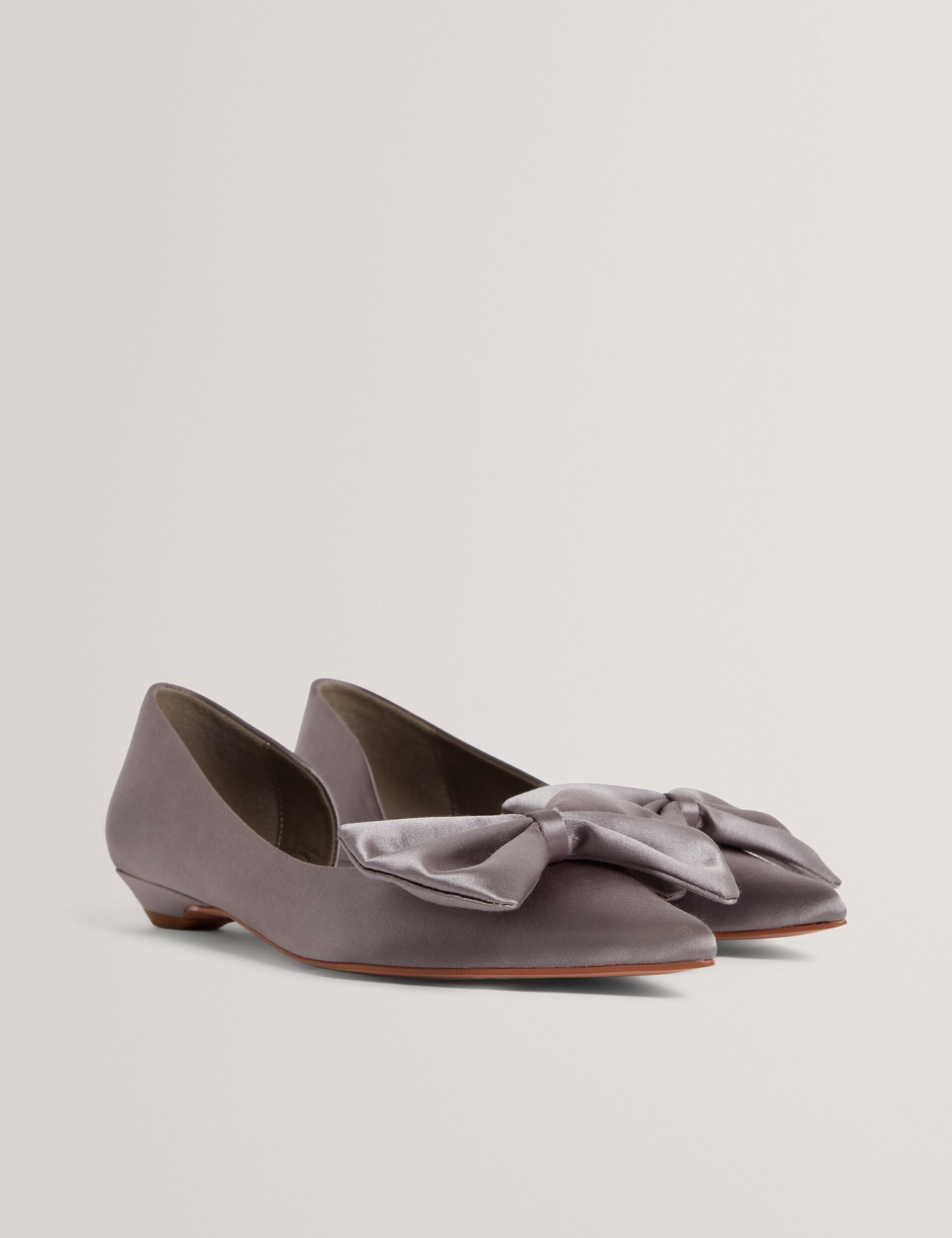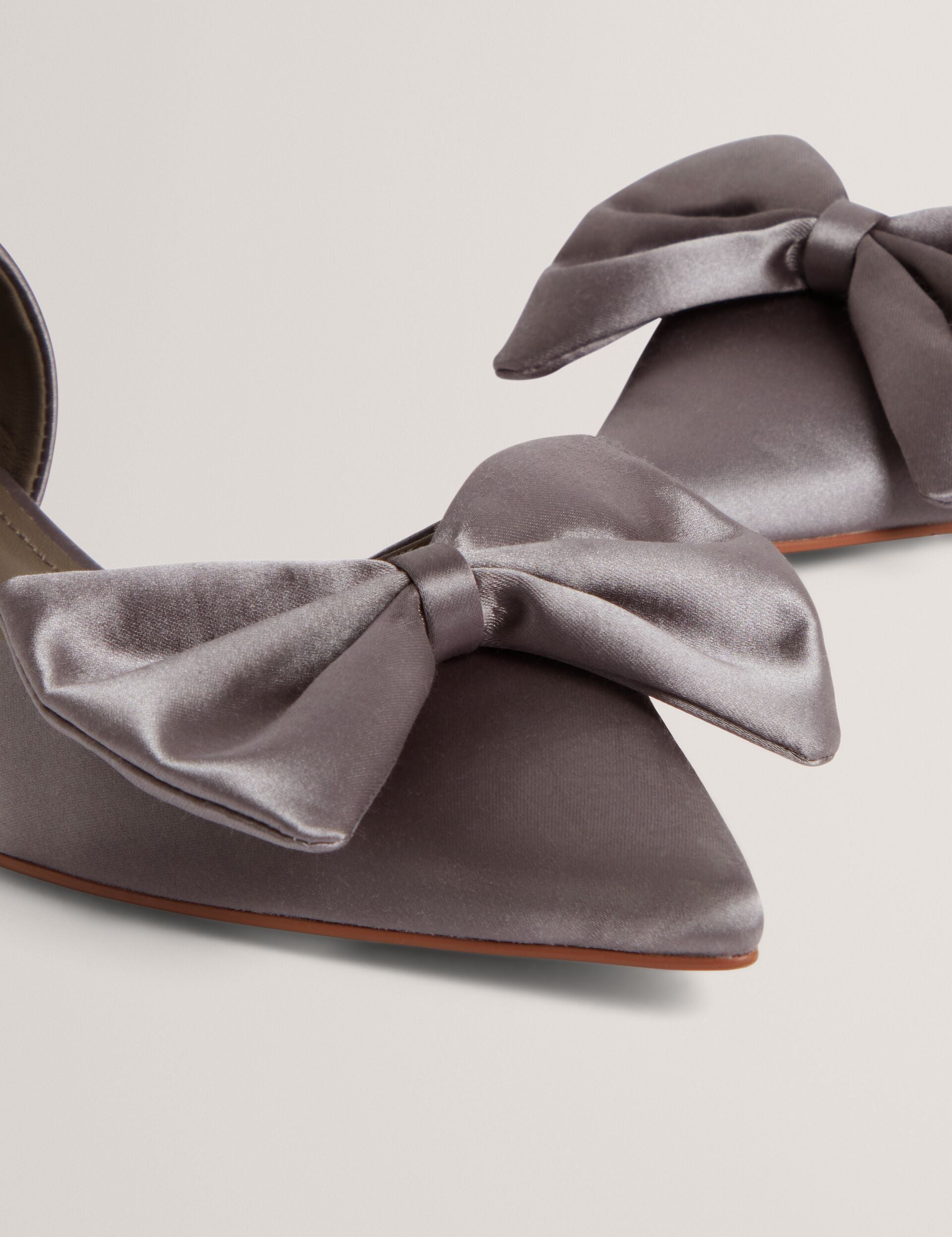 Bow Detail Satin Pointed Kitten Heels