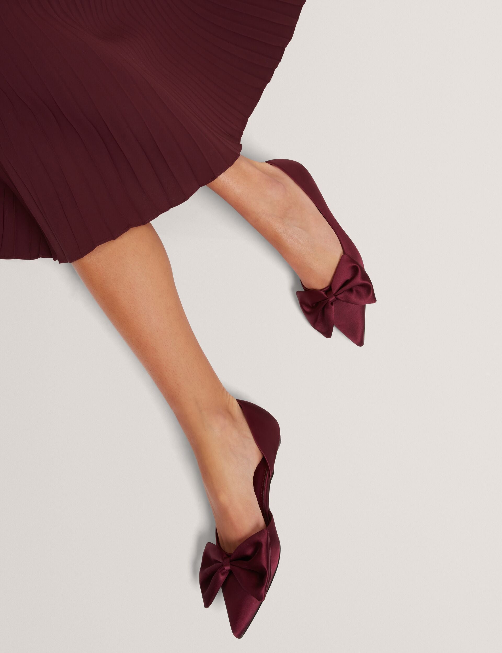 Delicate and feminine, the SOUFIYA kitten heels featured a smooth satin fabric embellished with an oversized bow at the pointed toe. It's effortless elegance that's comfortable all day.