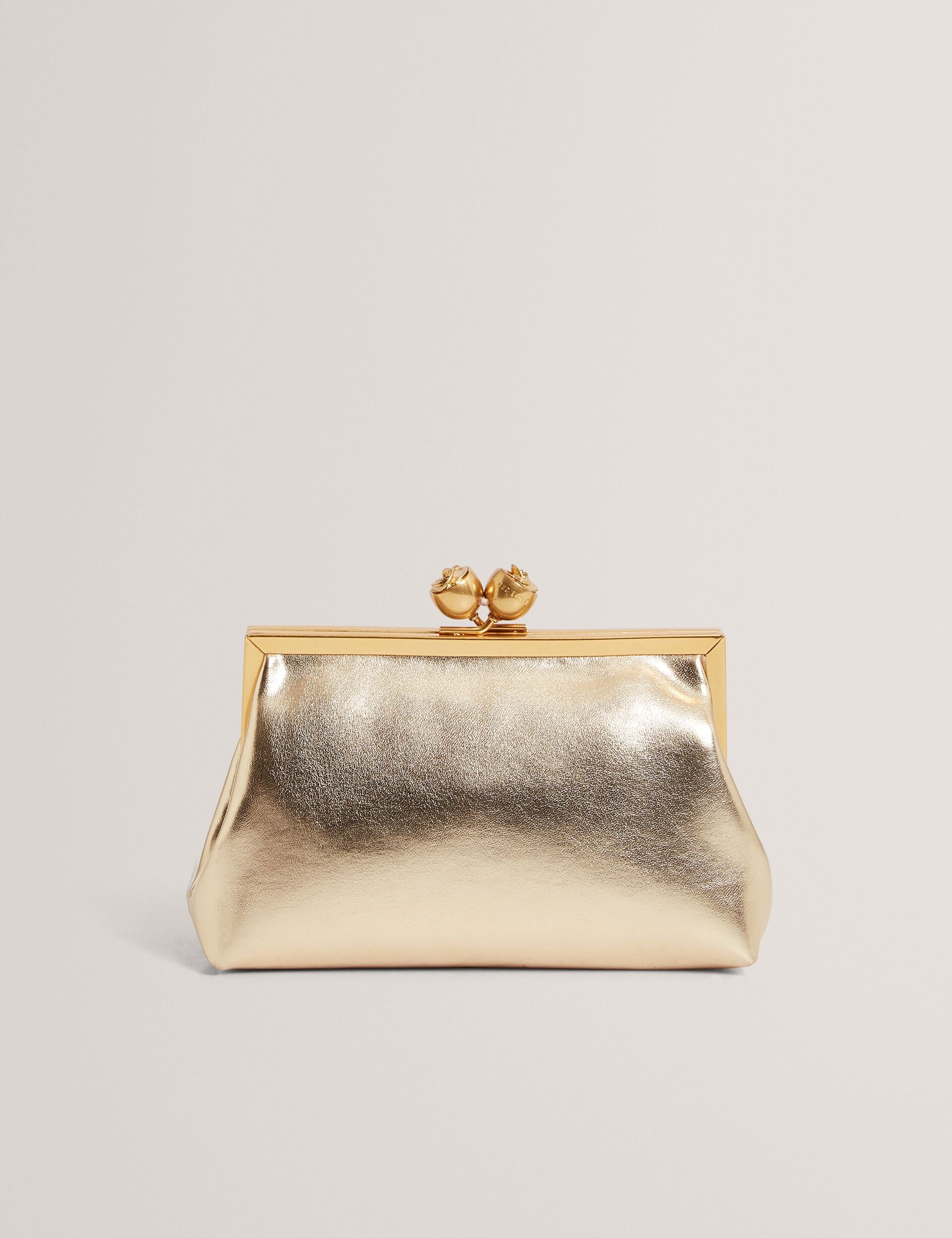 Metallic Leather Rose Clasp Clutch Bag