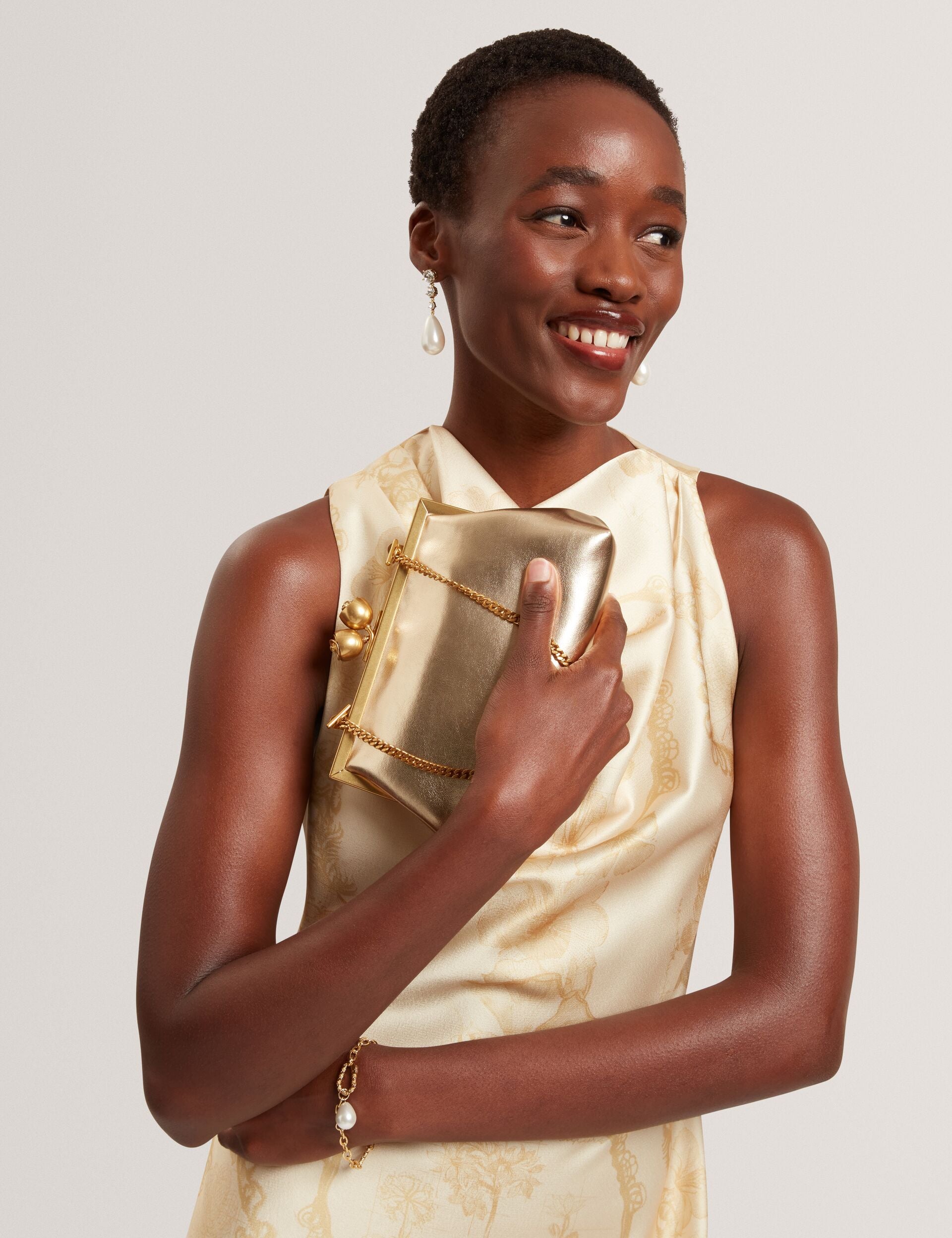 - Gold-tone hardware