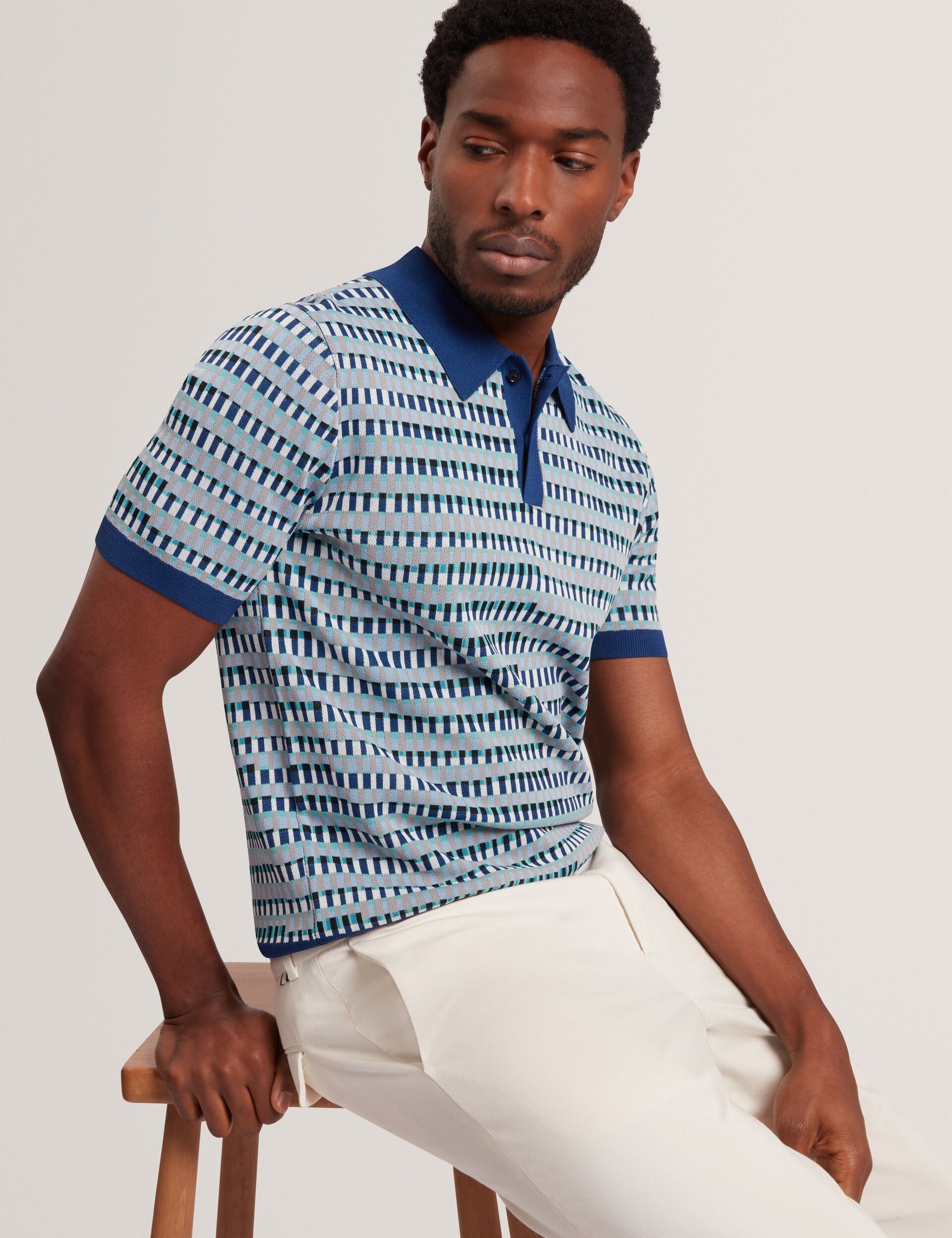 Designed with a bold dash check pattern and contrast colour trims, this TADMORI jacquard knit polo is smart-casual style that oozes personality.