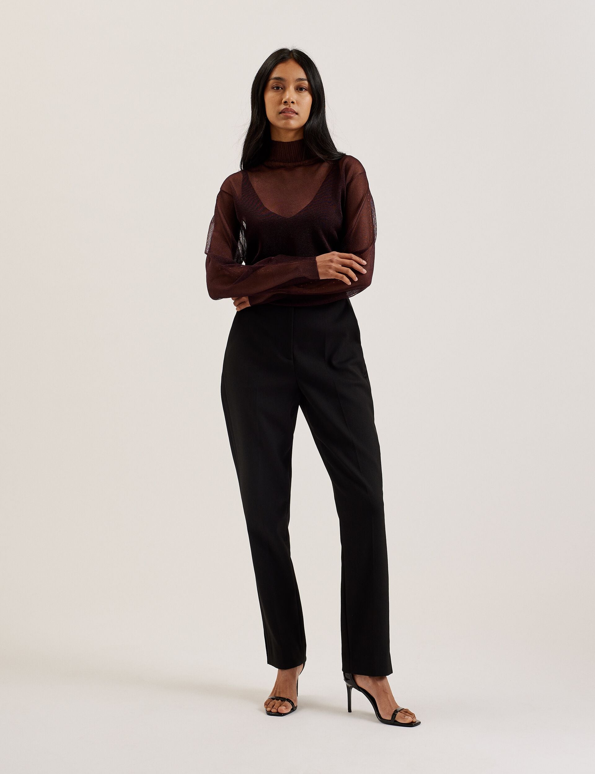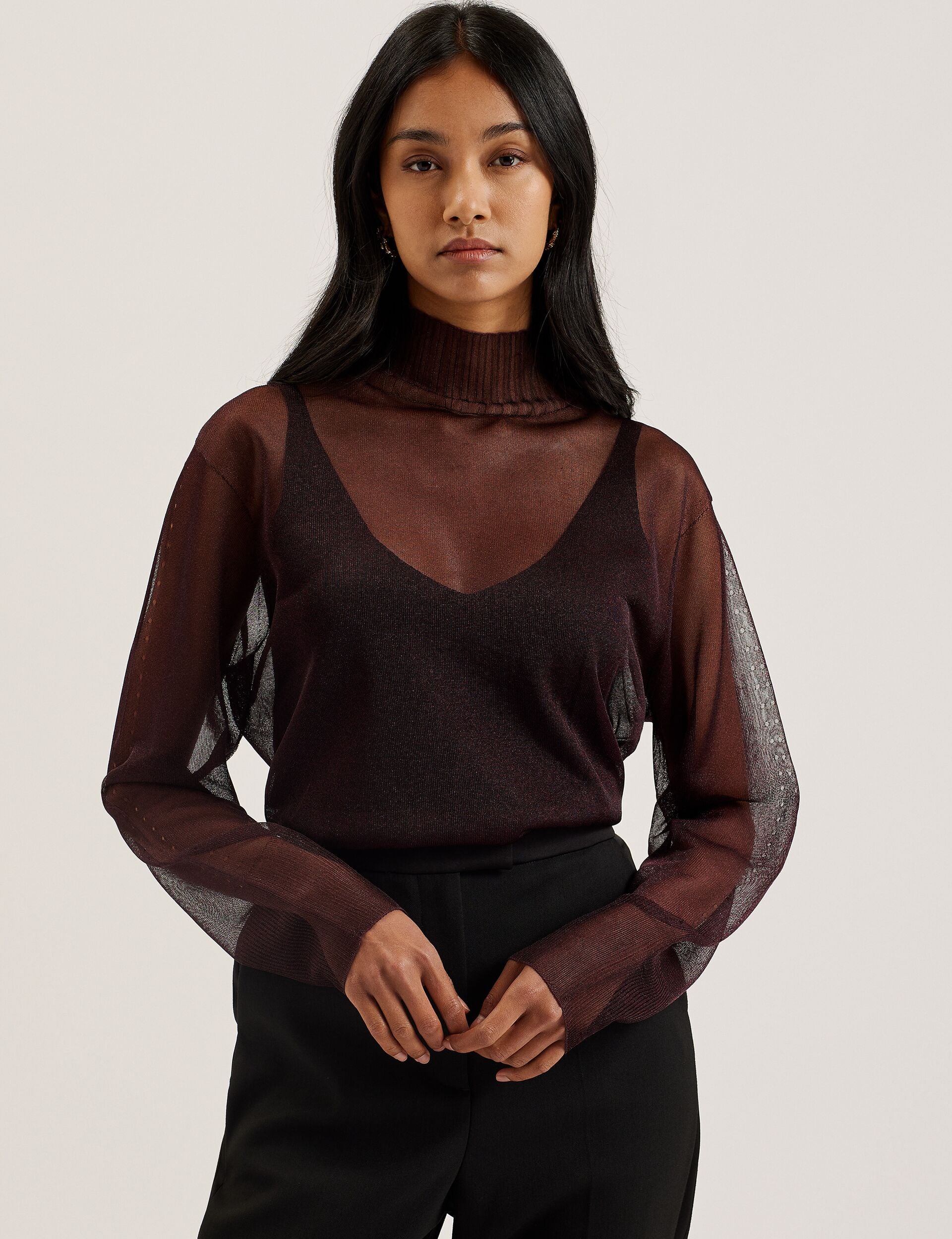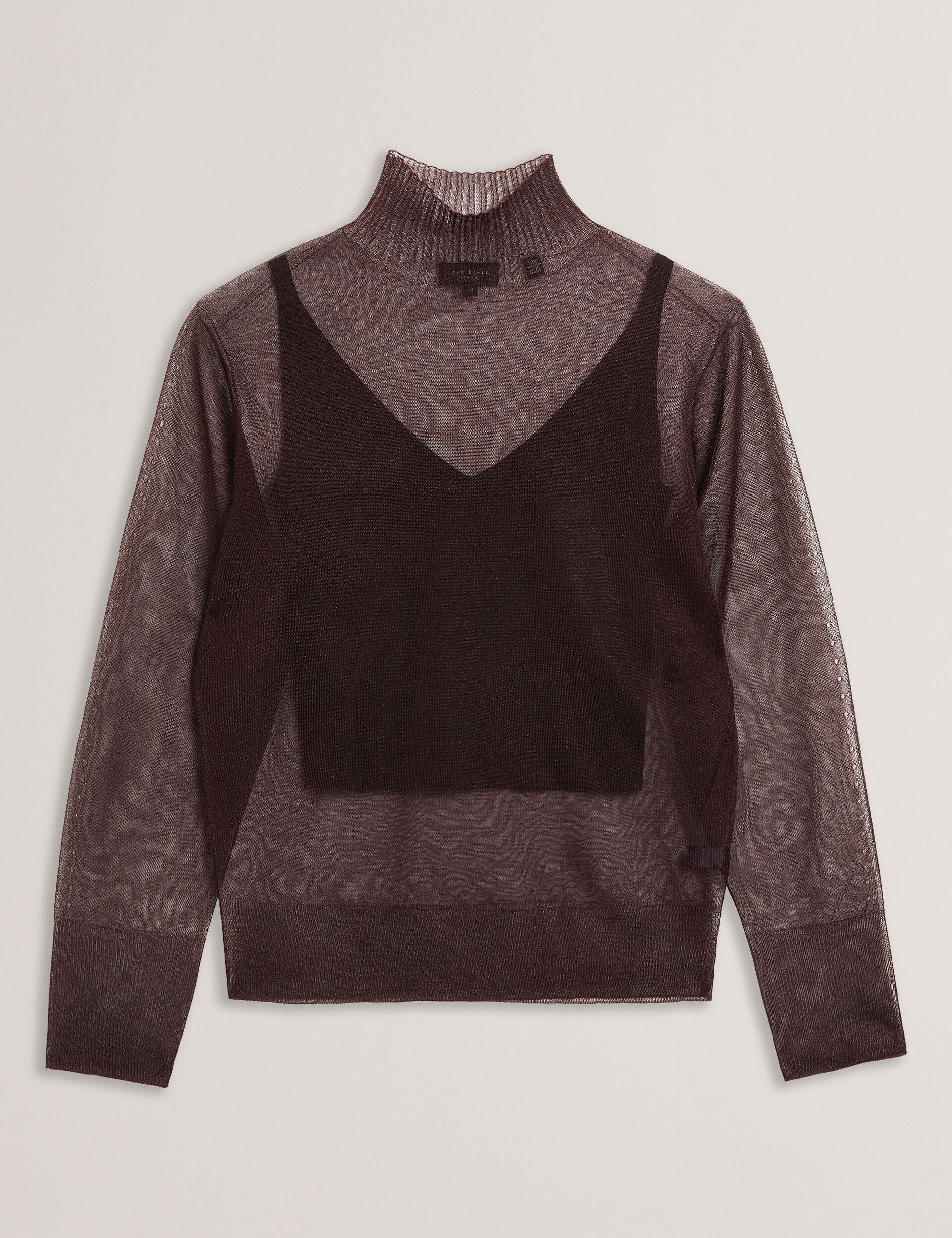 Shimmer Sheer Knit Funnel Neck Top