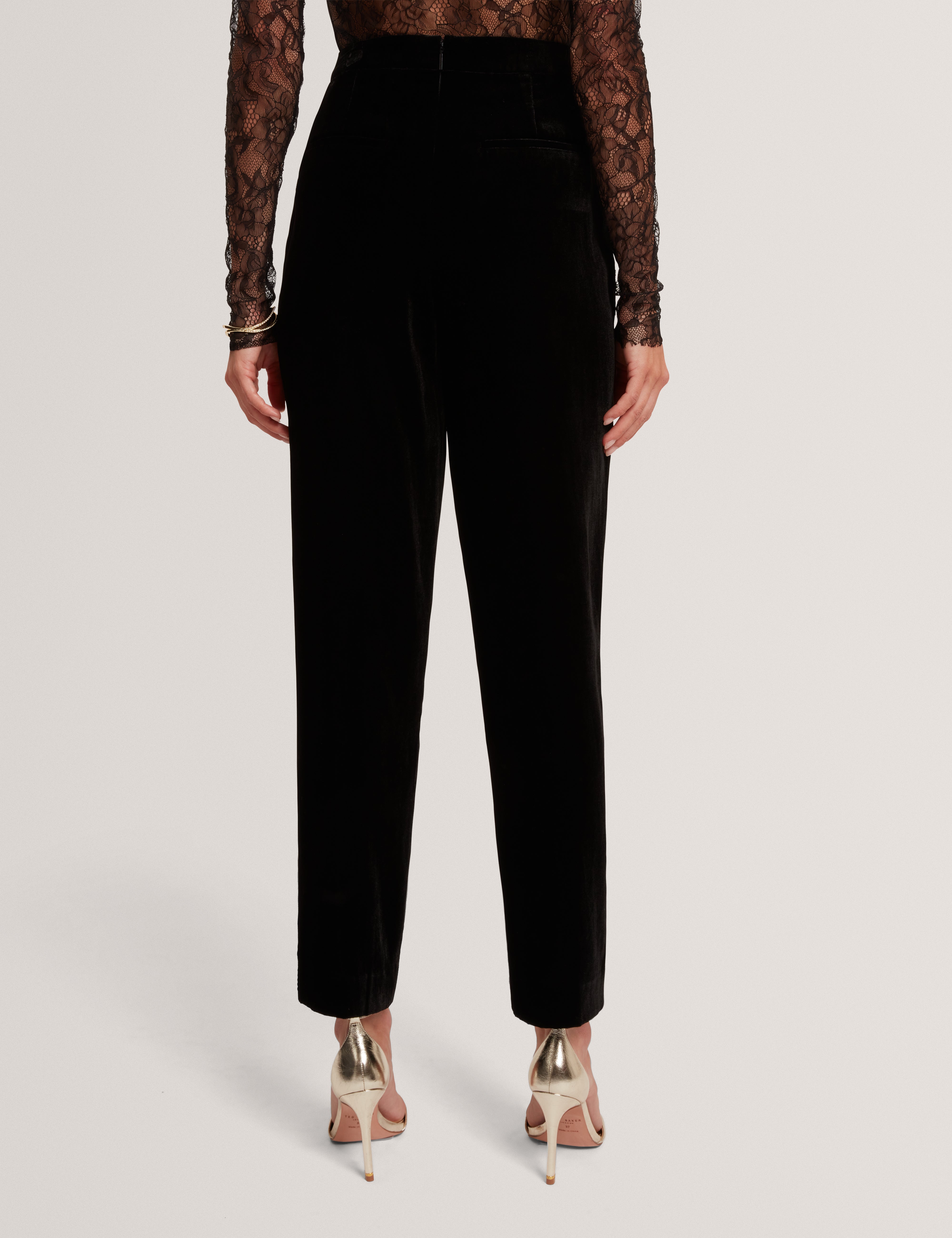 - Velvet tailored trousers