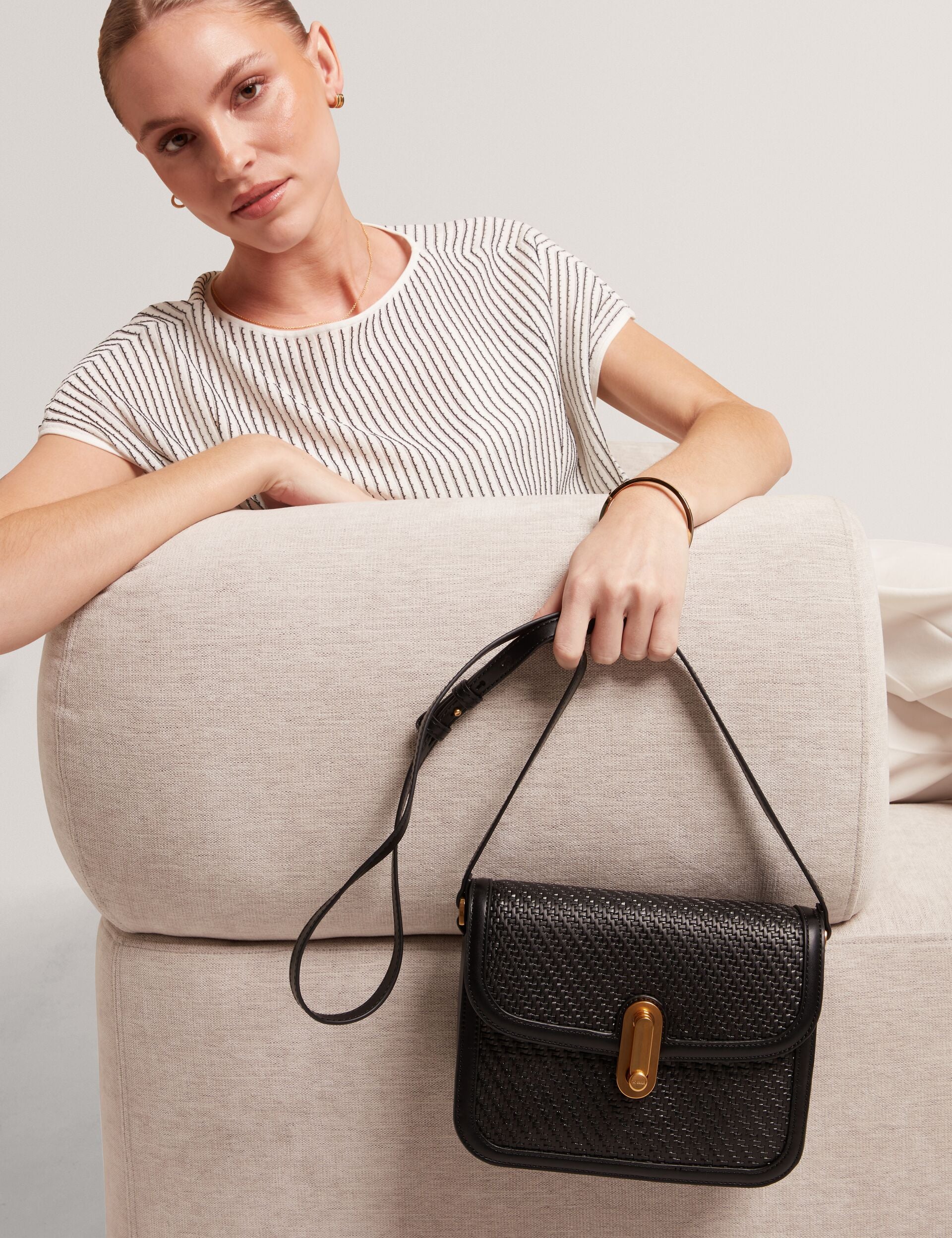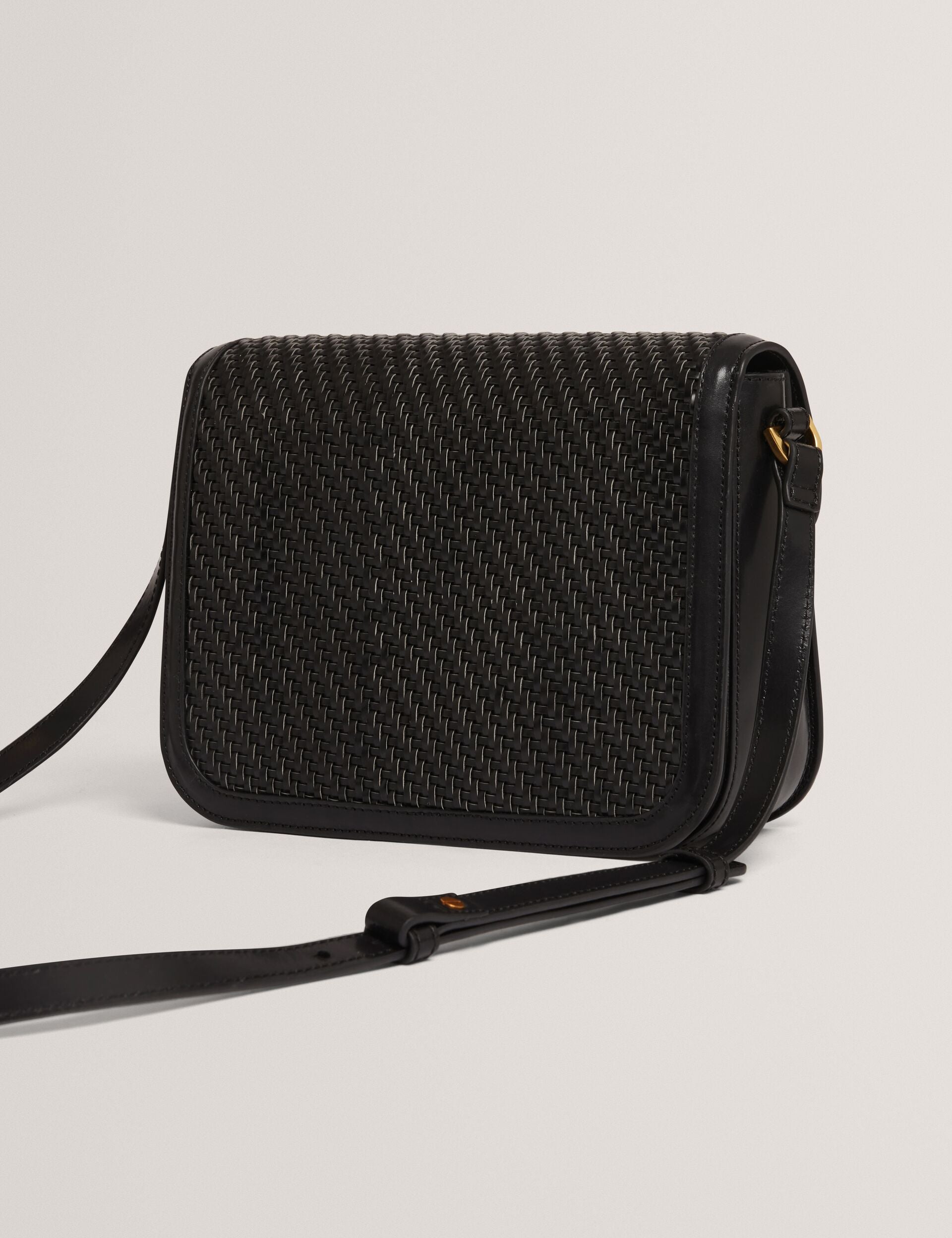 Woven Leather Twist Lock Crossbody Bag