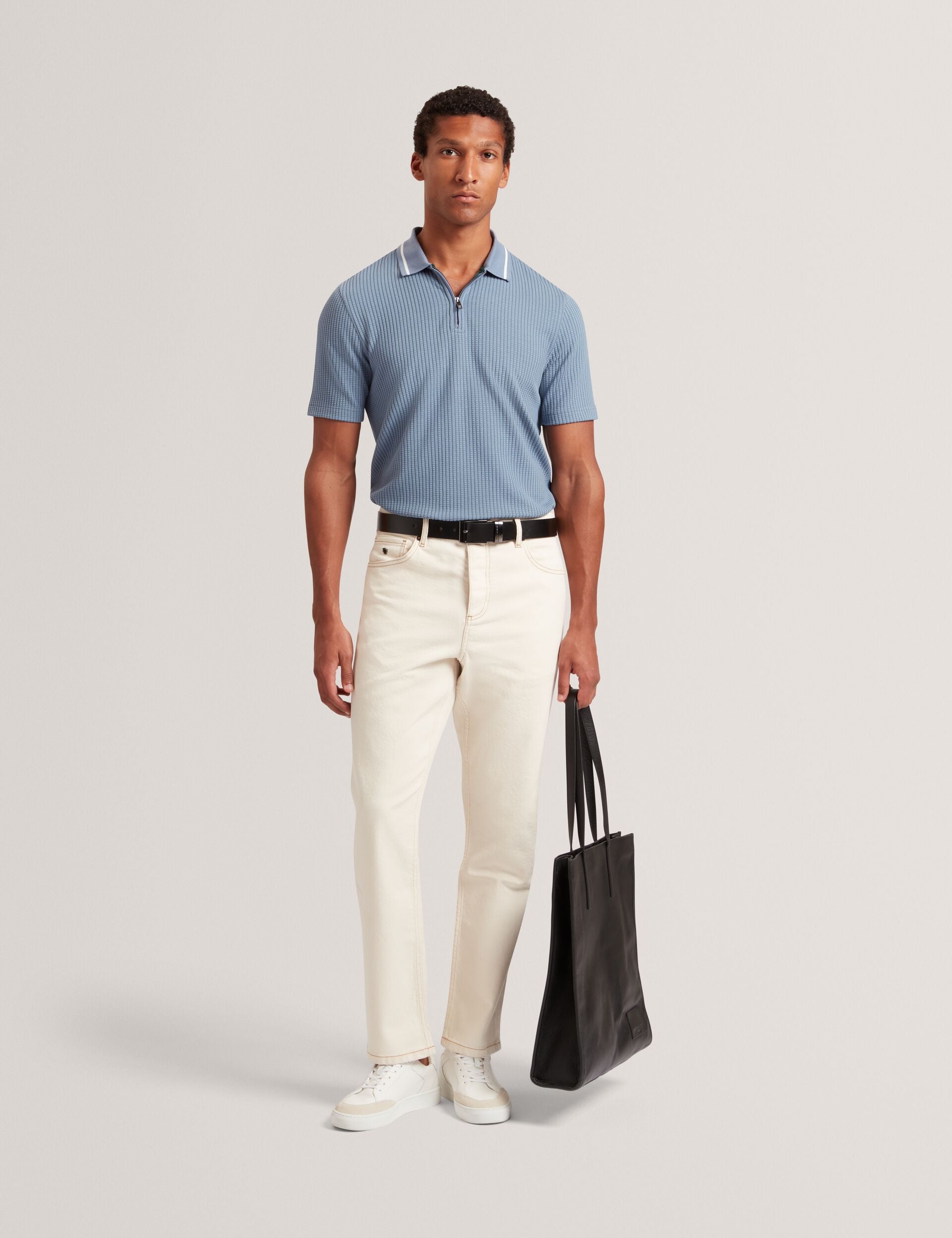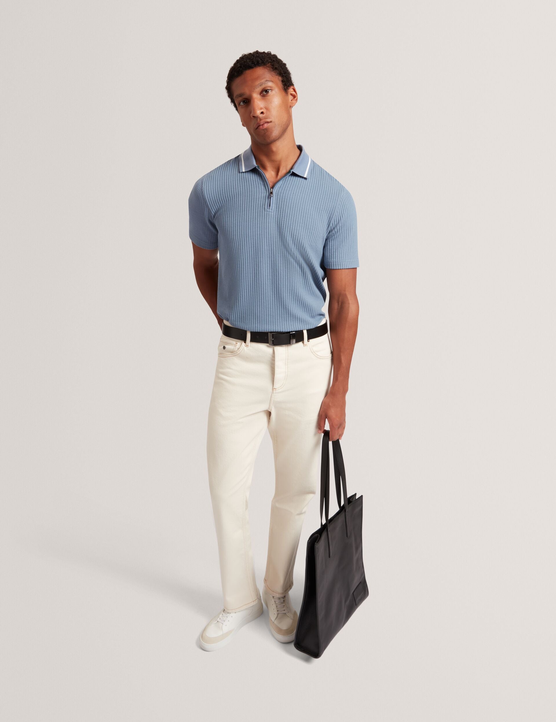 - Plain collar with single stripe detail
