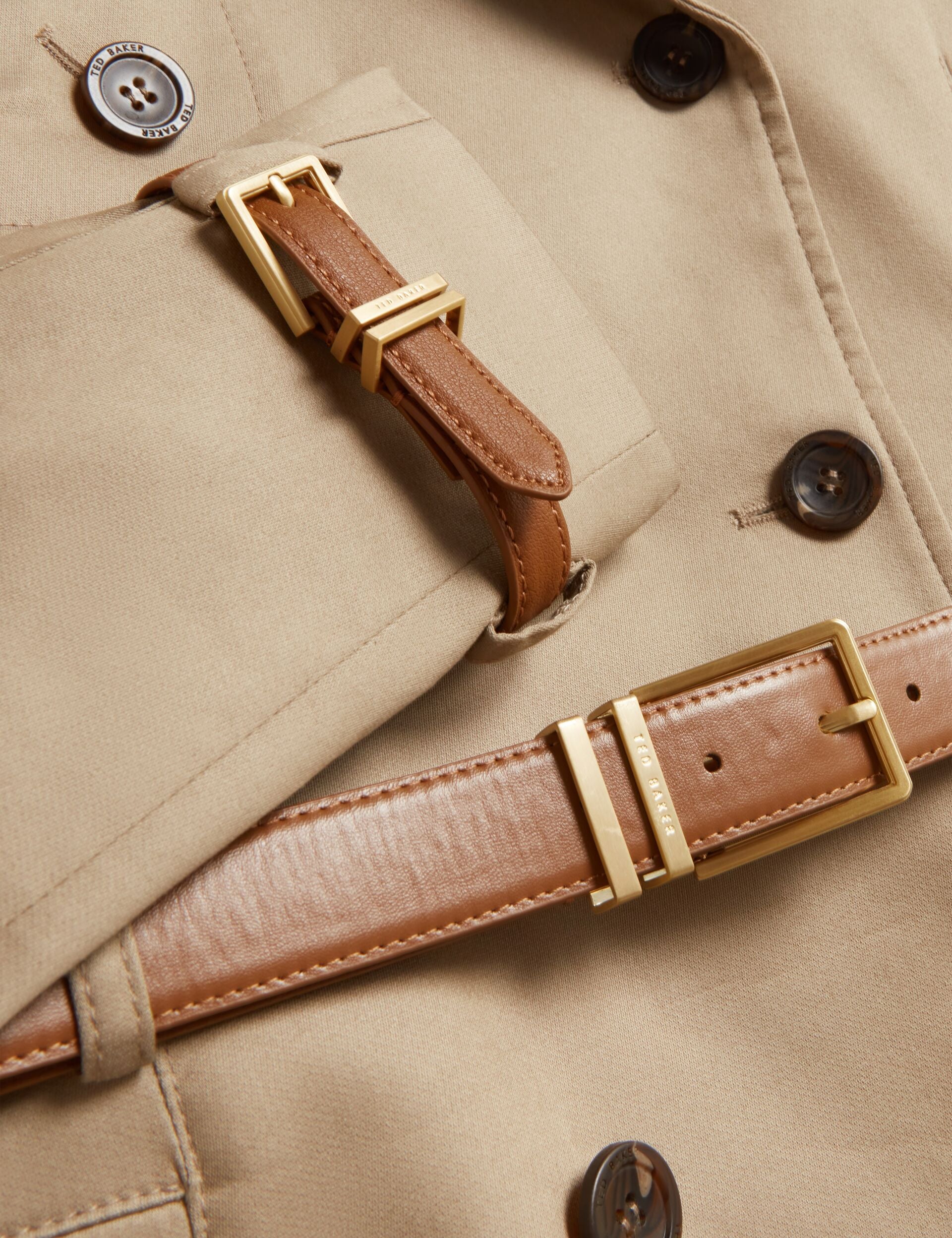 ARYTHA est une silhouette de vêtement d'extérieur classique, revisitée par Ted. Ce trench long présente un design à double boutonnage et des rabats tempête élégants, avec des fermetures ceinturées ajoutées à la taille et aux manches pour une silhouette cintrée. Conçu à partir d'un mélange de coton avec une finition enduite, c'est un style intemporel fait pour durer.