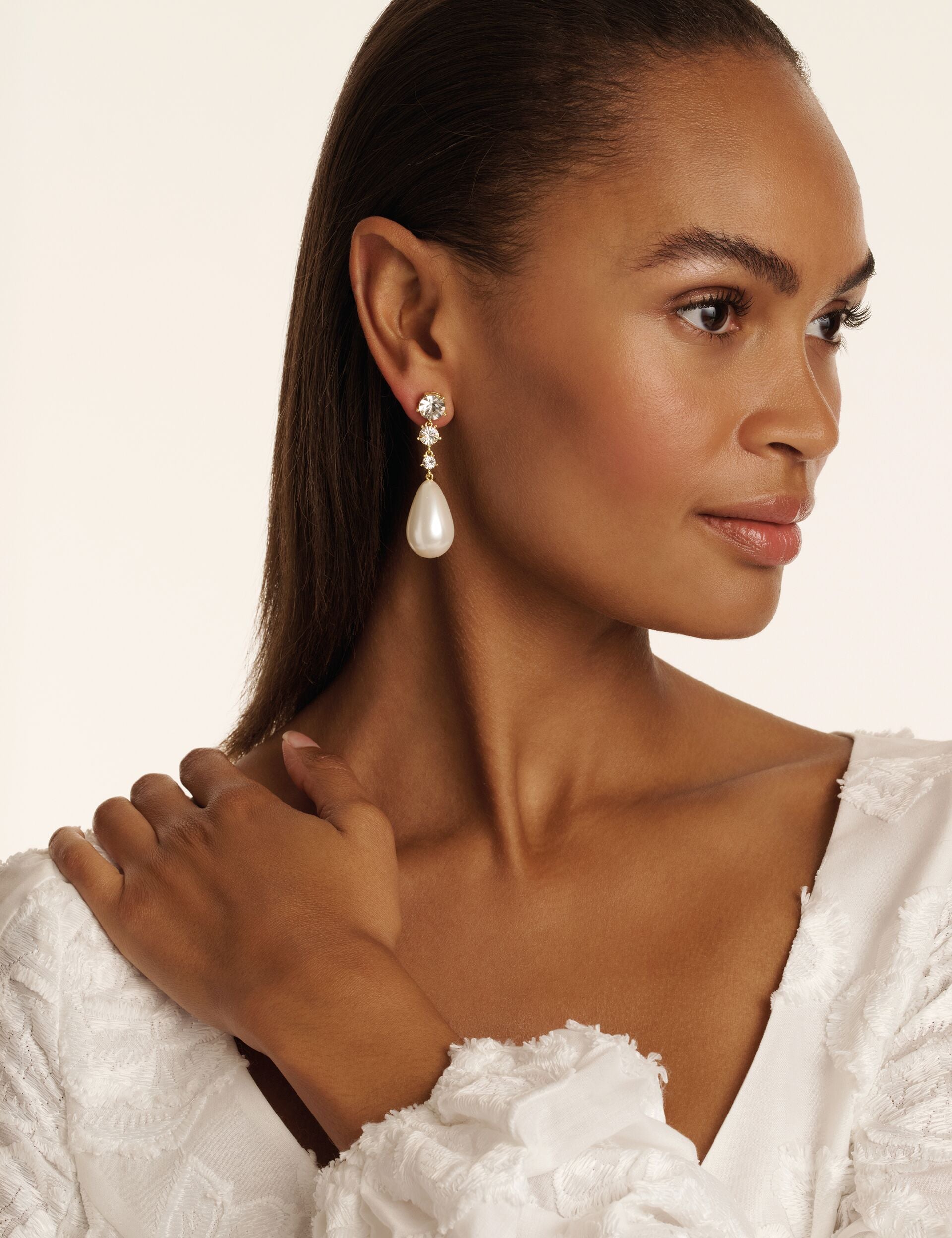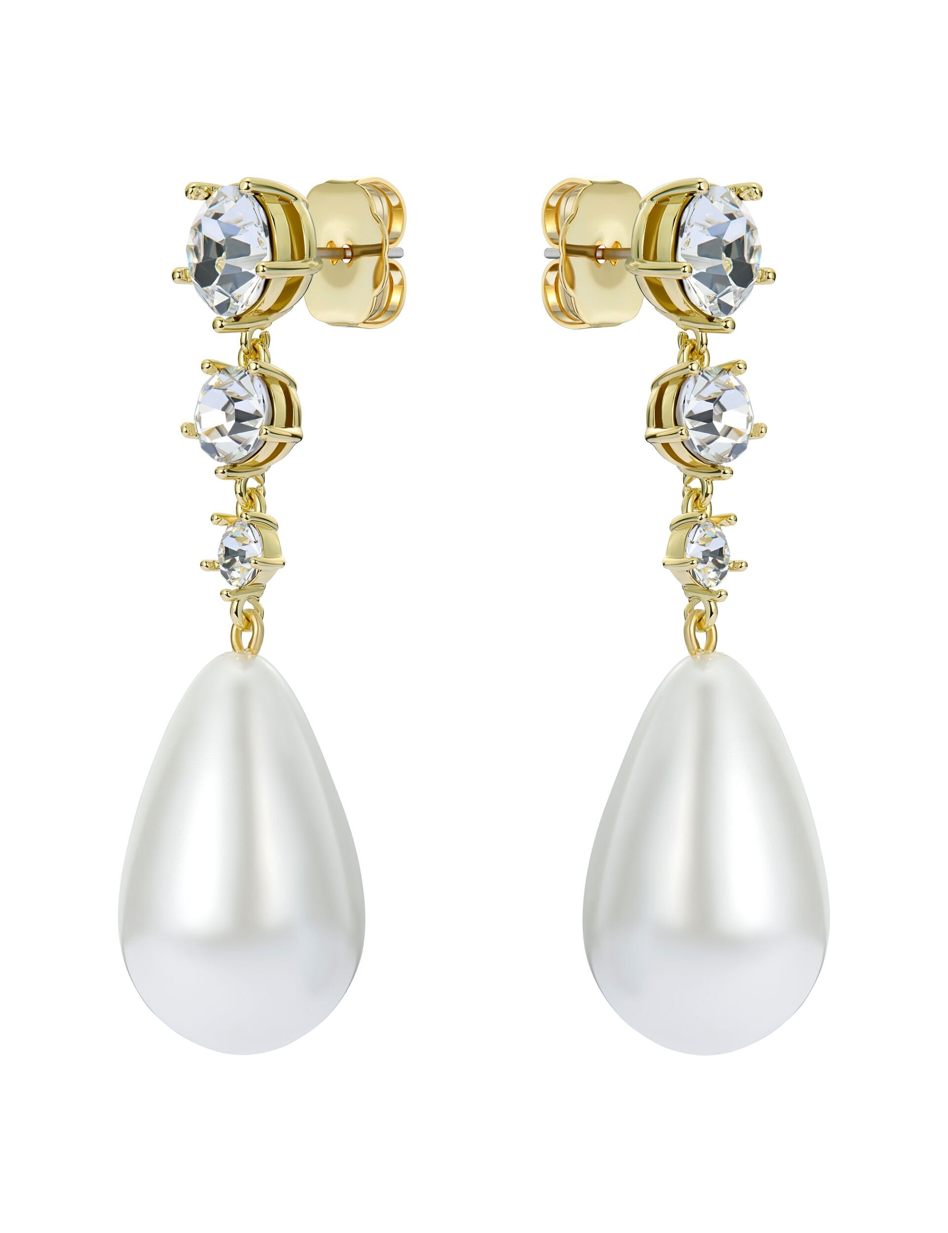 Sublimez votre look avec ces boucles d'oreilles PEARSTI. Une perle d'imitation en forme de larme est suspendue à une rangée de cristaux pour un équilibre parfait entre élégance et éclat.