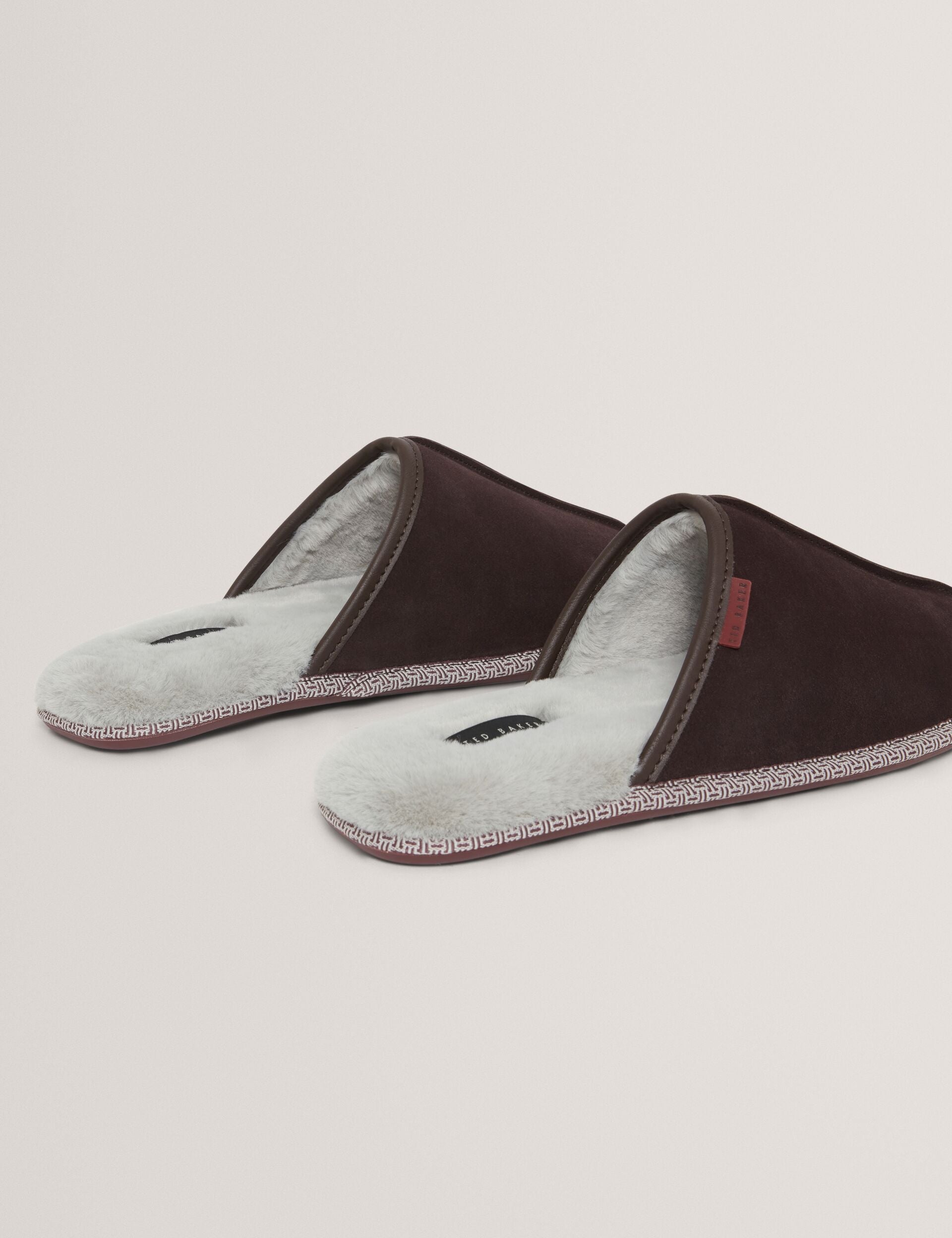 Confectionnées en cuir suédé souple avec une semelle rembourrée et une doublure en fausse fourrure moelleuse, les mules classiques PETERR offrent un confort douillet à l'intérieur avec un style décontracté raffiné.
