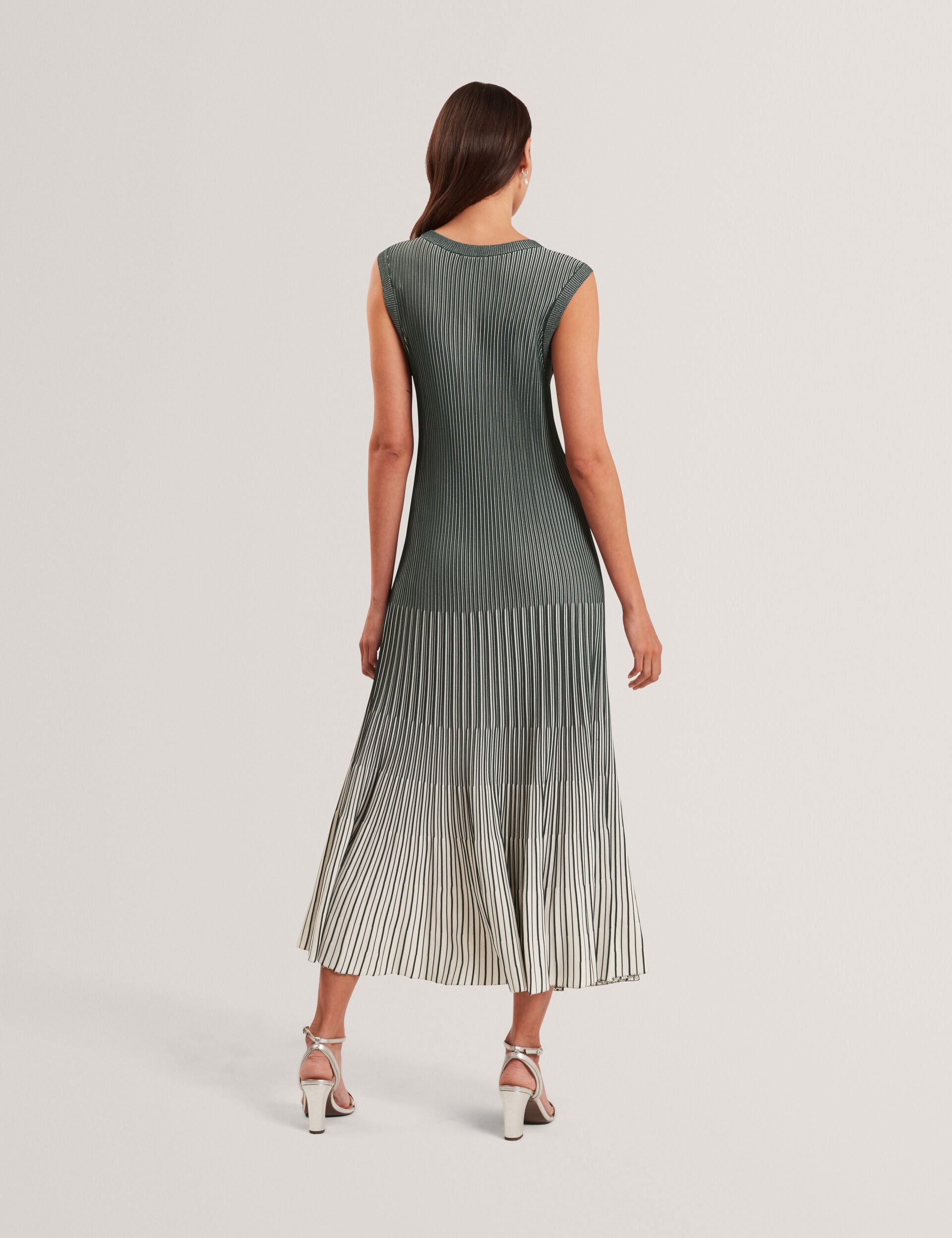 Textured Stripe Knit Sleeveless Midi Dress