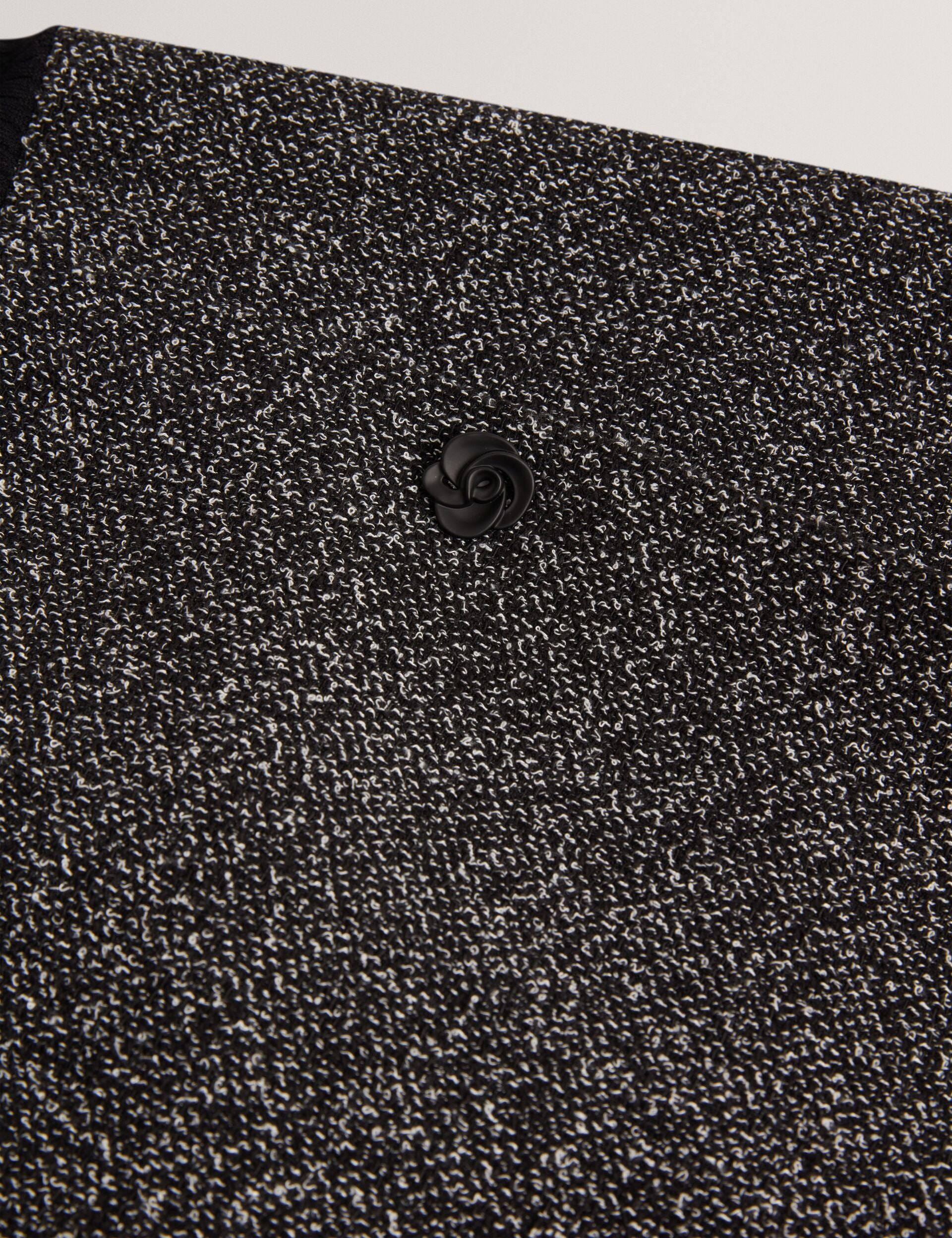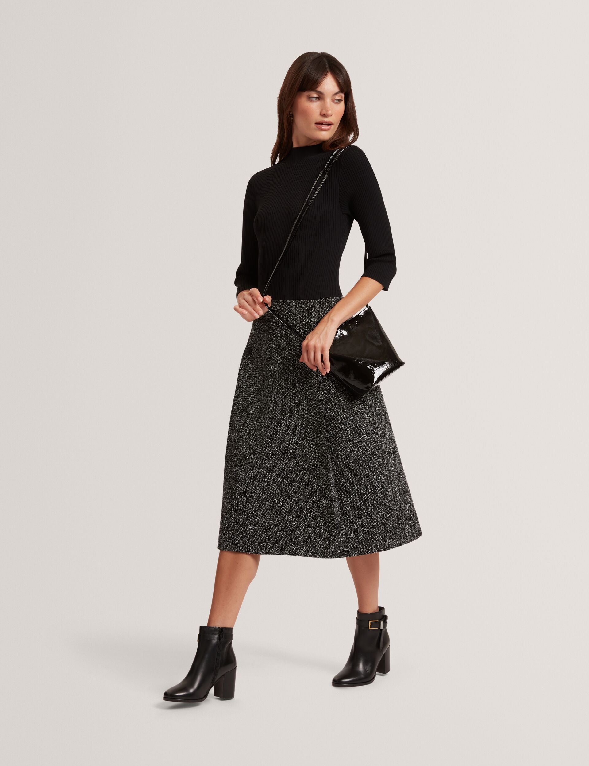 Look put together in the EKAAD midi dress. Featuring a soft ribbed knit top with a boucle texture skirt, this chic piece gives the illusion of separates with none of the effort. Pair with heeled boots for the perfect desk to dinner fit.