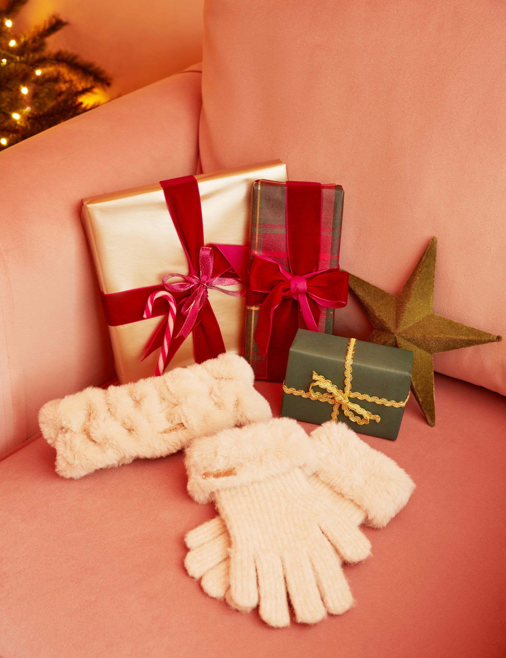 - Gants en maille côtelée avec poignets en fausse fourrure