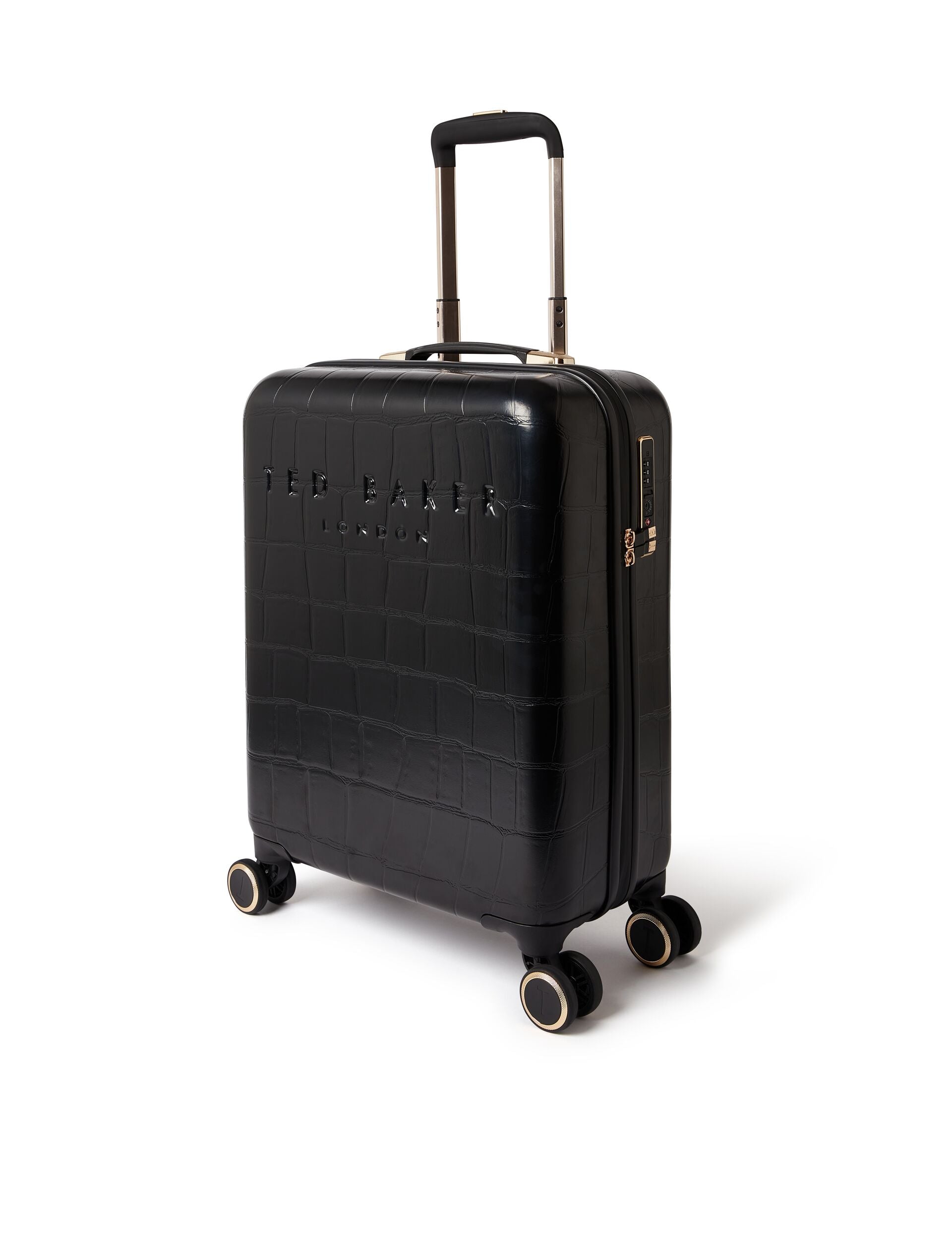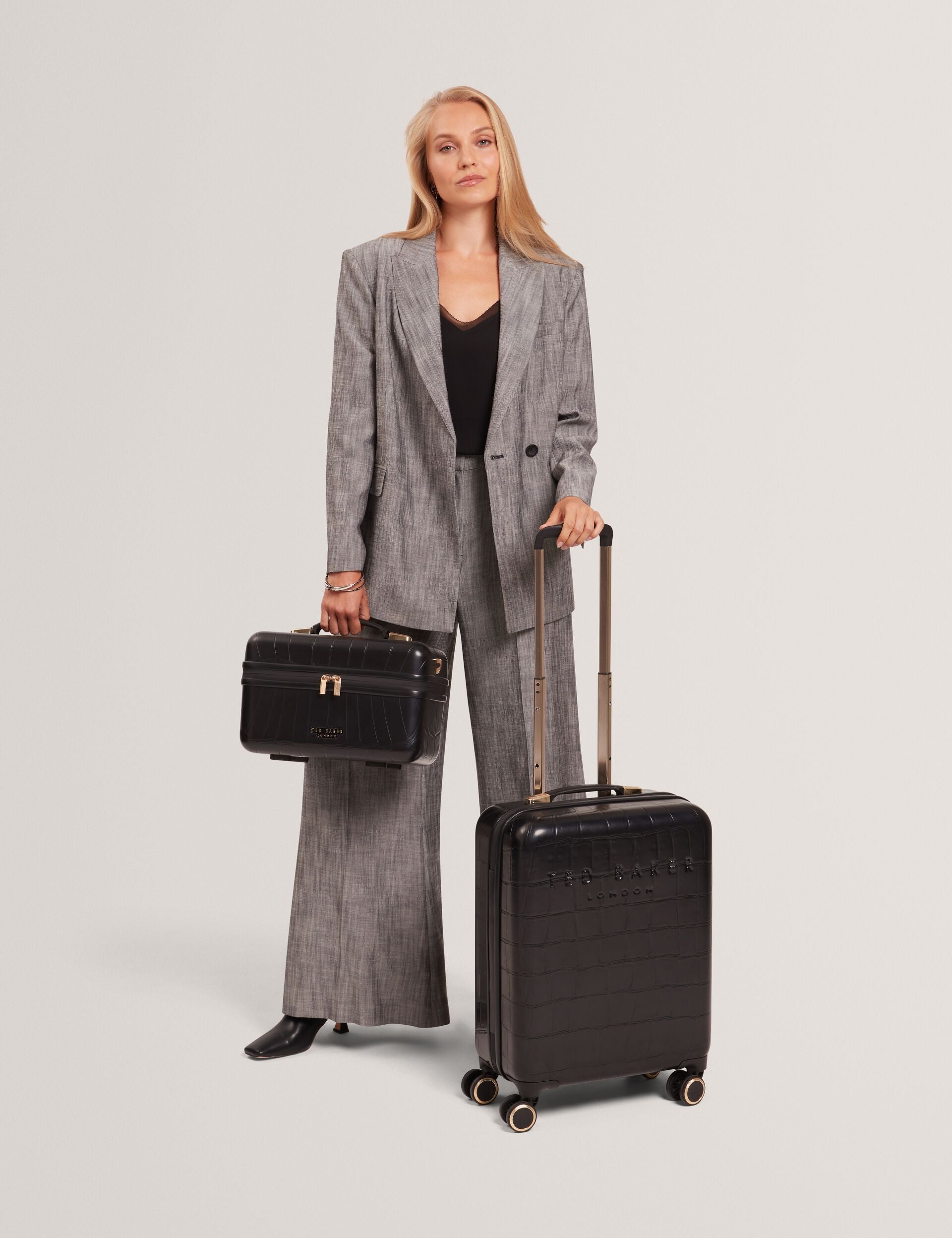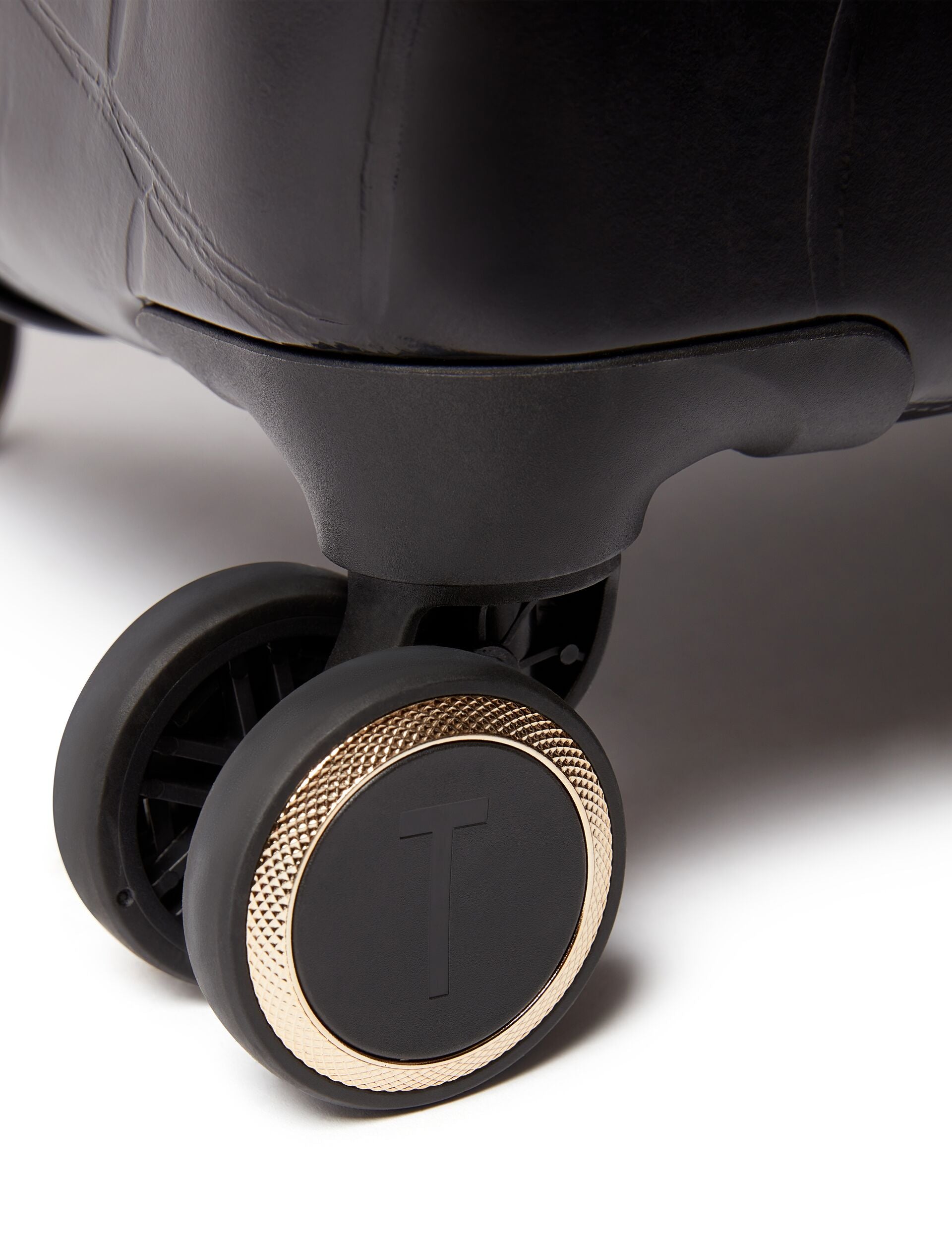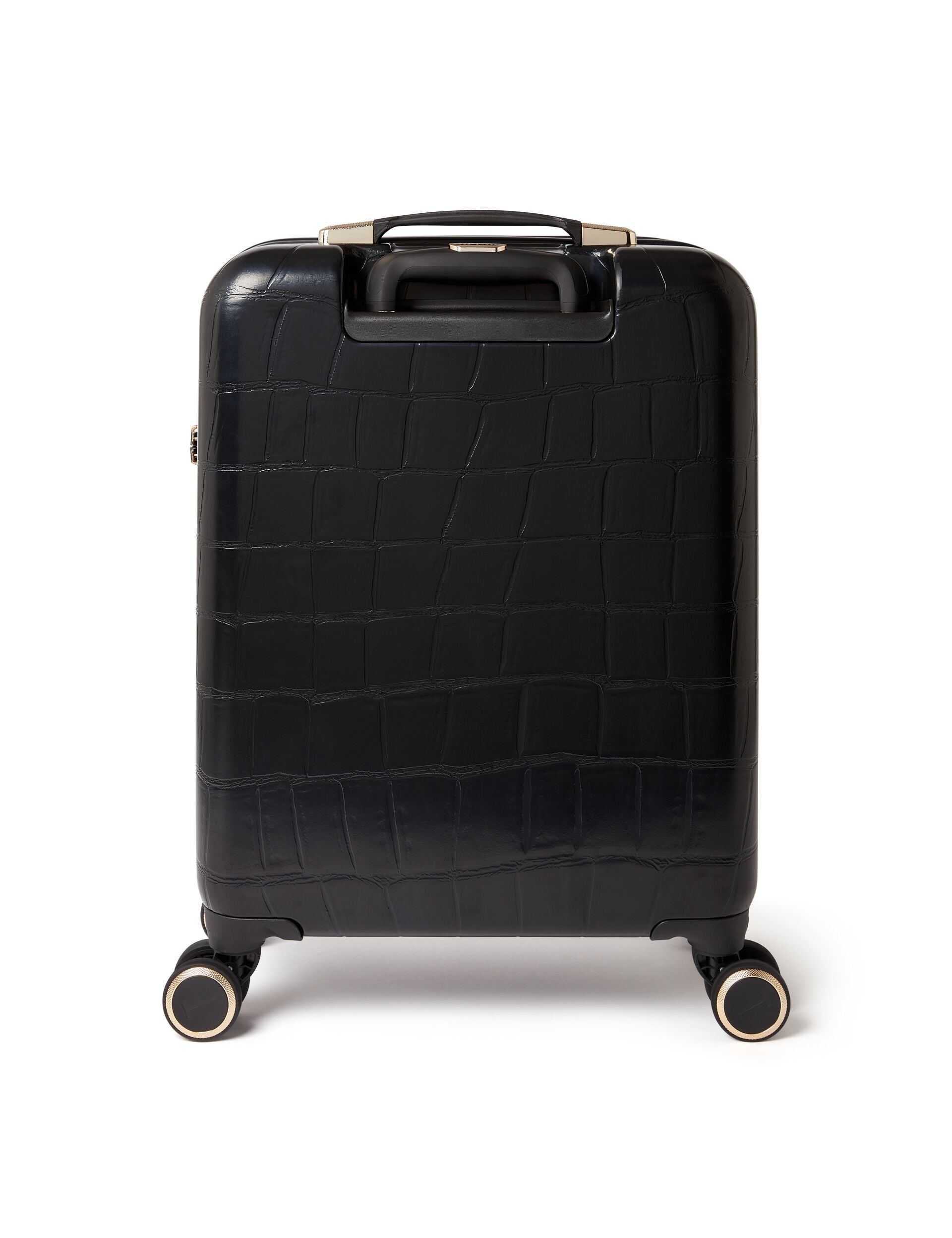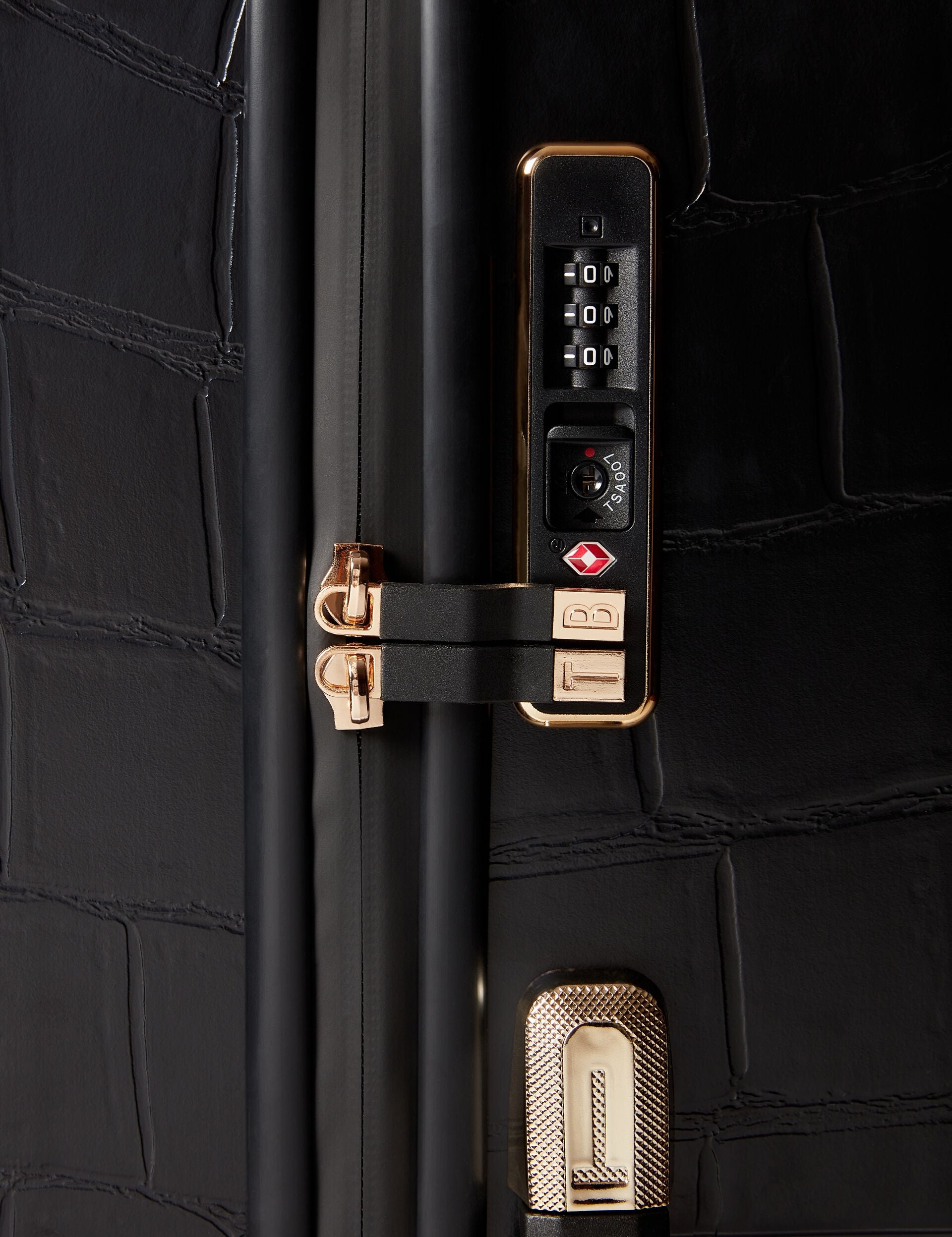 Voyagez en toute élégance à l'aéroport avec la valise cabine noire ICON, conçue avec notre texture croco emblématique et des finitions dorées brillantes. Son design épuré à coque rigide se glisse facilement dans le compartiment supérieur, doté de quatre roues doubles qui glissent avec vous.