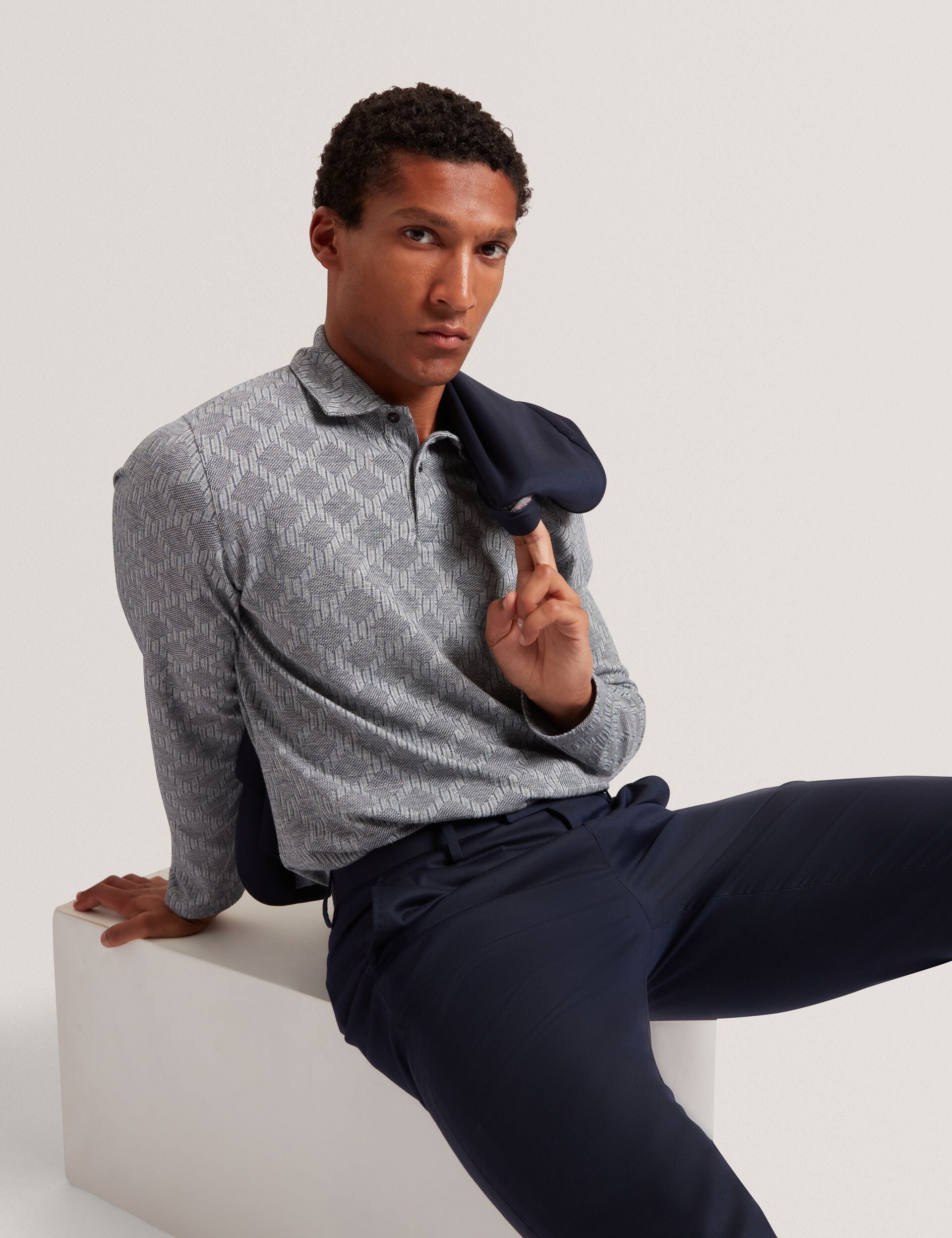 Diamond Jacquard Long Sleeve Polo