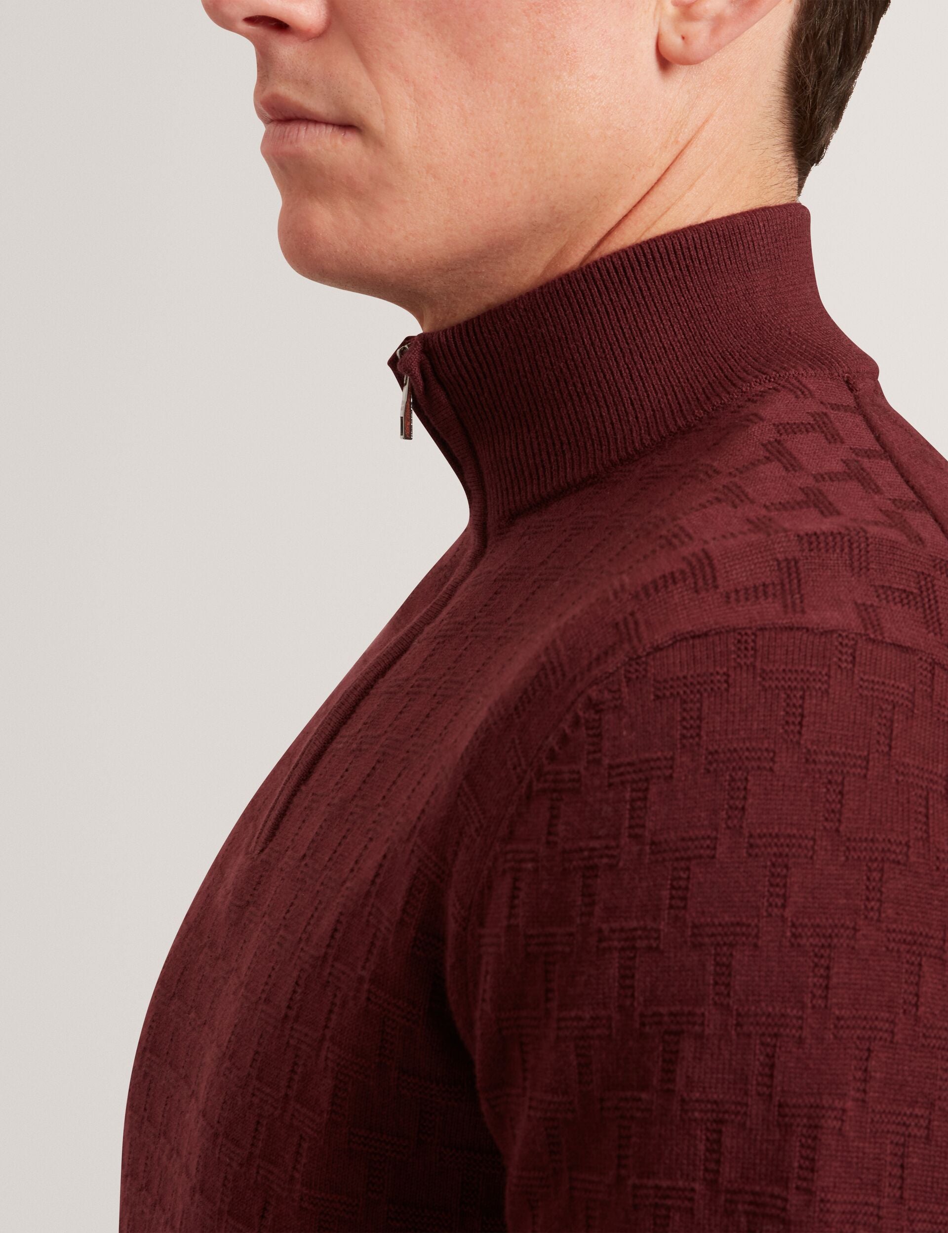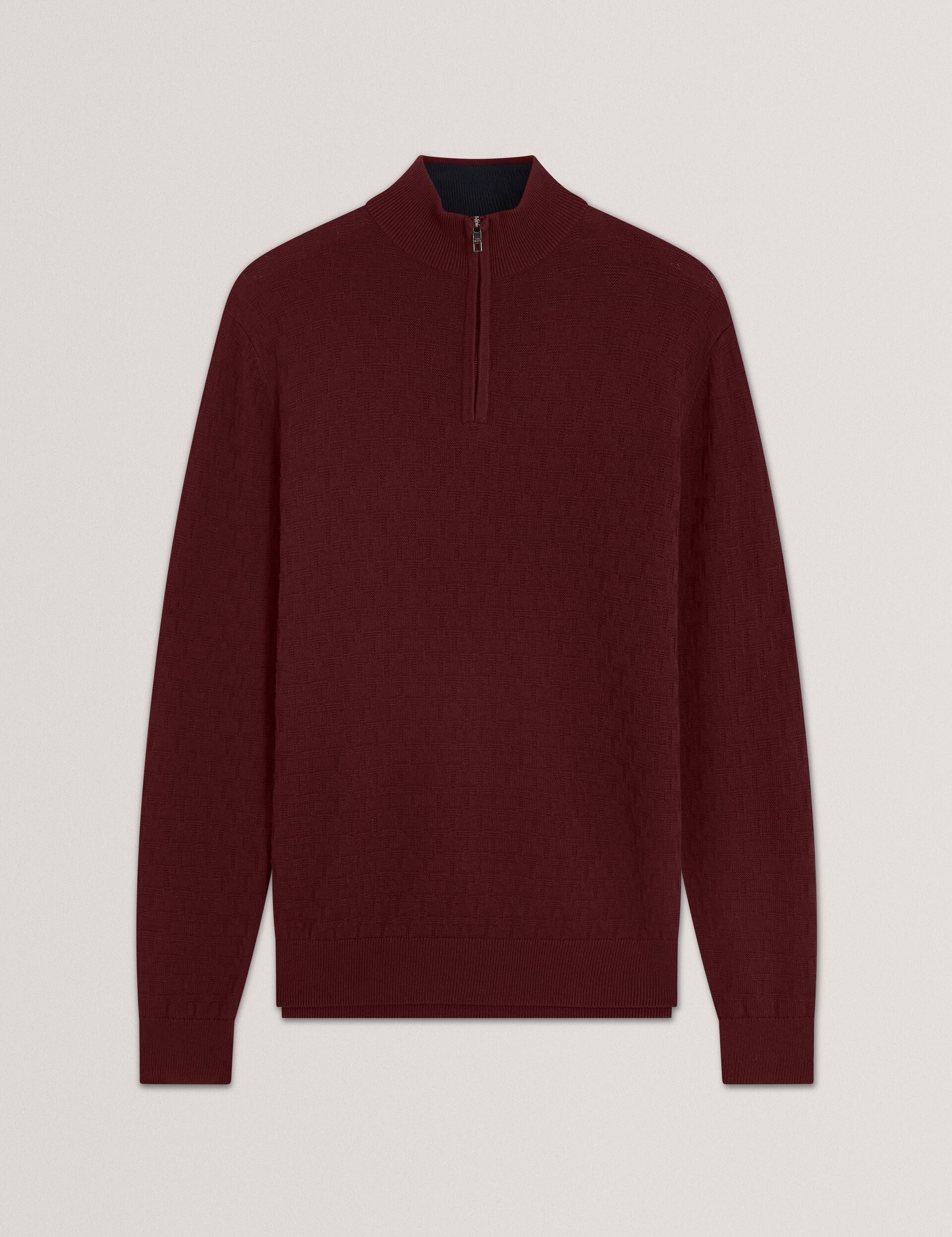 Branded Texture Zip Neck Jumper
