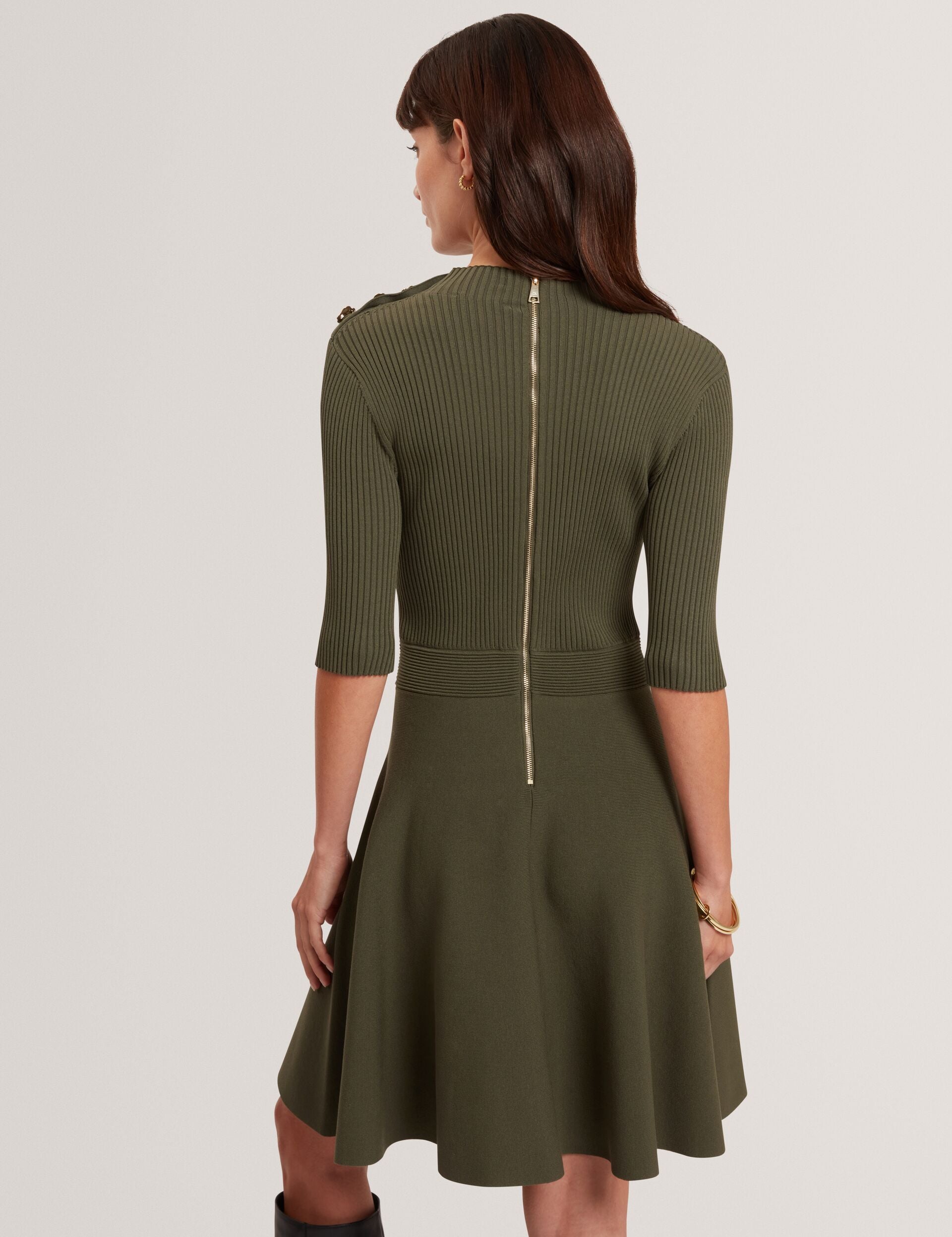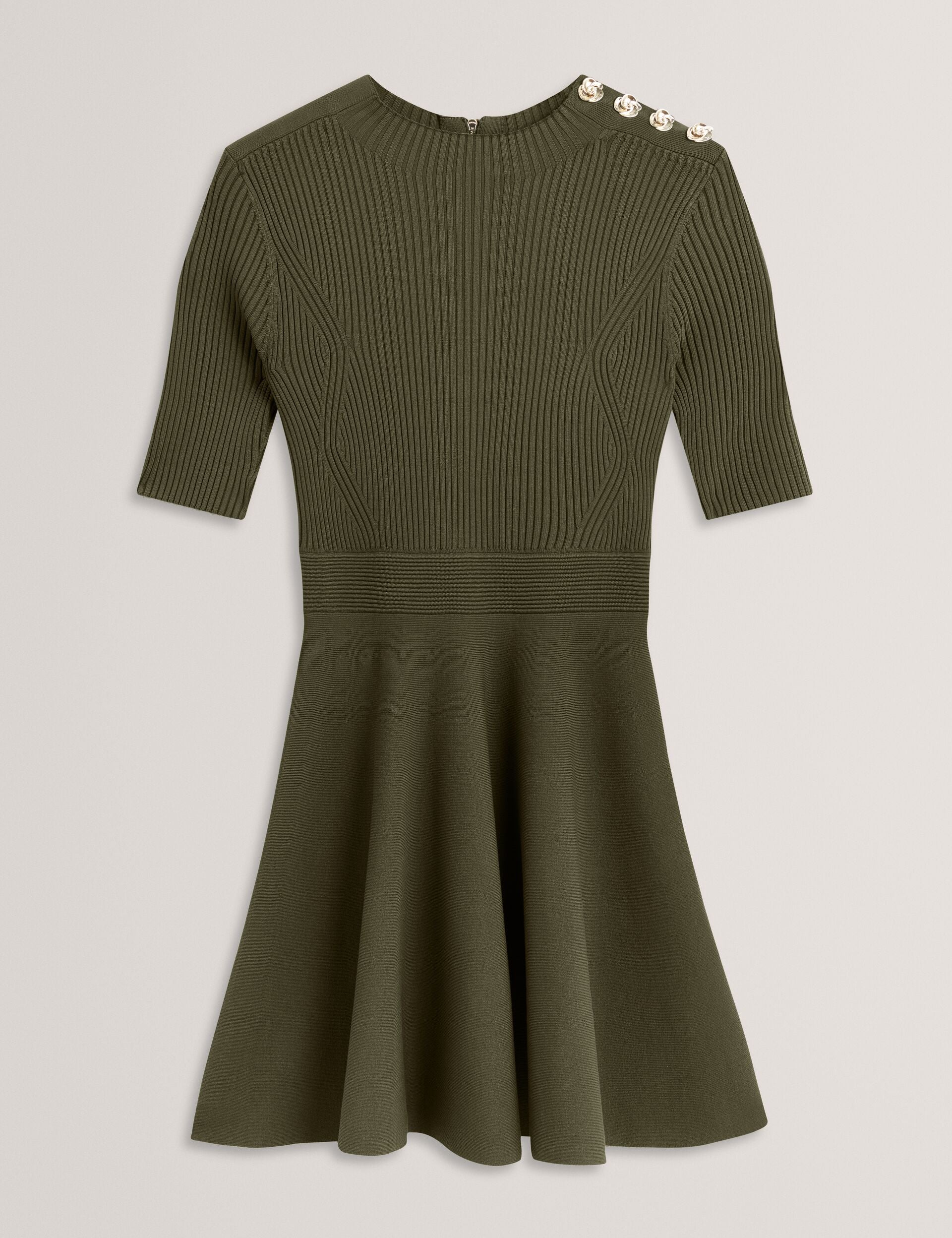 Ribbed Skater Dress With Rose Buttons