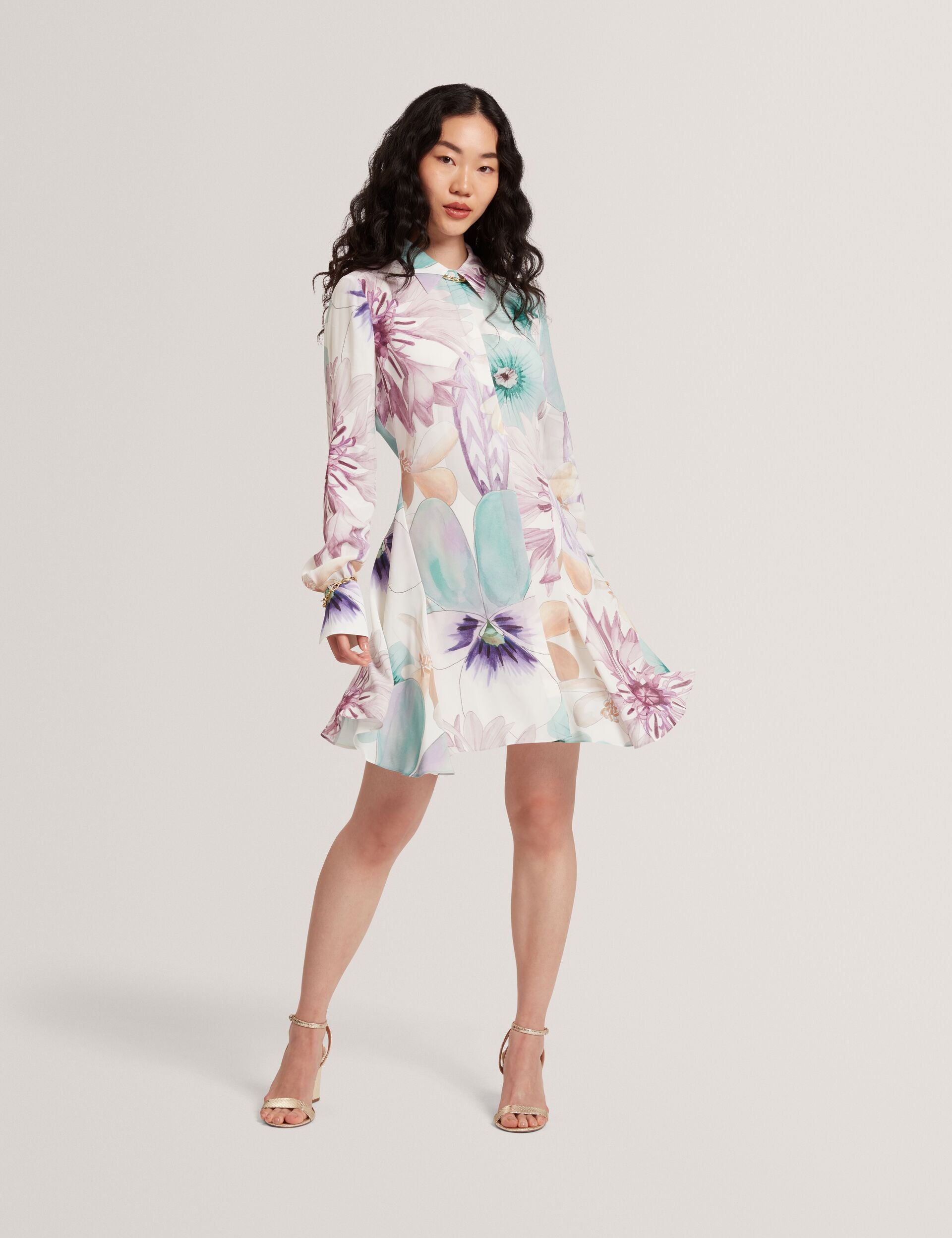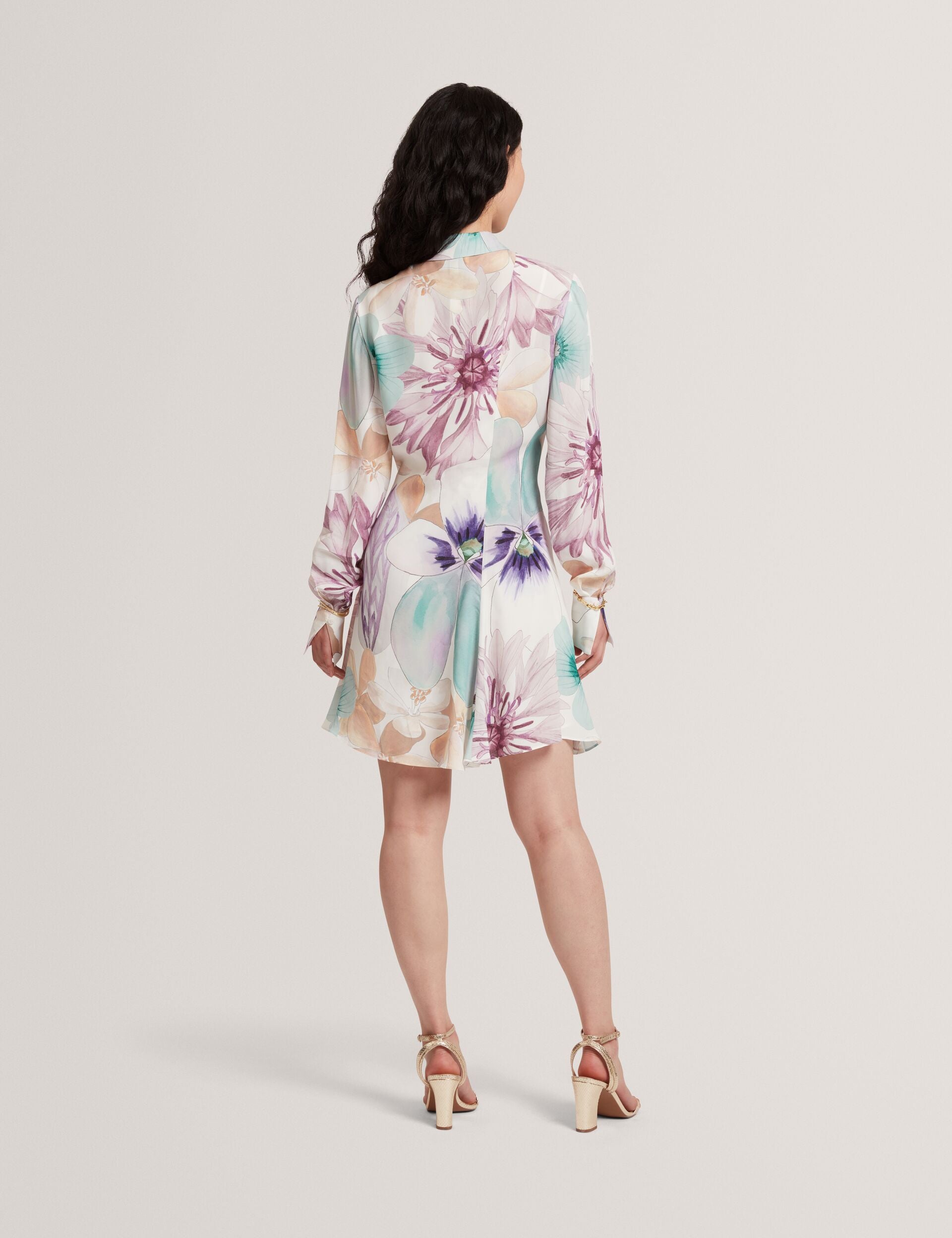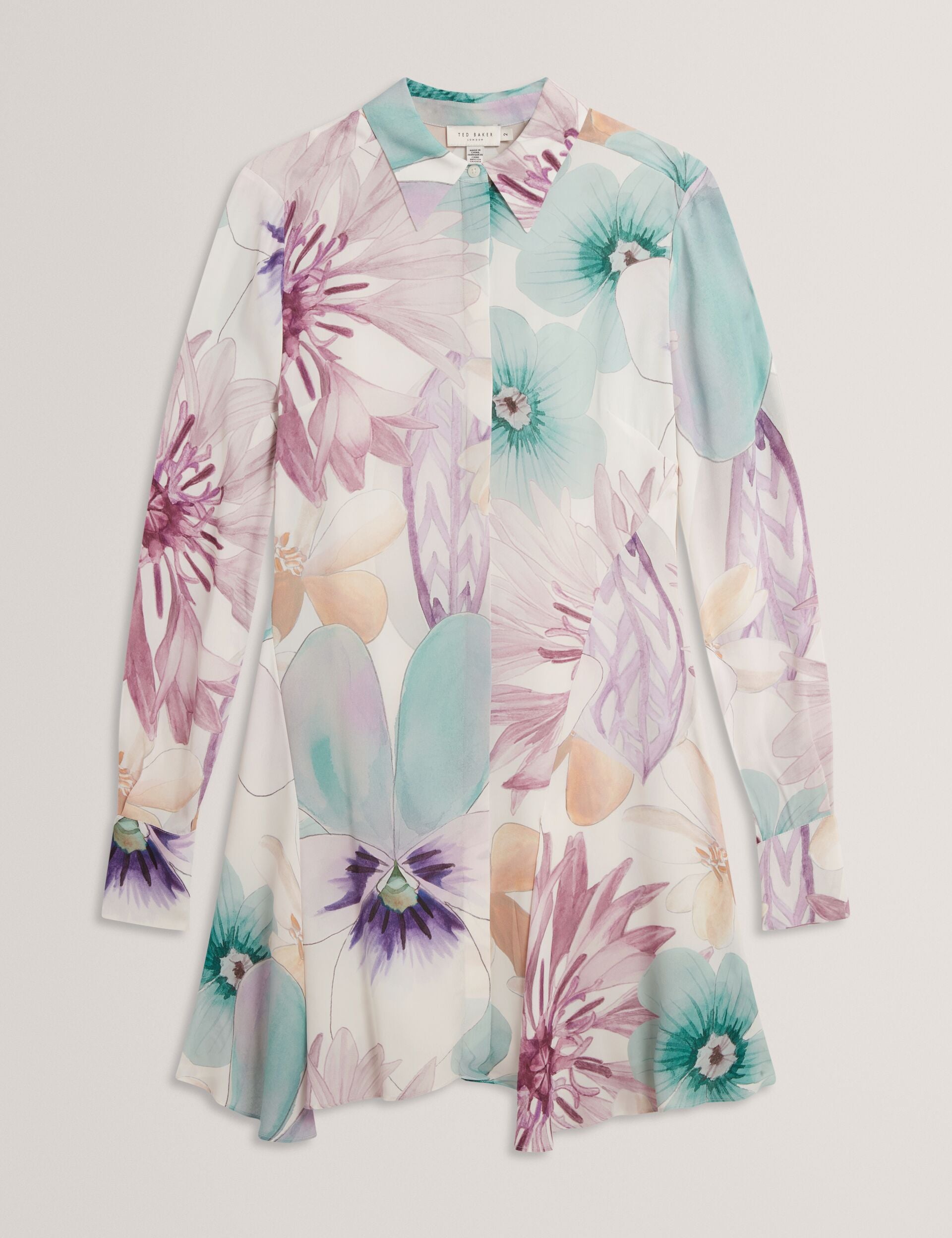 Pastel Floral Print Mini Shirt Dress