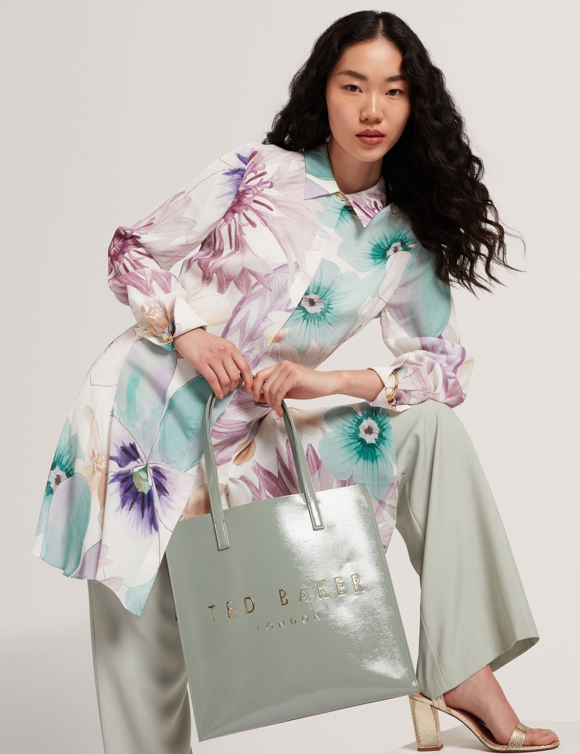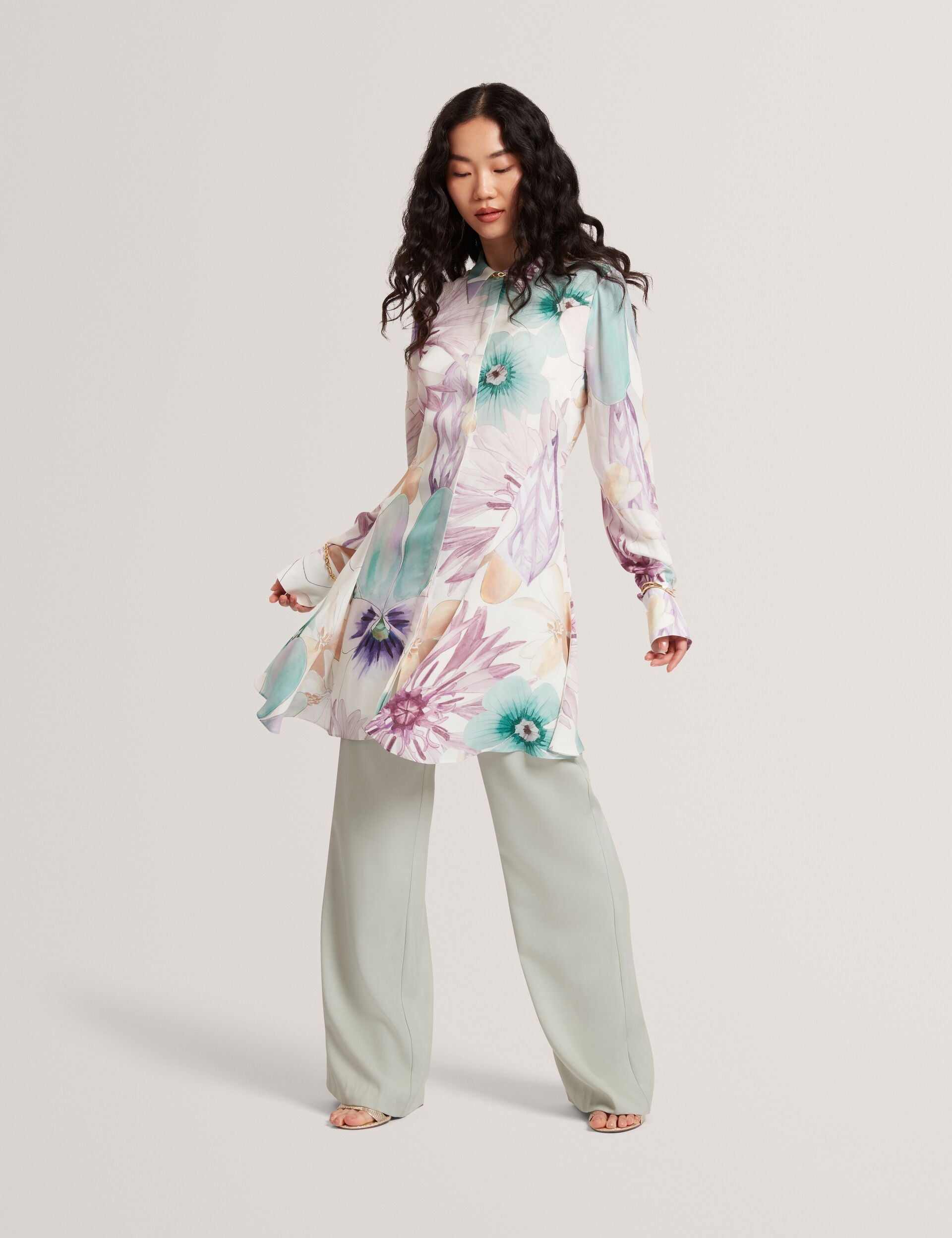 - Flowy skirt with curved hem