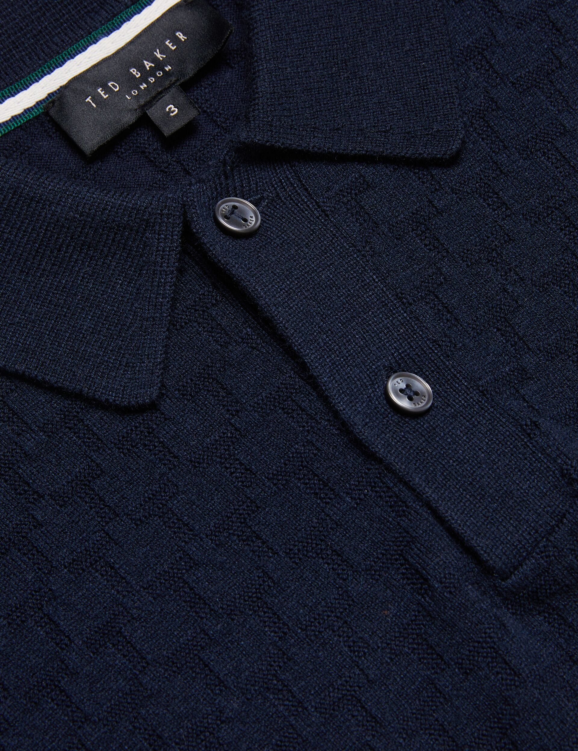 - Lewis mesure 1,88 m et porte du bleu marine chez Ted (taille 3).