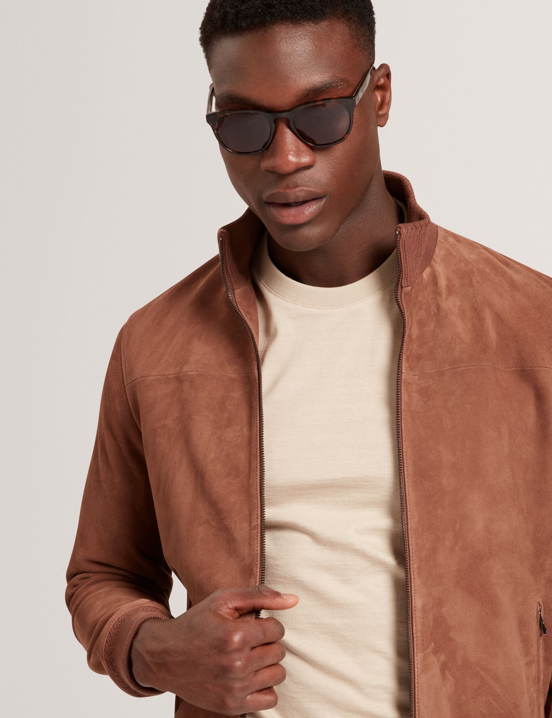- Chris mesure 1,87 m et porte du marron foncé en taille 3 chez Ted.