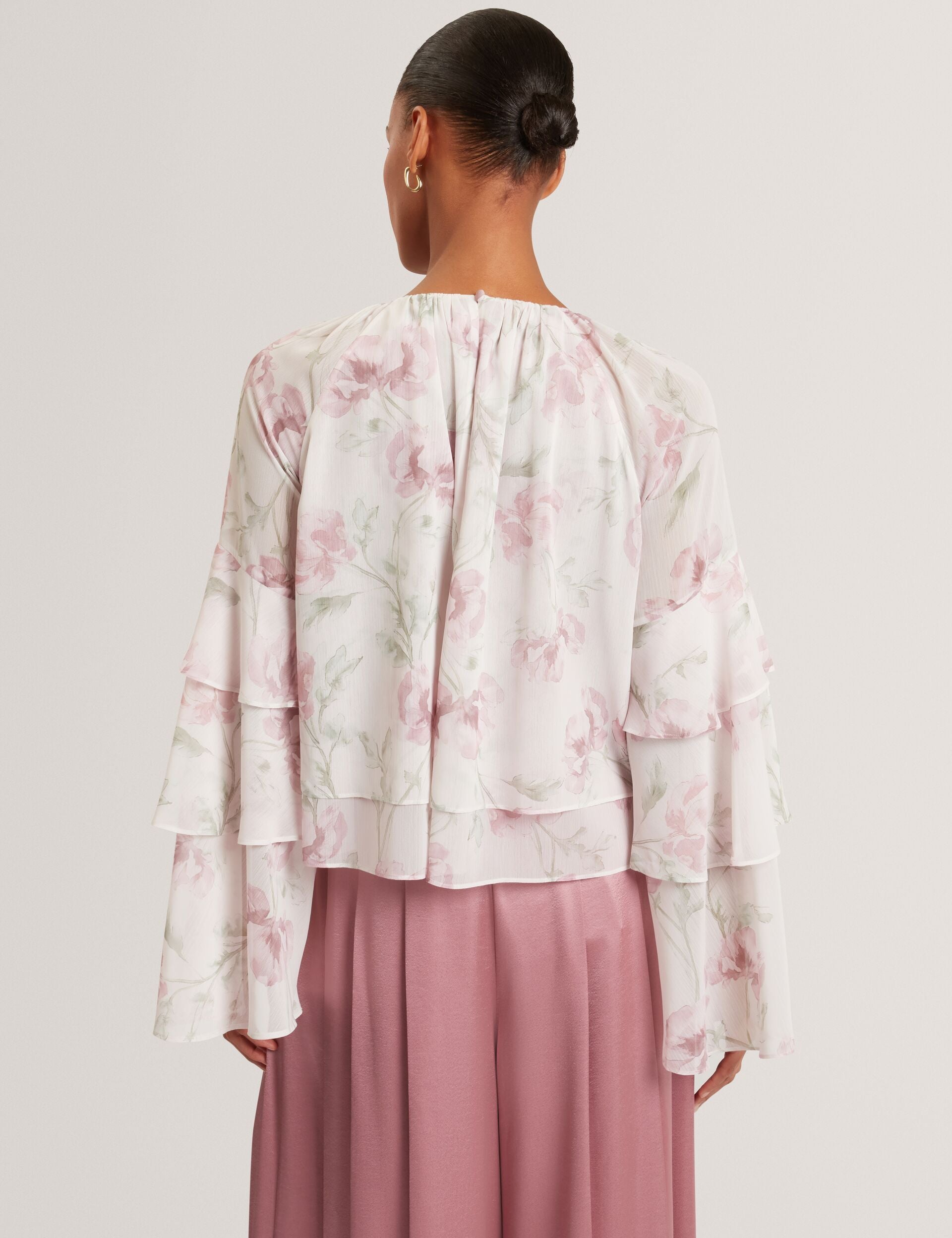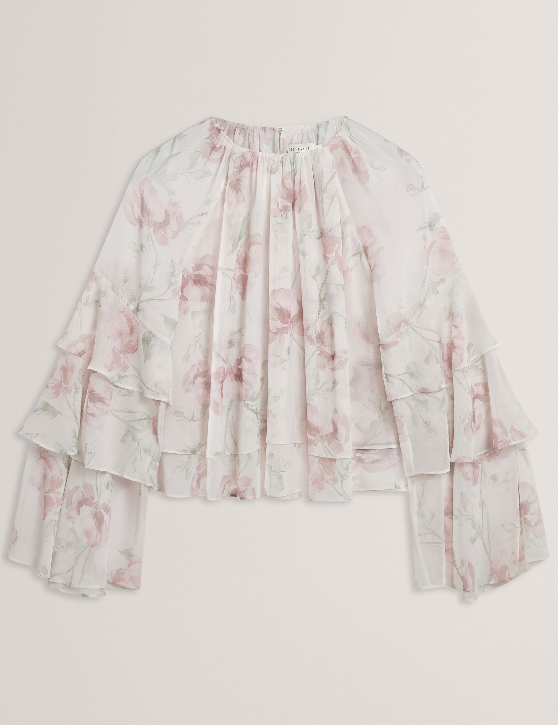 Rose Print Frilled Long Sleeve Top