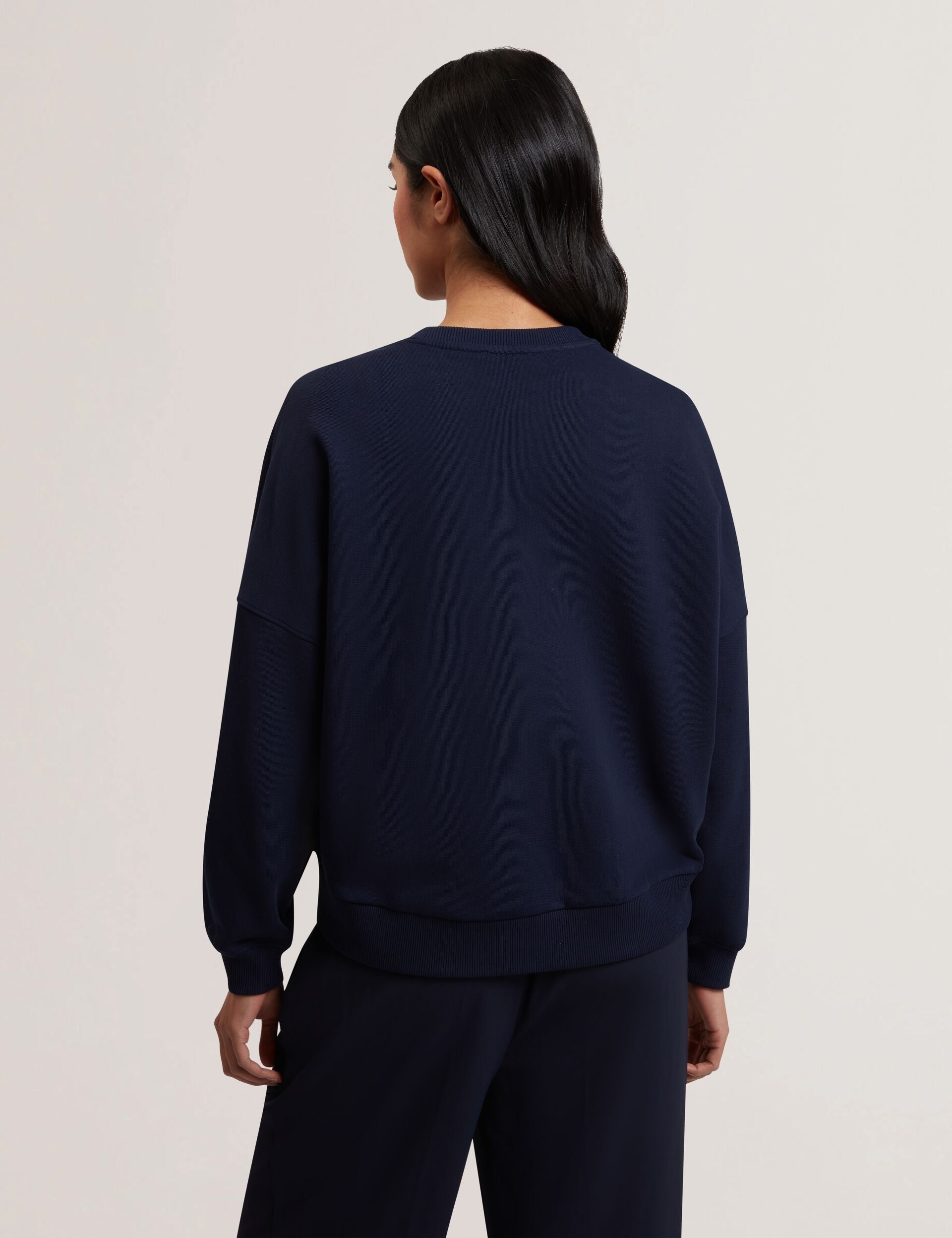 - May mesure 1,74 m et porte du bleu marine en taille 2 chez Ted.