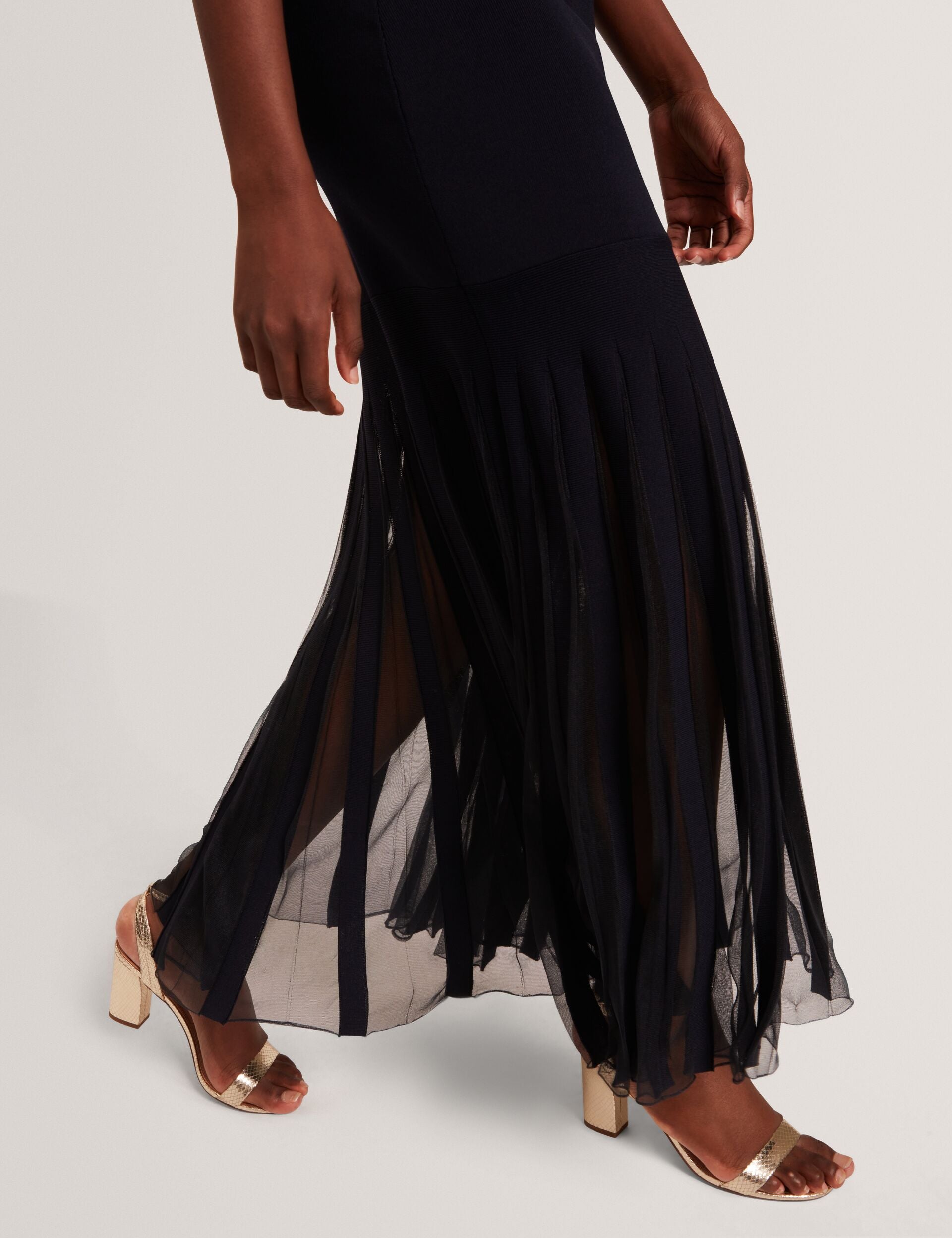 Bardot Bodycon Knit Dress With Sheer Pleated Hem