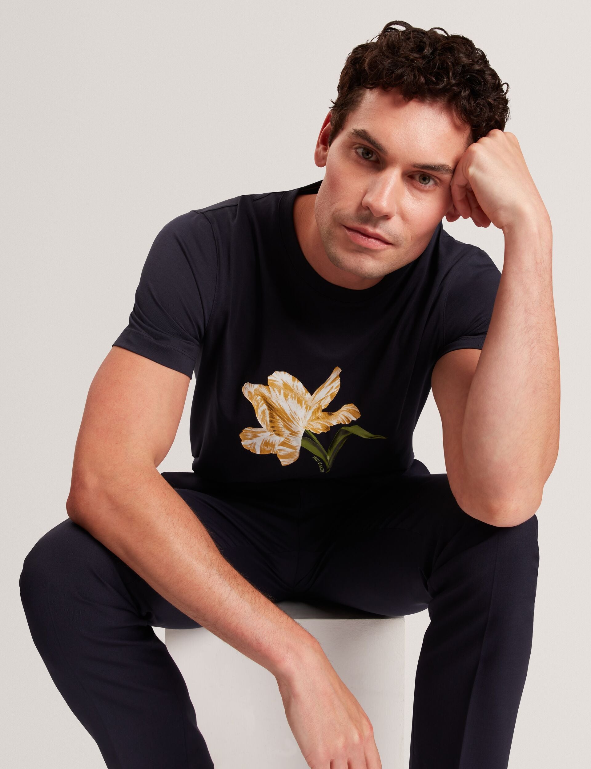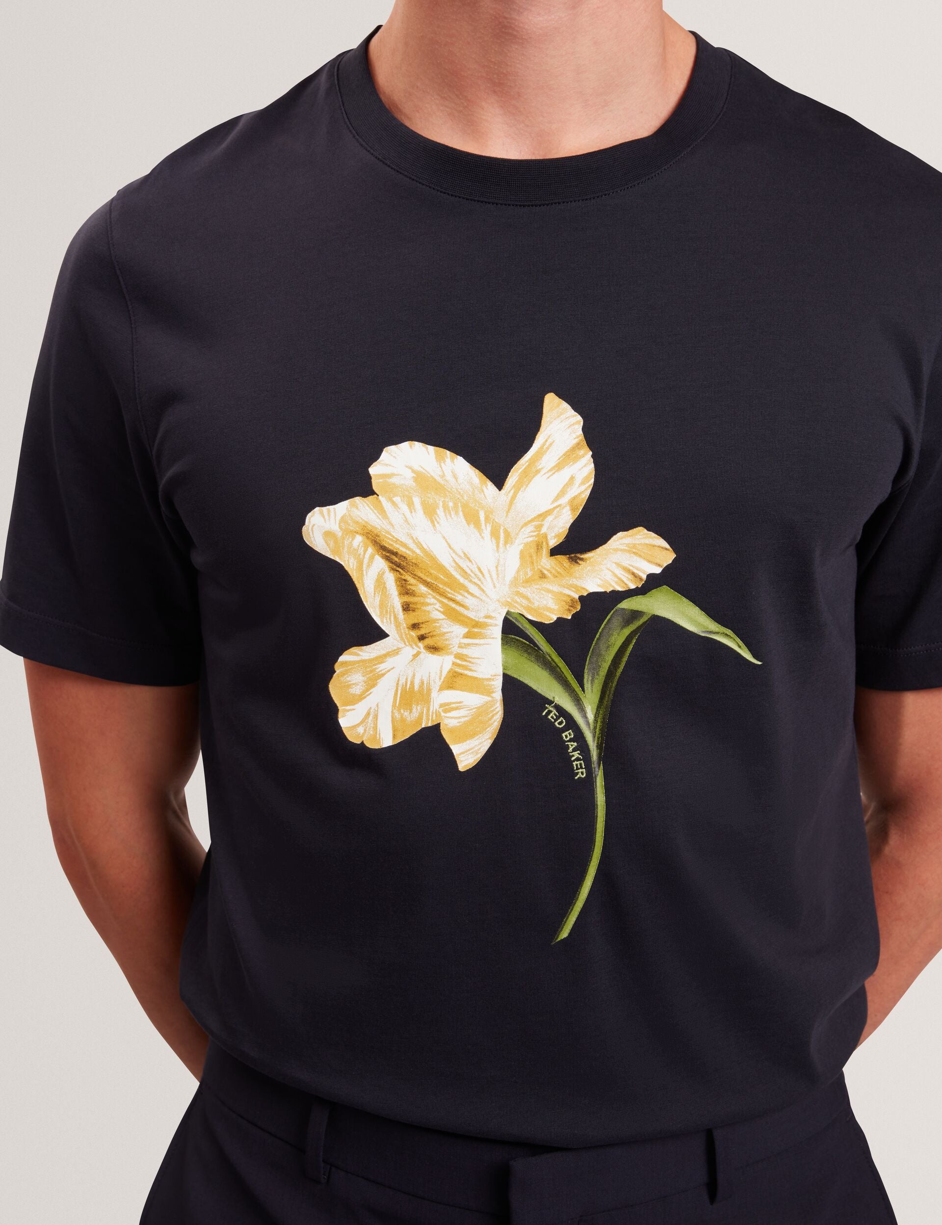 We've added a blooming floral graphic to this classic crew neck tee, splashing it with soft colour that contrasts the deep navy backdrop for instant elevation. Wear TALYSSA with chinos and tailored trousers to mix up your everyday attire.