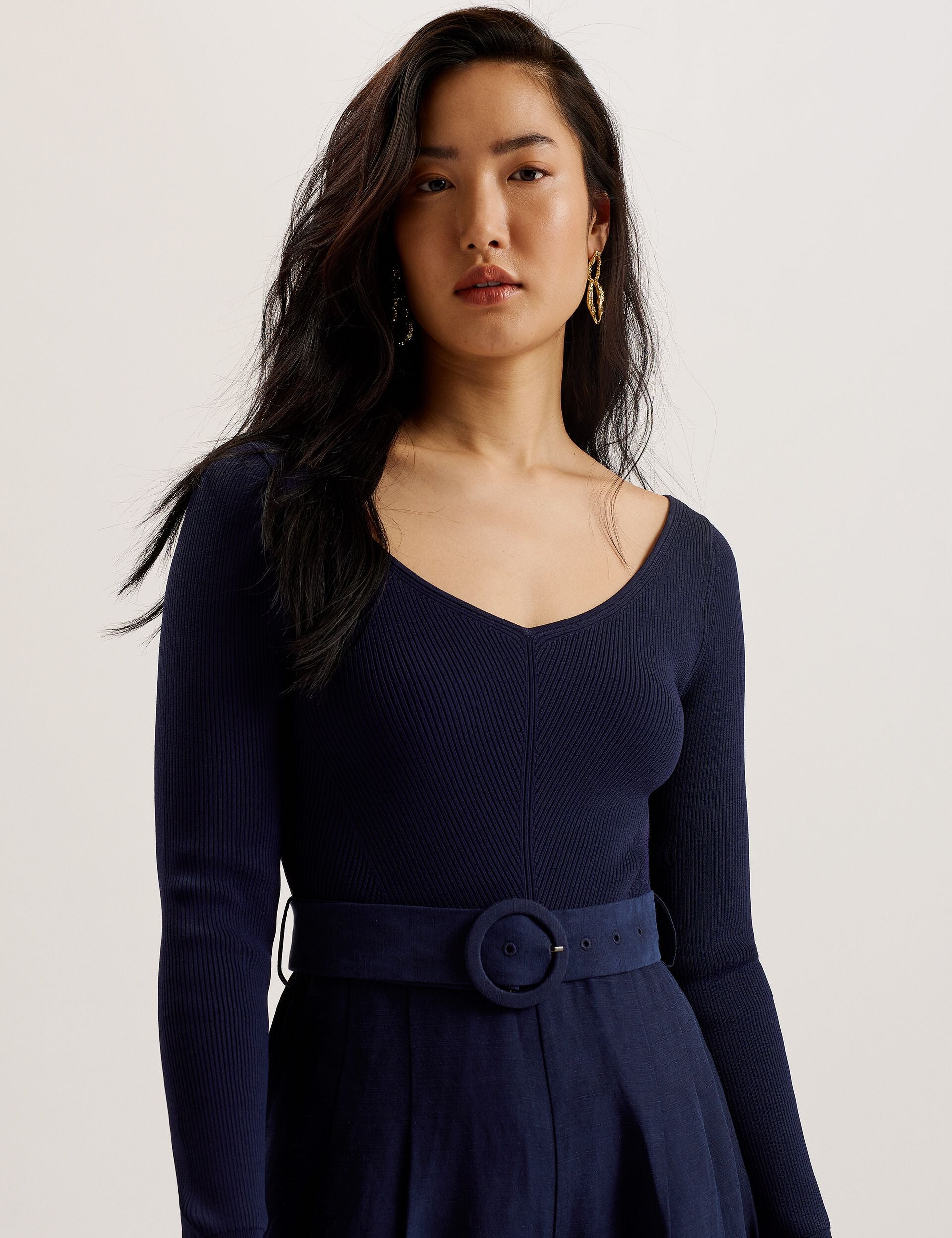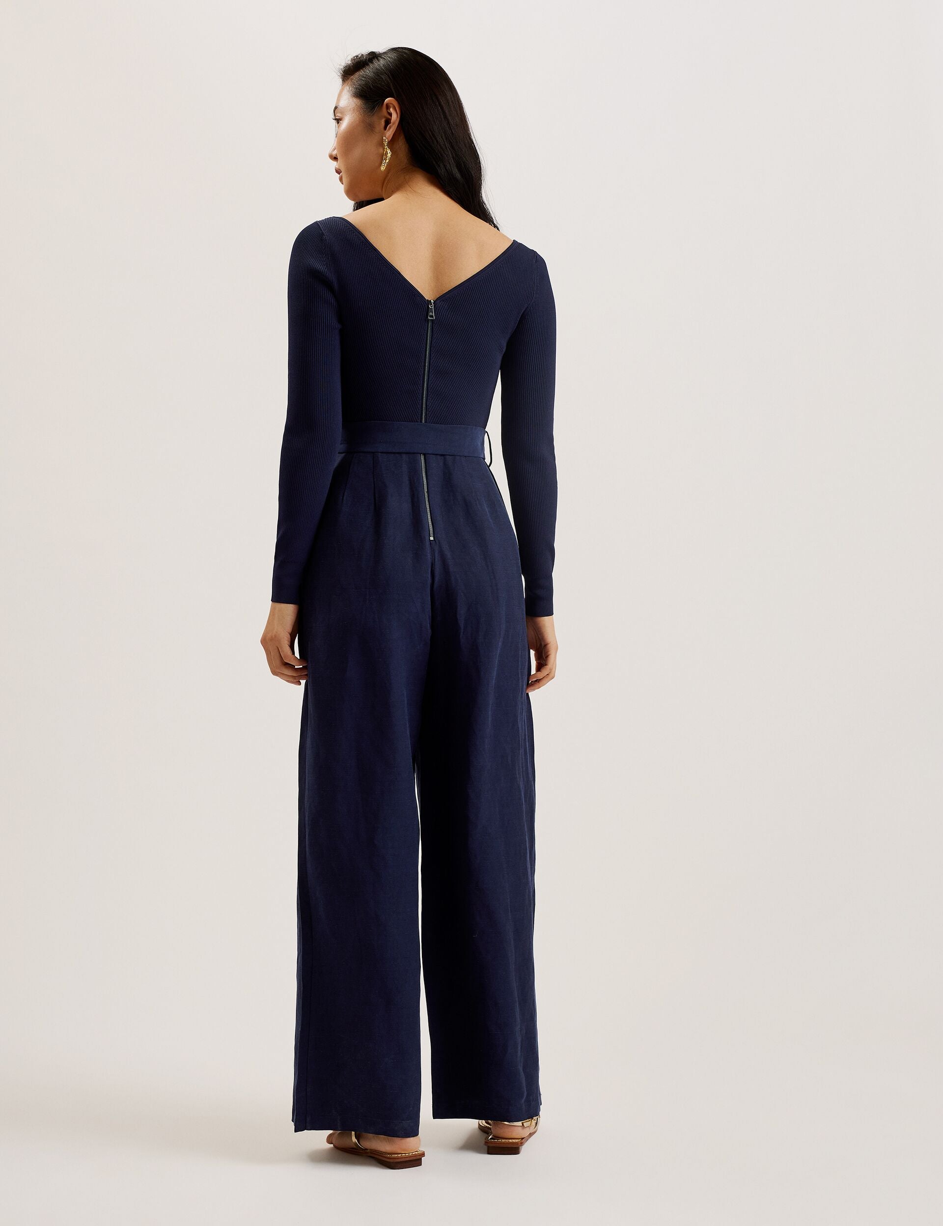 Reach for the AGATEA jumpsuit when you're looking for effortless style. The flattering knit bodice is cut with an elegant off-shoulder neckline, and paired with linen blend wide leg trousers that introduce both texture and volume. Keep it laid back with ballet flats or dress it up with heeled sandals for special occasions.
