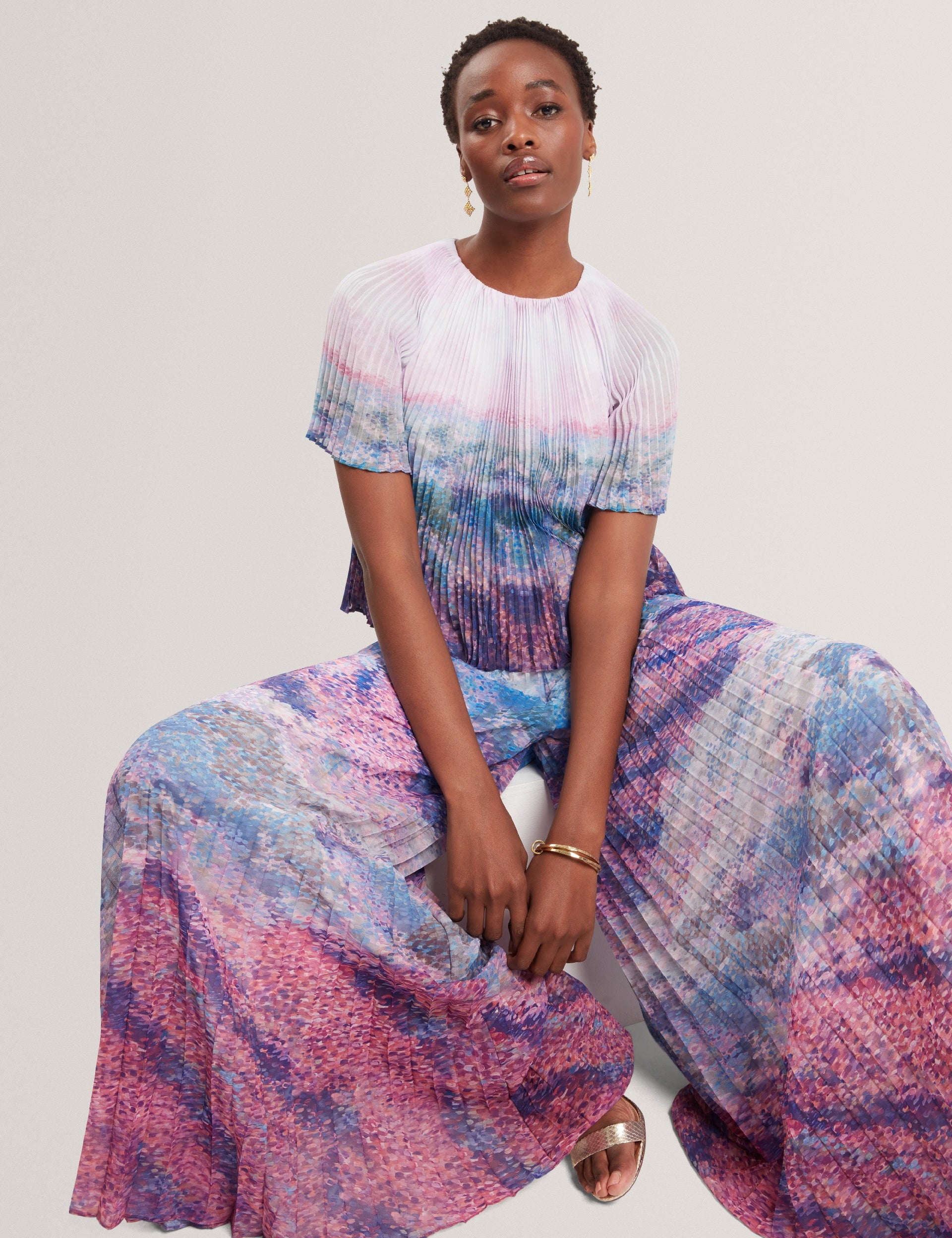 - All-over sunray pleats