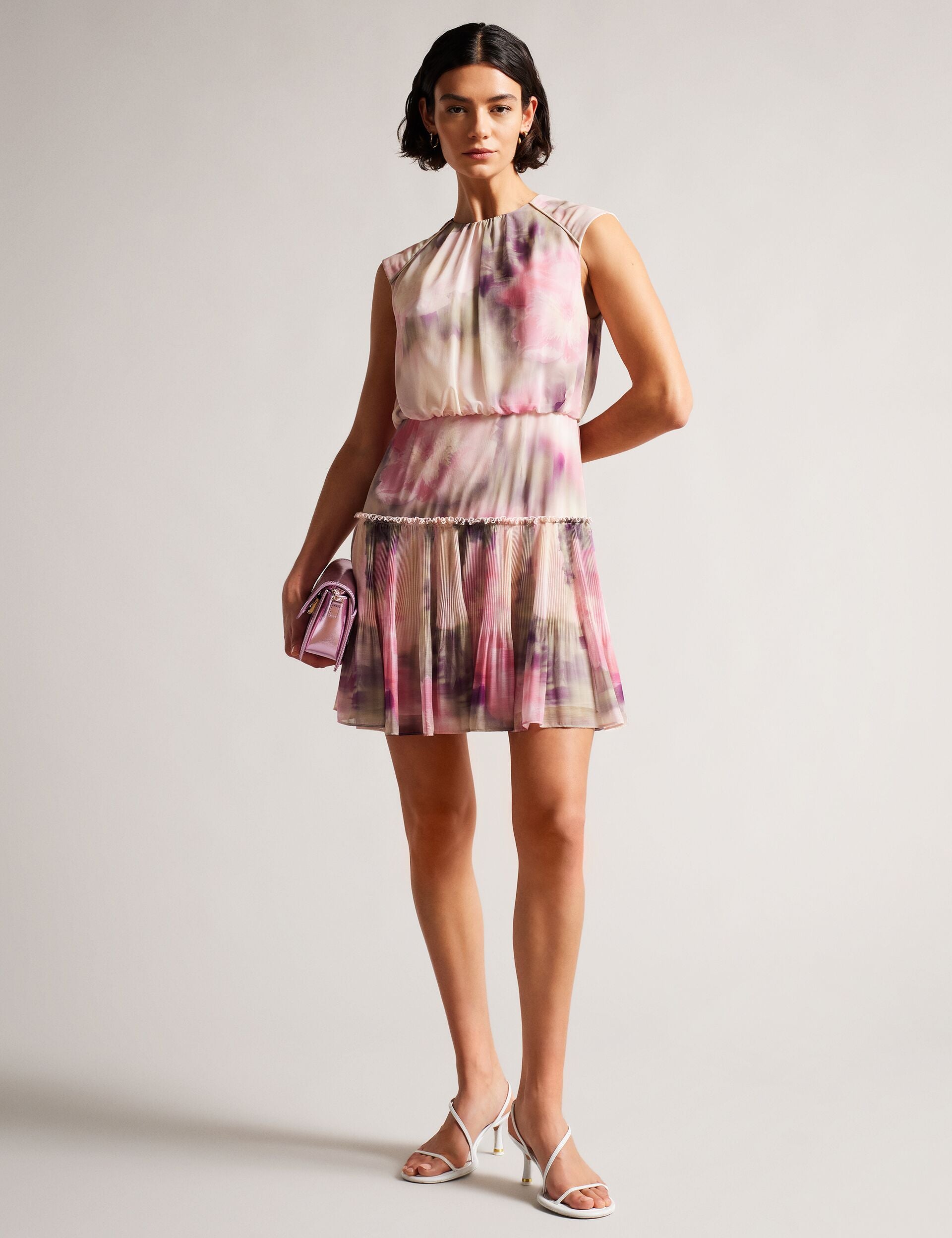 The AMORITA mini dress is the perfect way to flaunt your spring-time style. The tiered skirt, sleeveless design, and blurred floral print make this dress a must have. Pair it with your favourite wedge sandals for a chic brunch look.