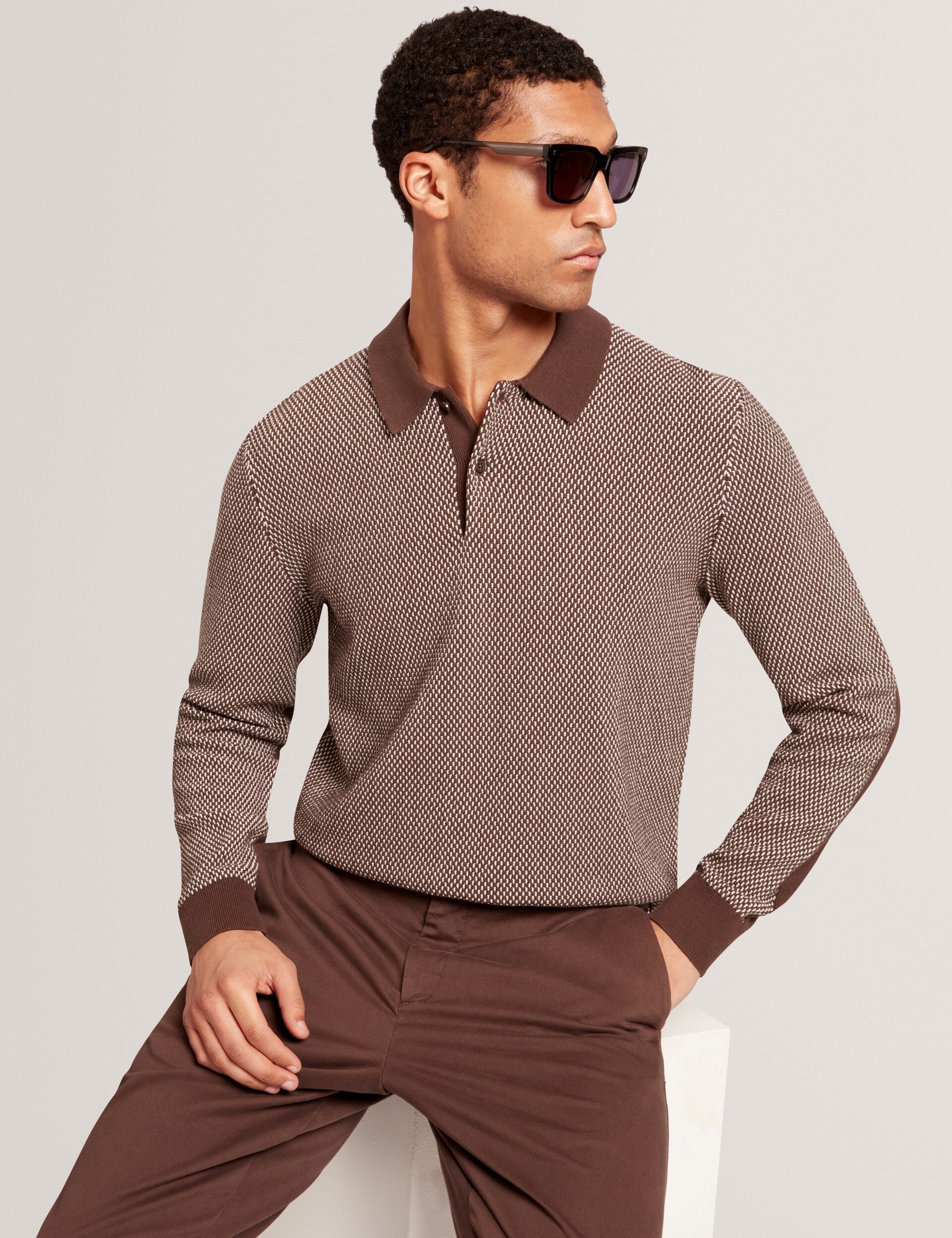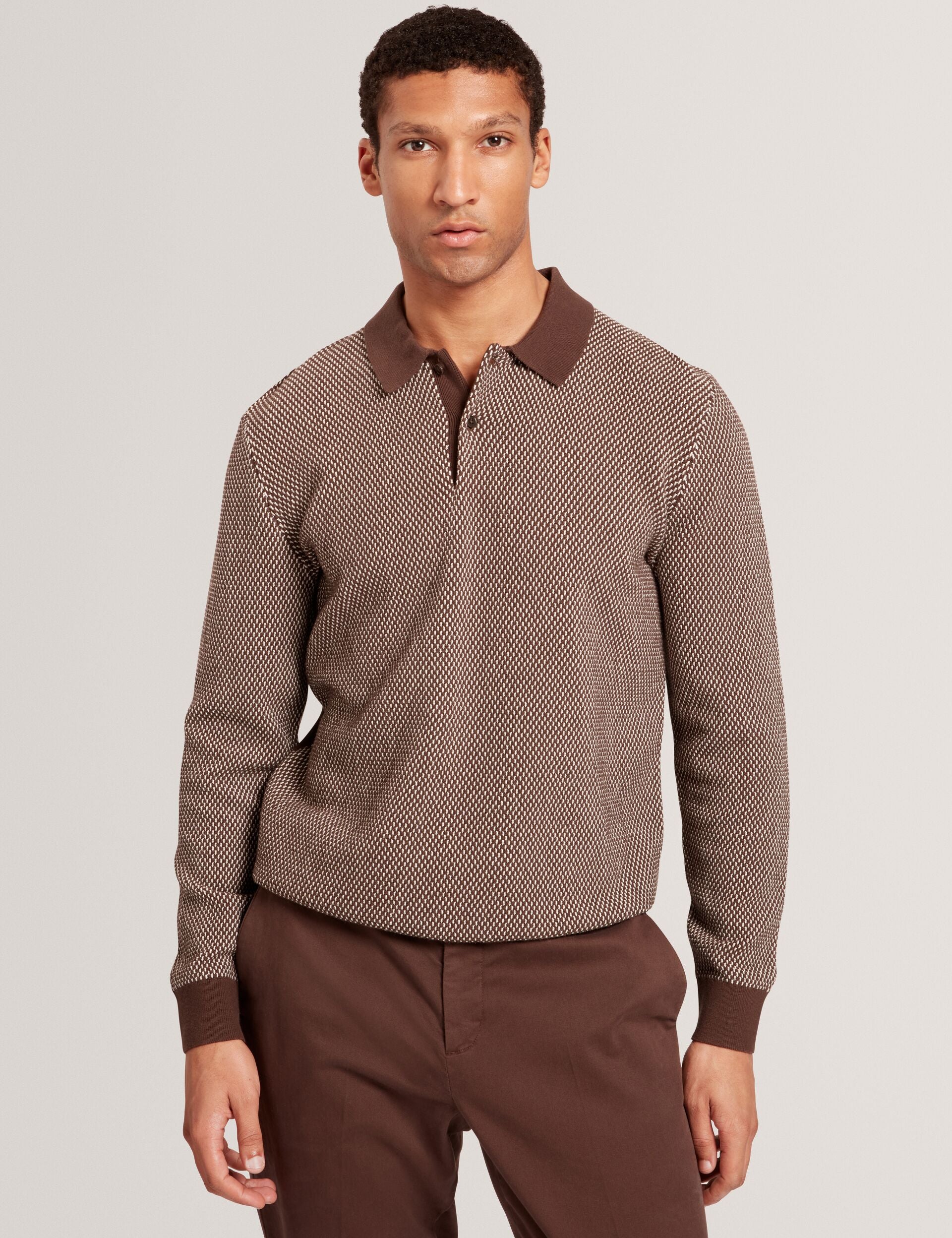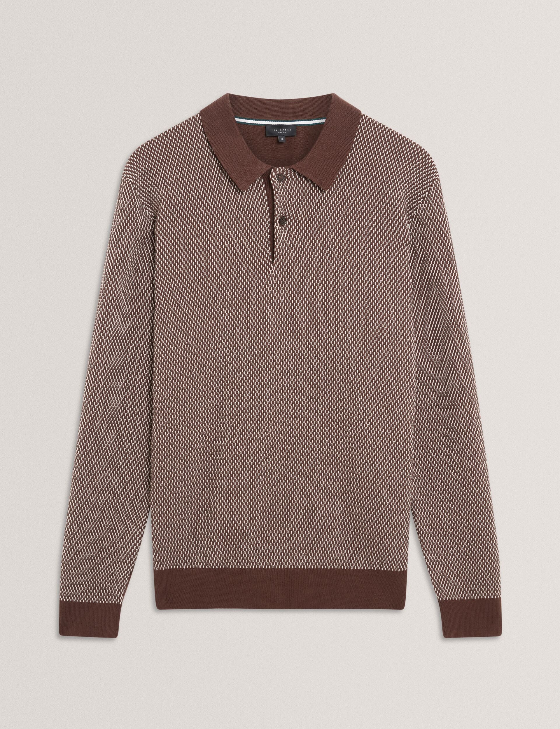 Textured Front Knitted Long Sleeve Polo Shirt