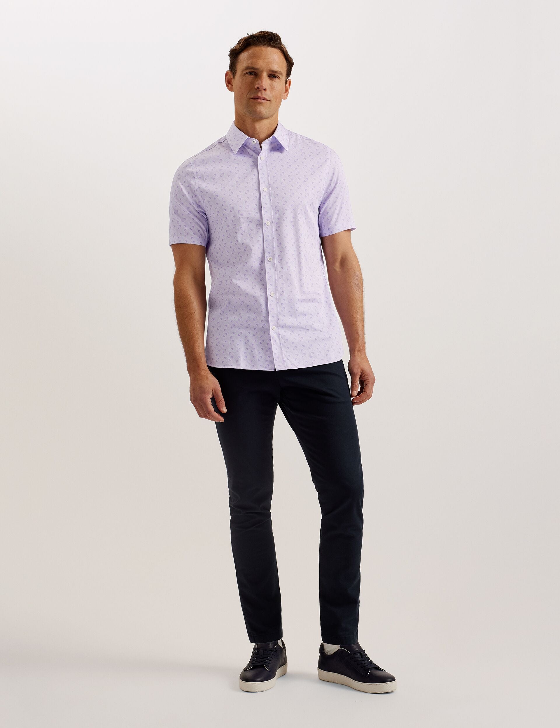 Pull together the perfect smart casual fit with BARHILL. This shirt has a more relaxed feel with its short sleeves and curved hem, whilst the classic collar and button fastenings will keep you looking sharp. Boasting a two tone geometric print, it will liven up your favorite pair of jeans or tailored shorts to make them look a little dressier.