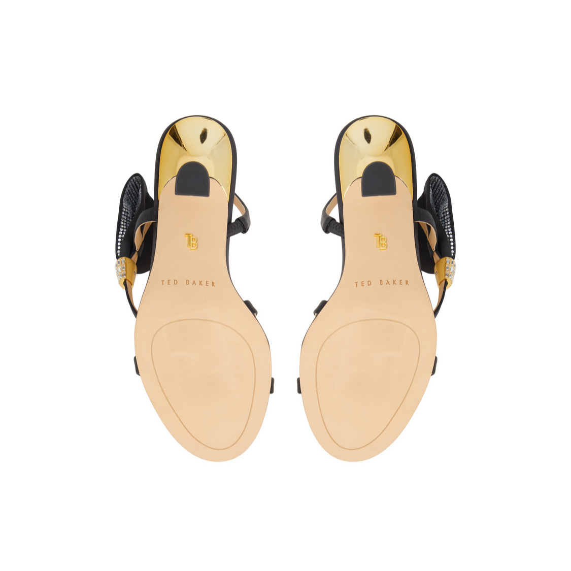 - Flared mirrored gold heel