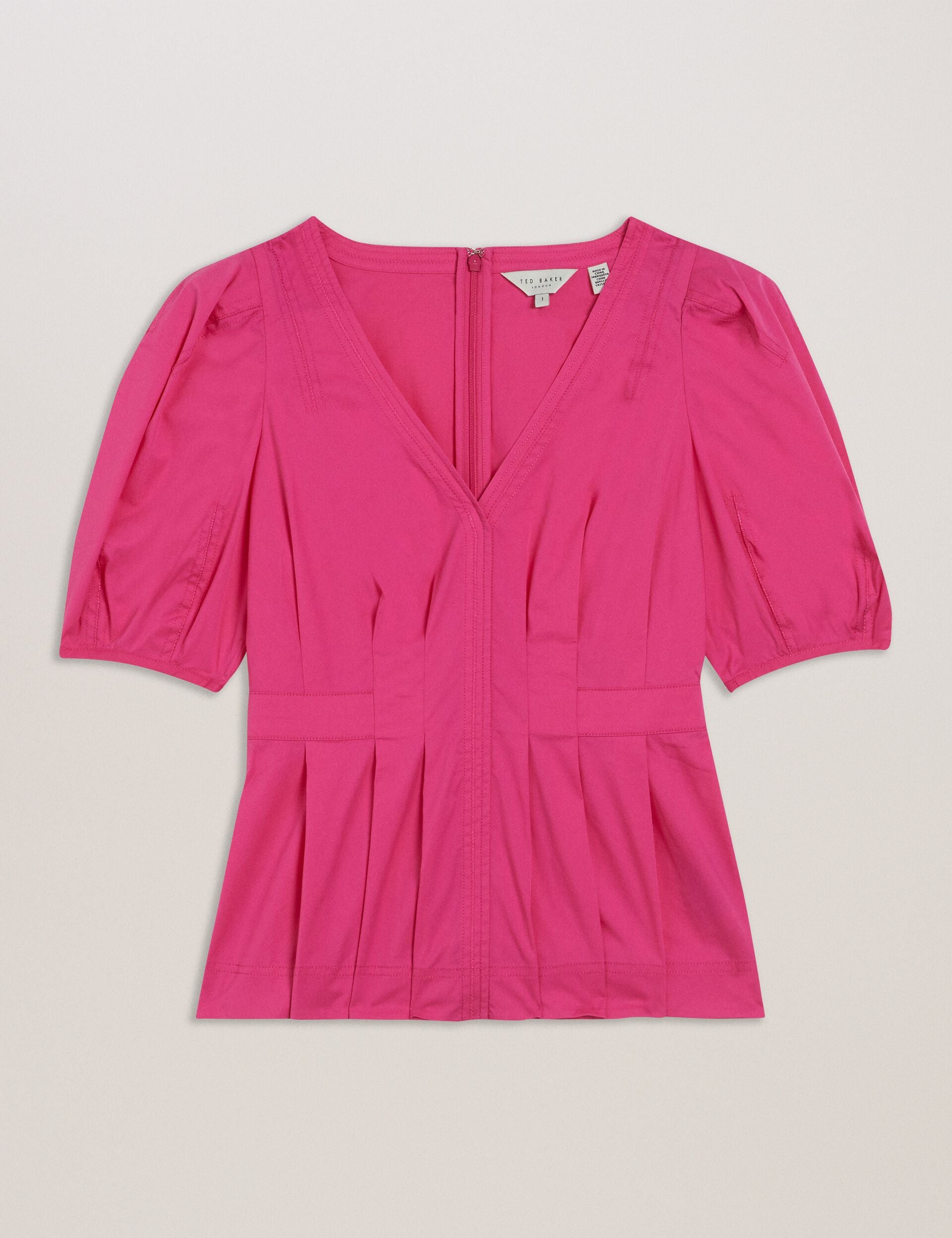 Give your looks a playful structure with this BURDUR top. Boasting a flattering peplum shape, it’s fitted at the waist with pleats running through the bodice to exaggerate its silhouette. The sleek V neckline is contrasted by half balloon sleeves, finished with top stitch details all over for that modern feel.