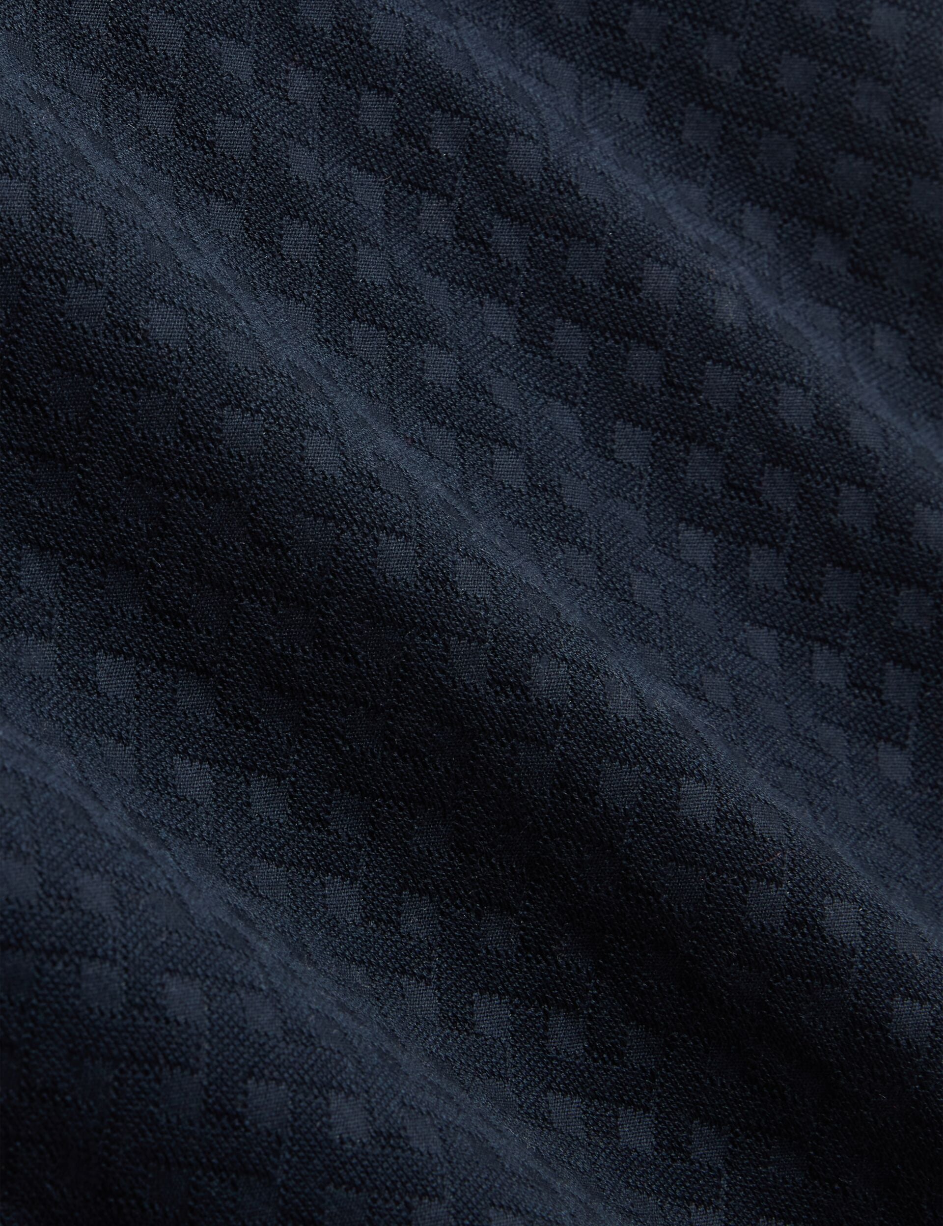 COPHEN makes a sharp addition to your polo collection. Our signature T texture gives it that designer twist, and we've trimmed the collar with a stand-out single stripe. Made from stretch cotton fabric, this piece is complete with a modern zip neck.