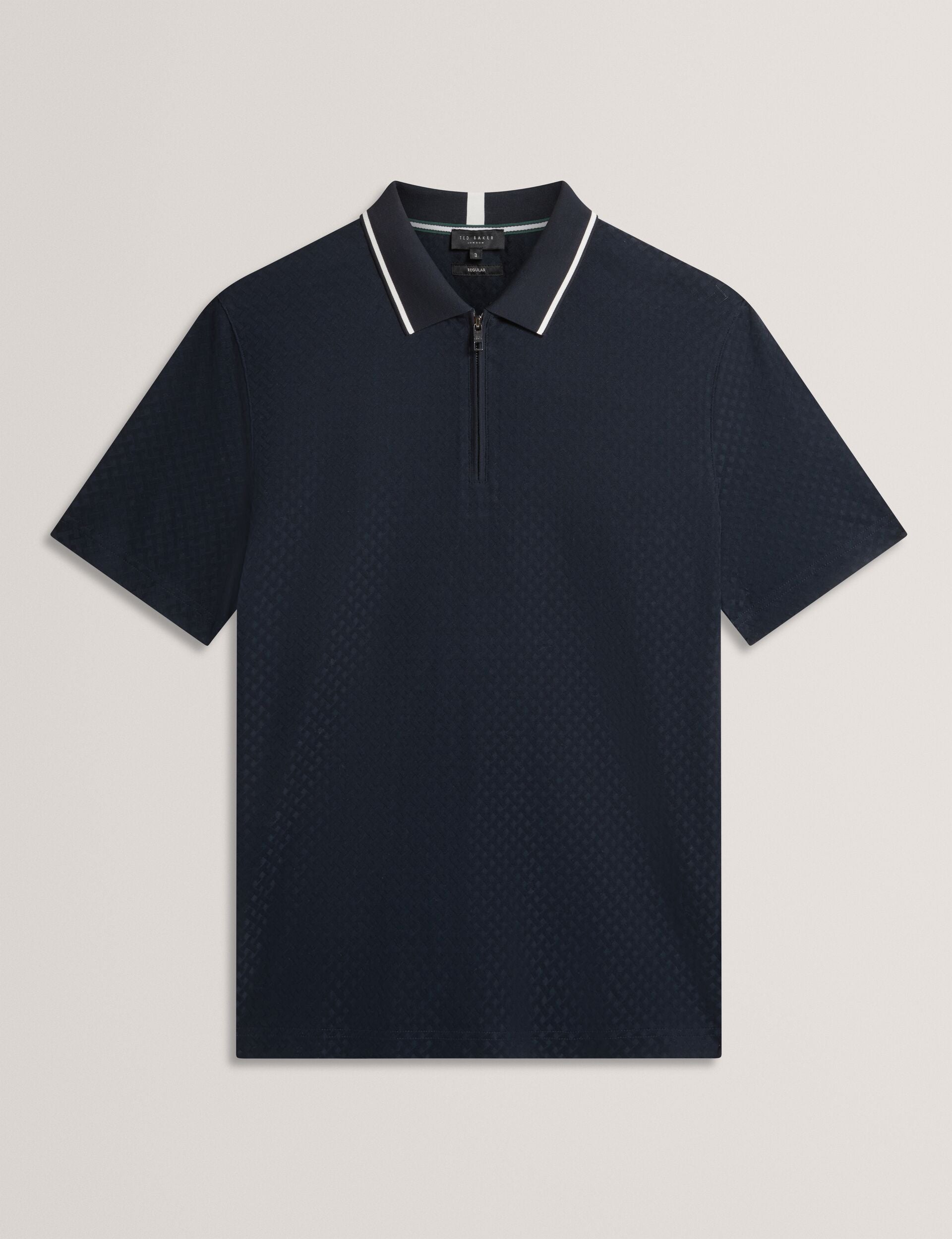 T Texture Zip Neck Short Sleeve Polo