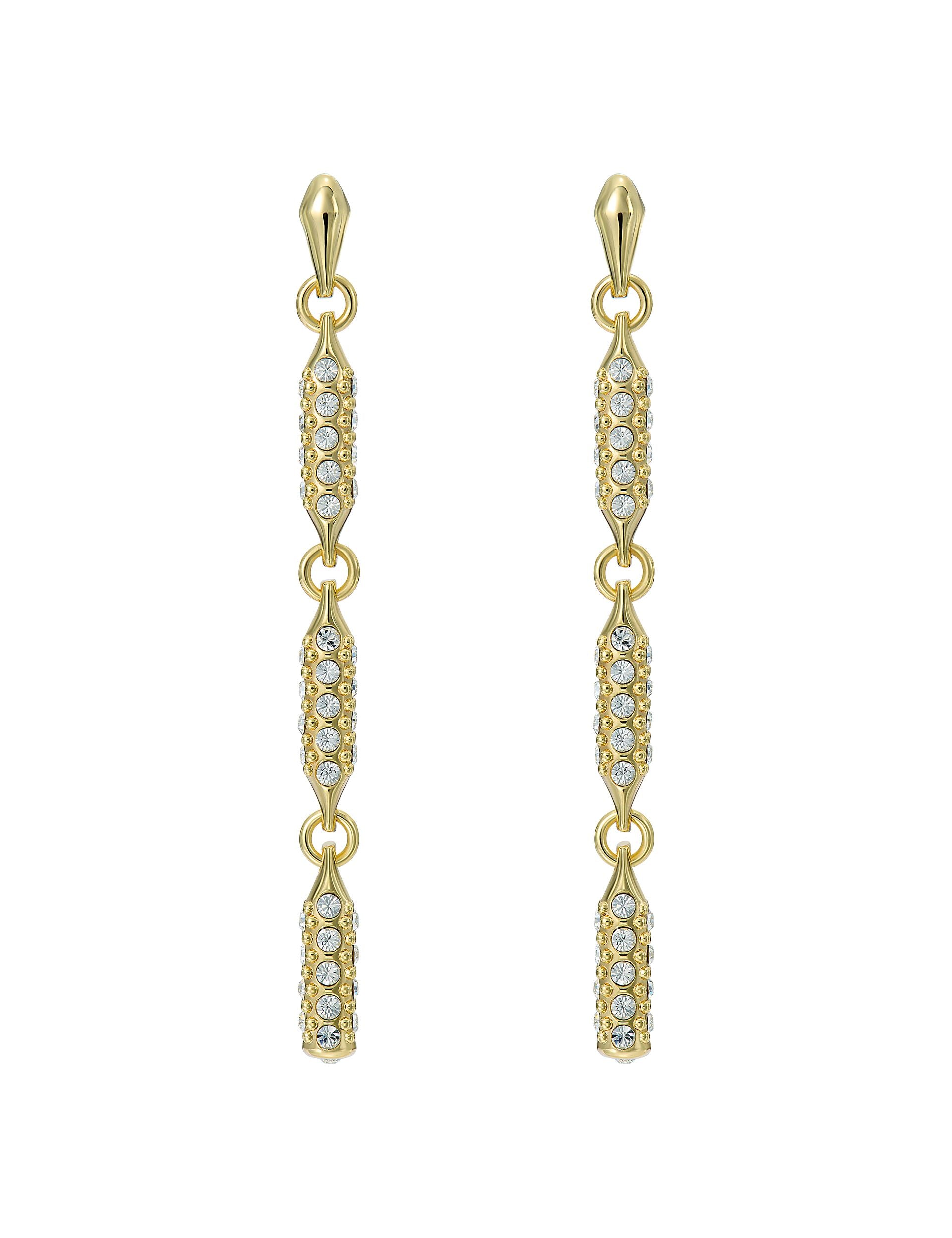 Elevate your look with Ted Baker's CORINNE Cosmic Crystal Drop Earrings. These elegant gold-tone earrings feature a cascading trio of slim, crystal-encrusted segments that catch the light with every movement. Designed with hypoallergenic posts for all-day comfort, they come packaged in a Ted Baker branded gift box—perfect for special occasions or adding glamour to your everyday style.