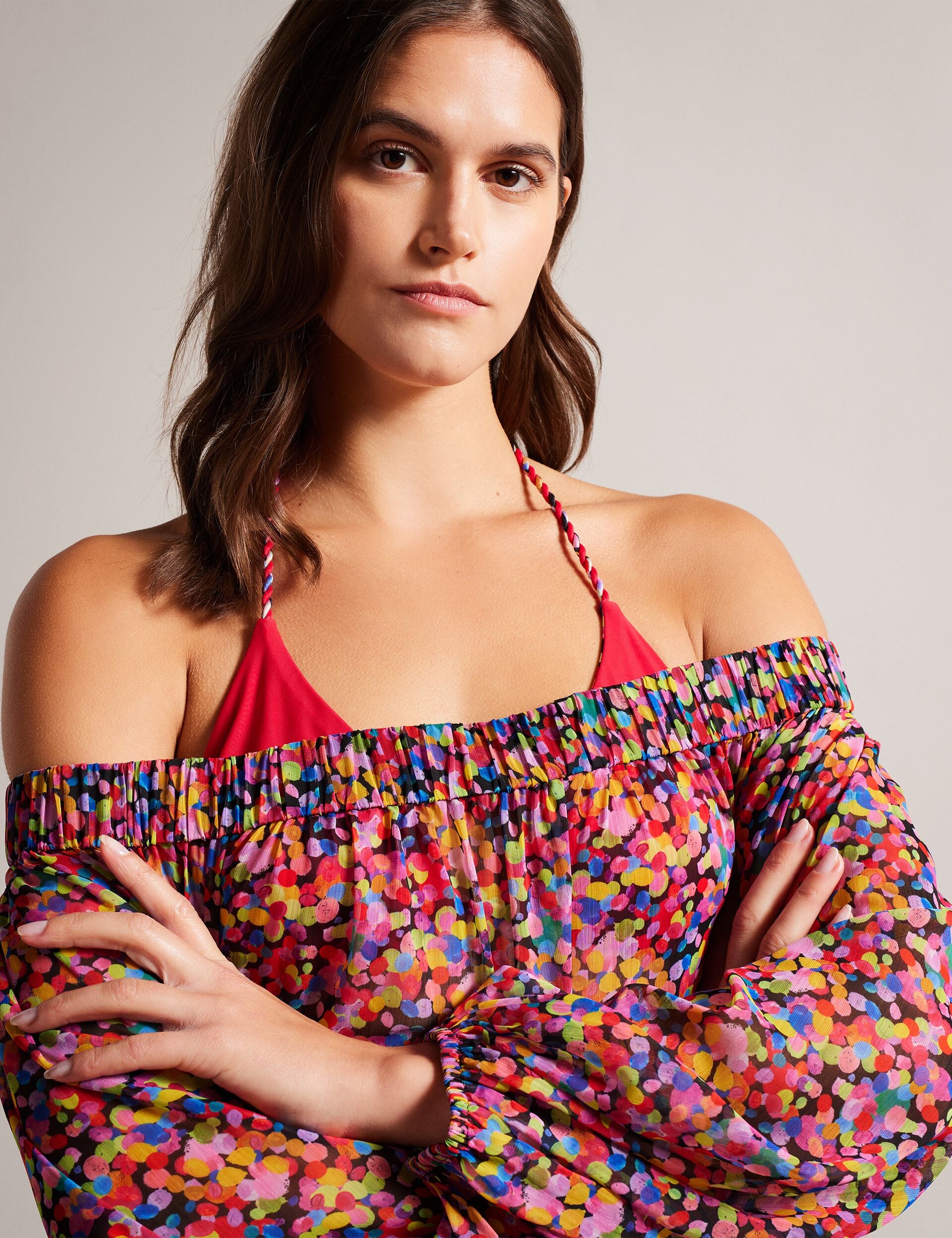The DANAEE cover-up is the perfect addition to your next pool party. Its flowy design, combined with the elasticated neckline and long sleeves, ensures easy and comfortable wear while providing ample sun coverage. Plus, our exclusive confetti print is sure to brighten up any look.