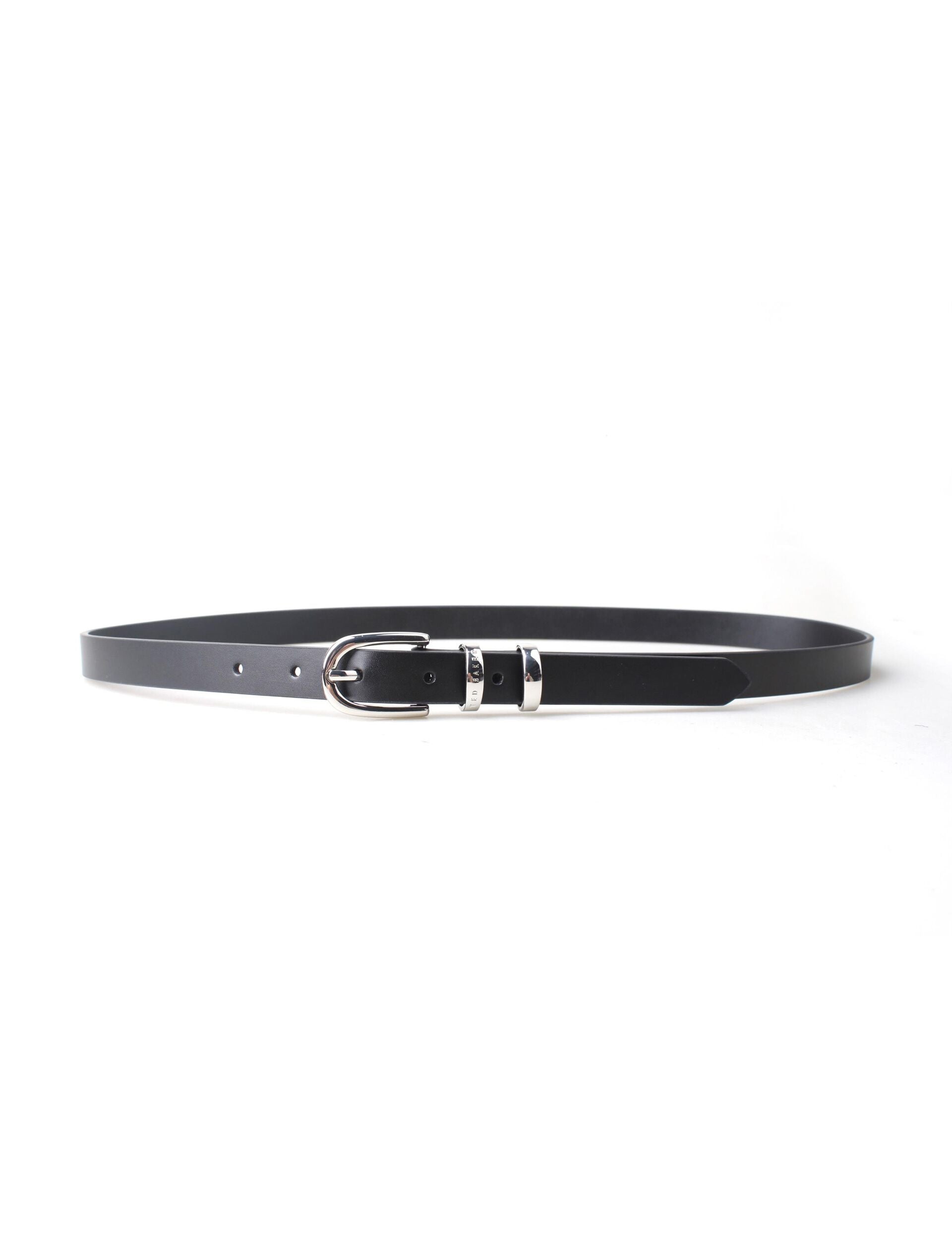 Elevate your waist-cinching game with this sleek narrow belt that brings effortless sophistication to any outfit. Crafted from smooth leather with distinctive metallic keeper details, this versatile accessory transitions seamlessly from workweek polish to weekend chic. The refined silhouette adds the perfect finishing touch to dresses, high-waisted trousers, or layered over blazers.