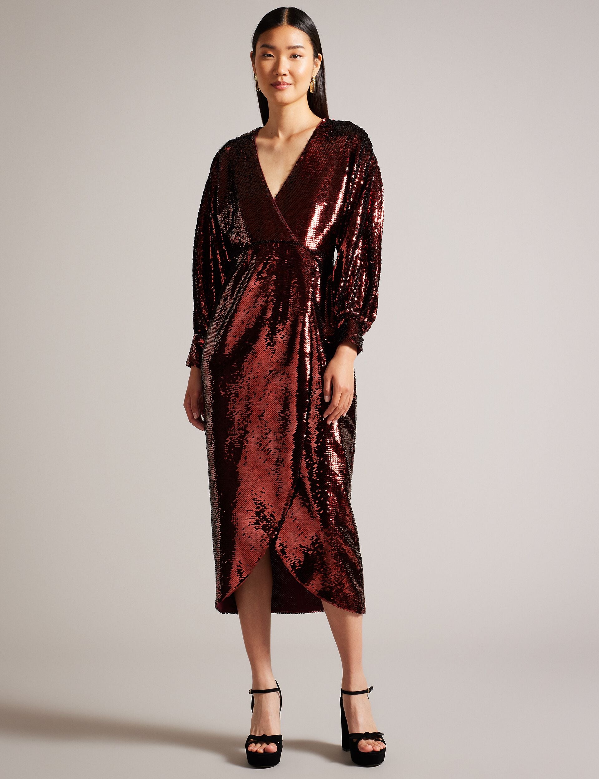Say yes to being best dressed with our EMALEEE dress. Its all-over sequins on make it a sight to behold from any angle, while the wrap front design adds a touch of effortless sophistication.