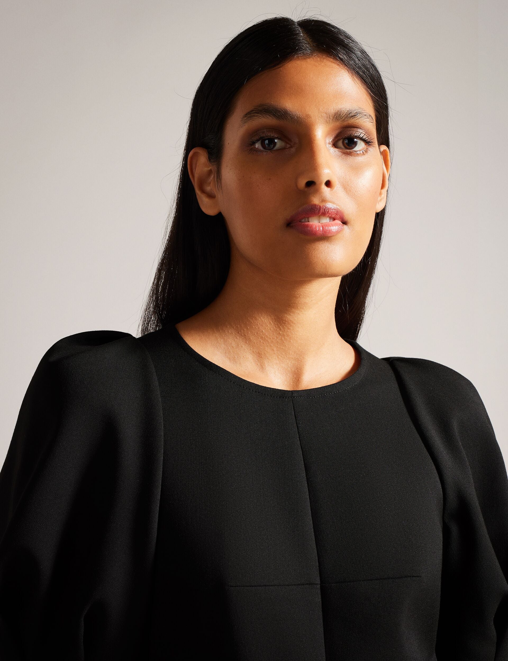 - Structured puffed short sleeves