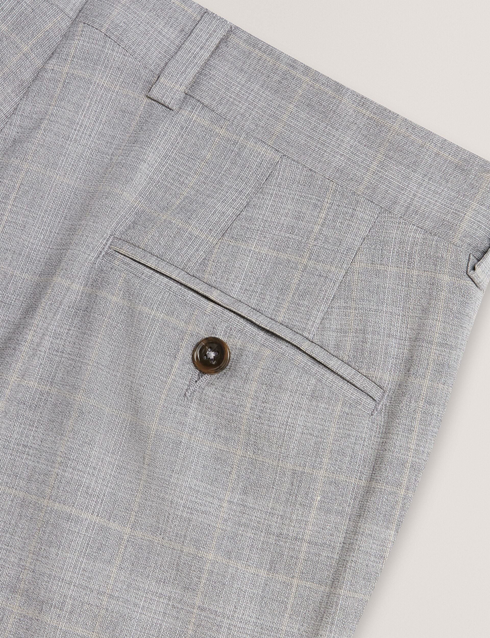 These grey suit pants are designed with a tonal check pattern that will up the style of your plain dress shirts and simple jackets. JAYSONS has a touch of stretch added to its wool blend fabric, making the slim fit comfortable to wear.