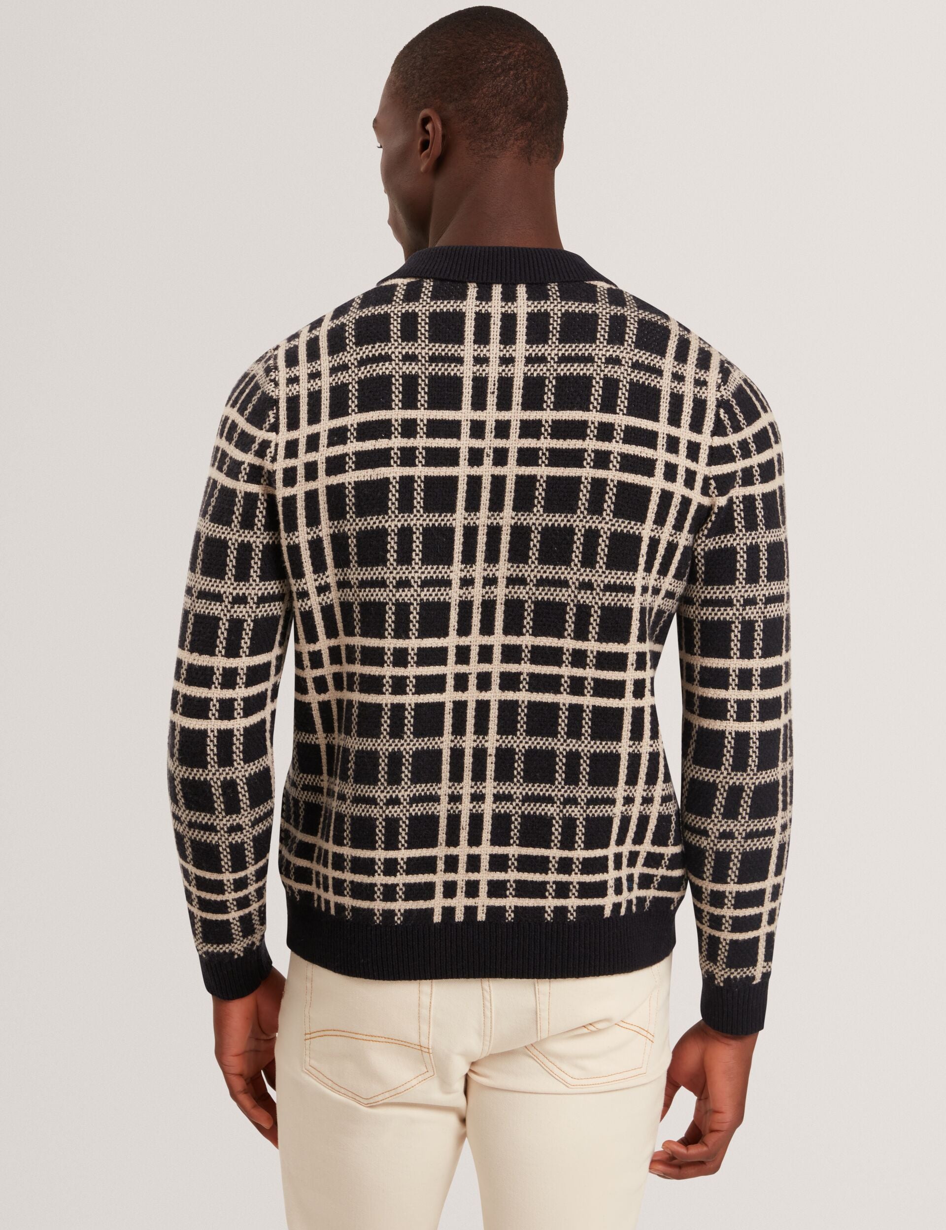 Check Print Button-Through Knit Polo