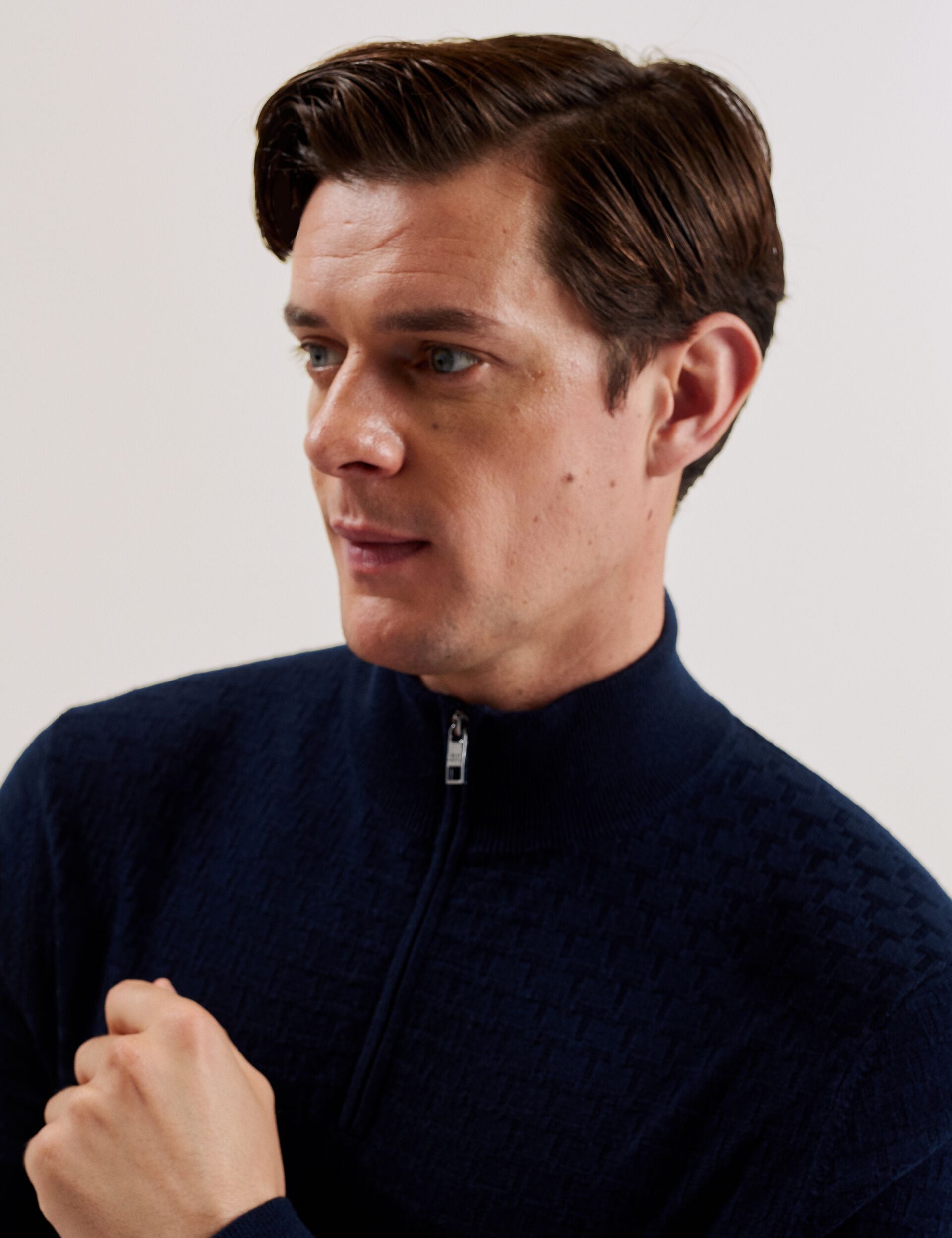 T Knit Half Zip Funnel Neck Jumper