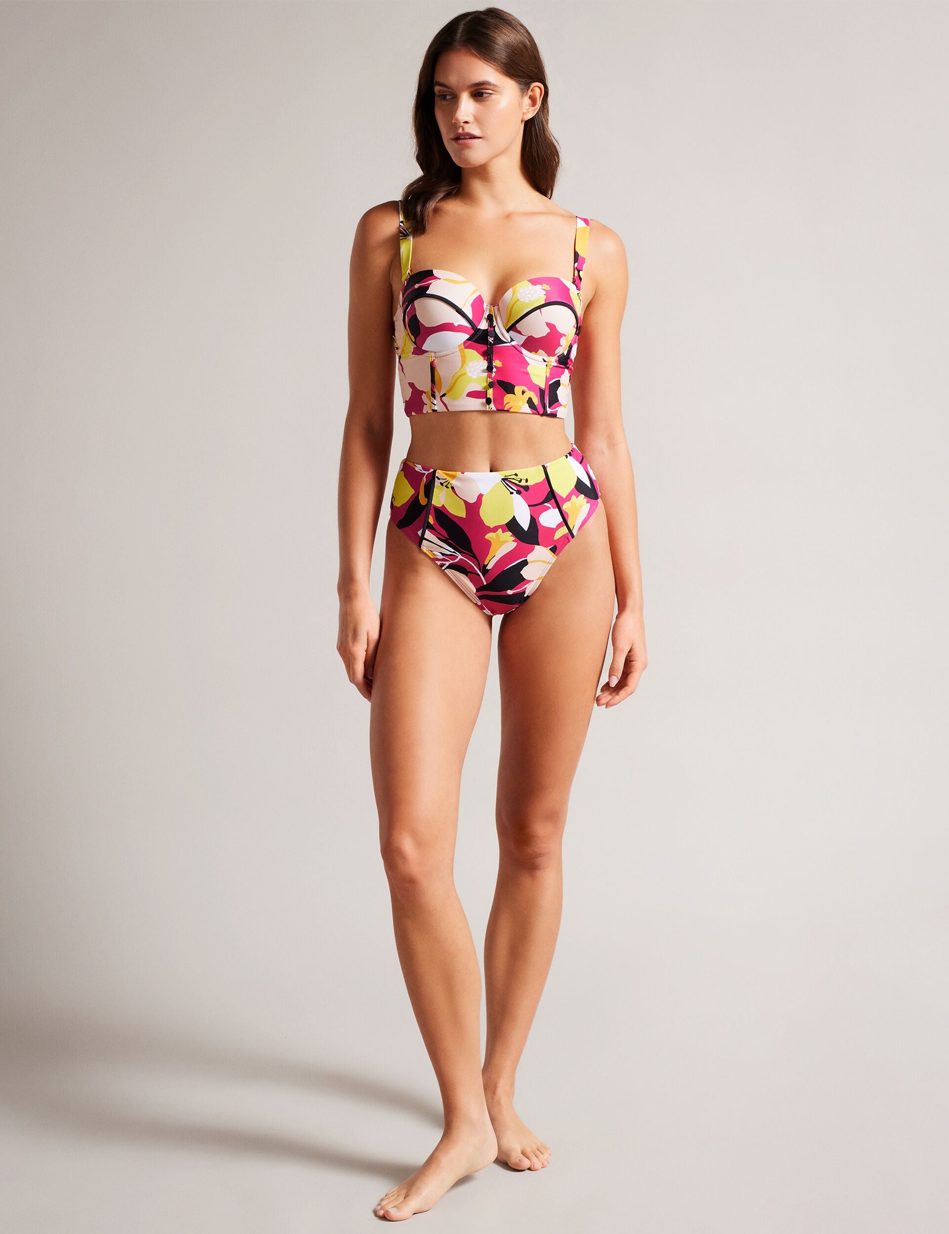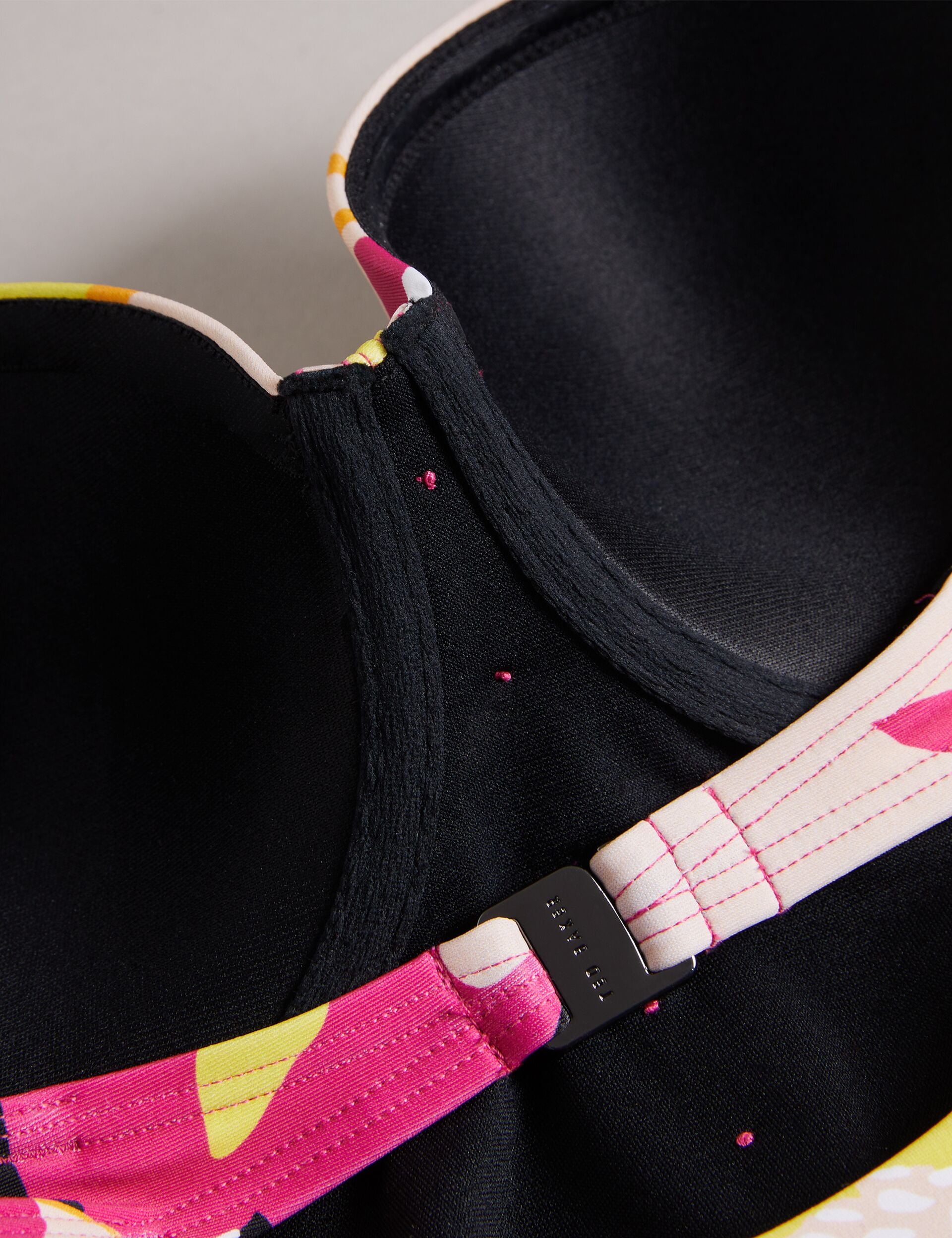 Featuring an abstract print and decorative button front, the MARGIEH bikini top boasts a flattering silhouette that's sure to turn heads. The back cut-out and adjustable straps offer comfort and versatility for all your coastal adventures.